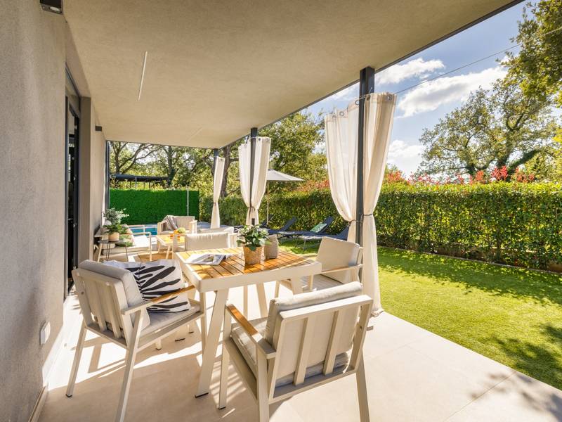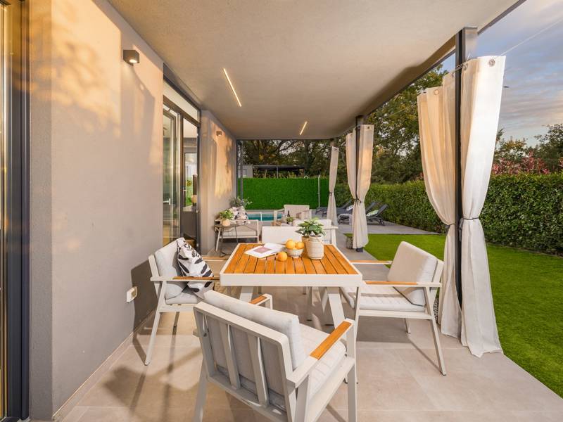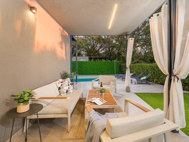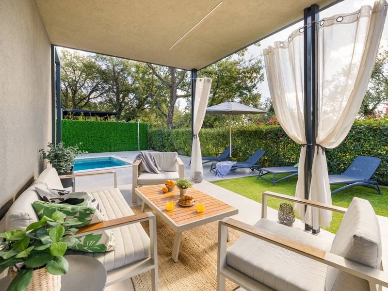Welcome to Villa Barcolana, a charming retreat perfect for up to 5 guests, located in the peaceful village of Baderna—just a 20-minute drive from the lively coastal town of Poreč. This cozy, single-story villa offers everything you need for a relaxing and comfortable holiday in Istria.Inside, you’ll find a welcoming living room with a sofa bed suitable for one person, a fully equipped kitchen, two comfortable bedrooms with double beds, and a shared bathroom. The interior is thoughtfully designed to create a warm and functional space for families or small groups.Step outside and discover your private oasis: a beautifully maintained garden with a swimming pool, sun loungers for soaking up the sun, and a covered terrace with a dining table and comfortable seating—perfect for enjoying meals outdoors, sipping morning coffee, or relaxing in the shade.The villa’s location combines peace and convenience. A grocery store and a local restaurant are just a short walk away, while the vibrant town of Poreč offers everything from stunning beaches and historical sites to shops, markets, bars, and entertainment for all ages.As a pet-friendly property, one well-behaved pet is welcome free of charge, making this an ideal choice for those traveling with furry companions.Whether you’re lounging by the pool or enjoying al fresco dinners under the stars, Villa Barcolana provides the perfect setting for an unforgettable Istrian getaway. Book your stay today and start your holiday with ease.Please note this property does not accept stag/hen parties. Youth groups are accepted only by prior arrangement. A youth group is one comprised of individuals aged 26 or under. If you are a youth group please contact us before placing your reservation, as the reservation might be rejected post-booking, which may include on arrival at the property or during your stay and you might not be refunded.