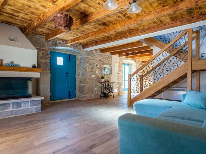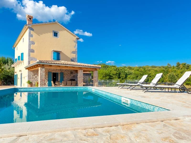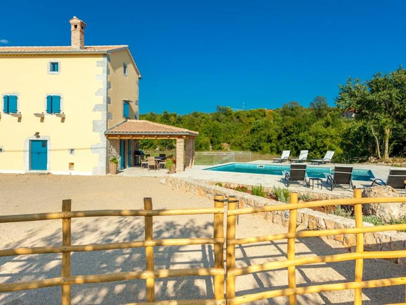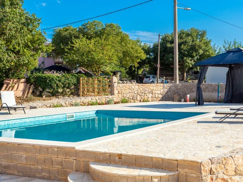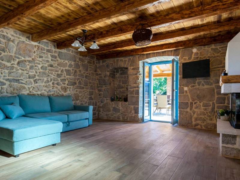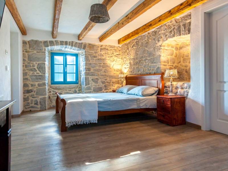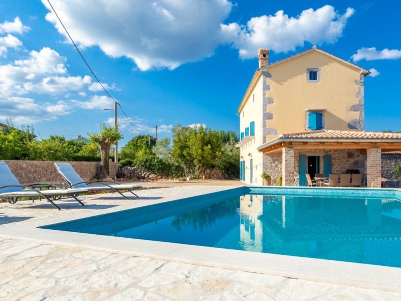 Spend your next vacation at Villa Lusa in Bajčići, a charming village on the island of Krk, and experience true Mediterranean magic. This authentic renovated villa offers all the luxury of a modern home while retaining a true Mediterranean touch. It can host up to 6 people, which makes it the perfect choice for a large family and group of friends. This stone villa consists of two heated floors. There are three bedrooms with double beds and adjacent modern bathrooms with walk-in showers. The lovely kitchen provides everything you need to prepare delicious meals that you can also serve on the spacious dining table. The open ground floor is certainly dominated by a spacious living room with a fireplace and an unobstructed passage to the outdoor area of the house. In the spacious courtyard of the villa, there is a magical blue swimming pool with accompanying deckchairs, ready to welcome you on those long, warm afternoons. There is also a grill area for evenings spent preparing delicious meals for you and your loved ones, which you can also serve on the spacious dining table.