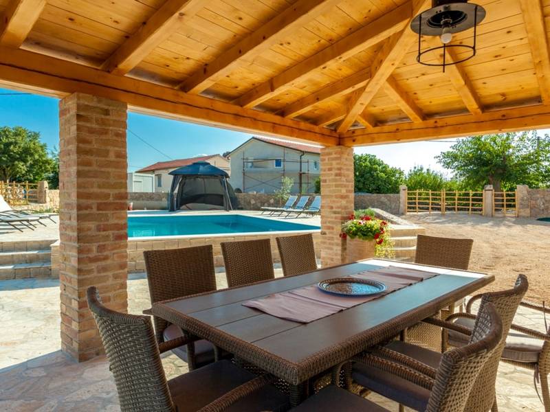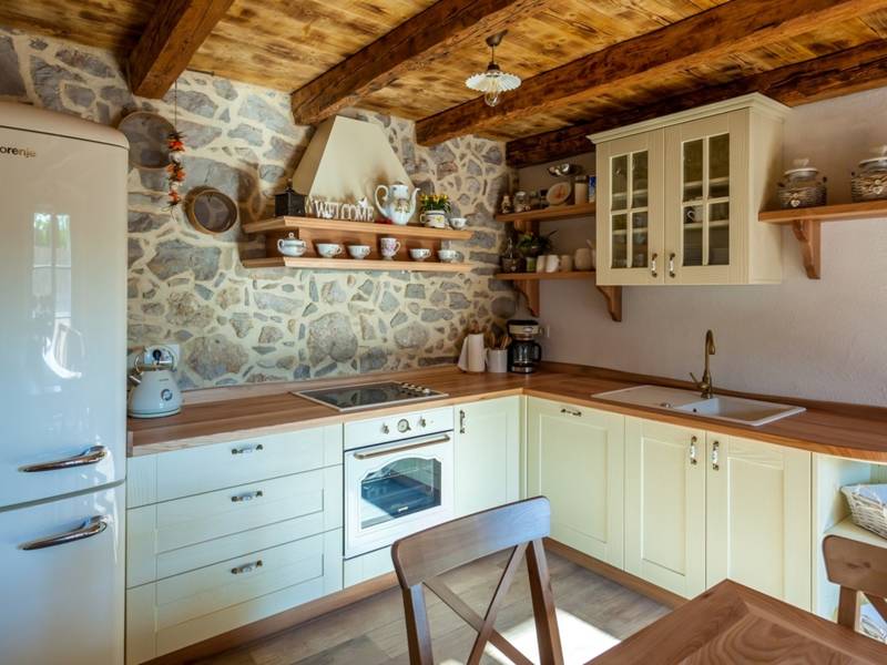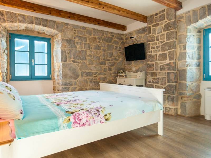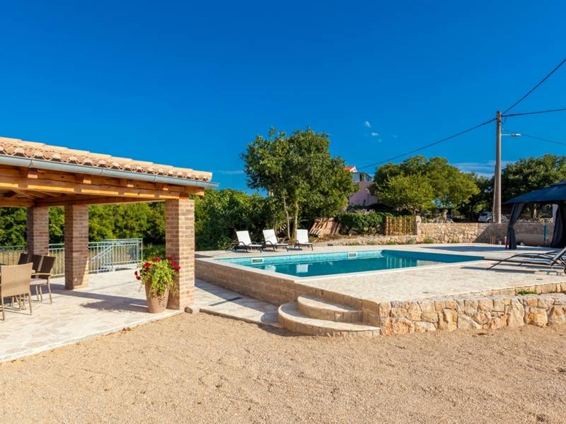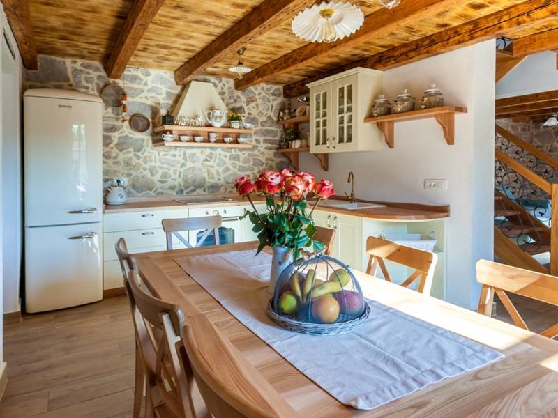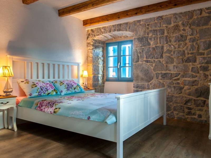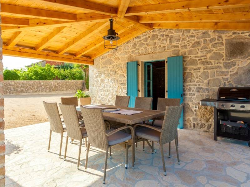 Spend your next vacation at Villa Lusa in Bajčići, a charming village on the island of Krk, and experience true Mediterranean magic. This authentic renovated villa offers all the luxury of a modern home while retaining a true Mediterranean touch. It can host up to 6 people, which makes it the perfect choice for a large family and group of friends. This stone villa consists of two heated floors. There are three bedrooms with double beds and adjacent modern bathrooms with walk-in showers. The lovely kitchen provides everything you need to prepare delicious meals that you can also serve on the spacious dining table. The open ground floor is certainly dominated by a spacious living room with a fireplace and an unobstructed passage to the outdoor area of the house. In the spacious courtyard of the villa, there is a magical blue swimming pool with accompanying deckchairs, ready to welcome you on those long, warm afternoons. There is also a grill area for evenings spent preparing delicious meals for you and your loved ones, which you can also serve on the spacious dining table.