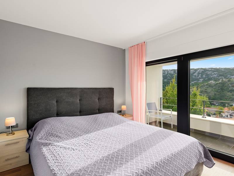 Experience the charm of a modern home by staying at Villa Adria Blue, located in Bakarac, with an open view of the Bay of Bakar and the Adriatic Sea. The villa can host up to 12 people, which makes it ideal for a larger family or group of friends looking for an escape from everyday life. The villa offers 6 spacious bedrooms with double beds, five of which have a private terrace, while the sixth is on the ground floor with direct access to the courtyard. Each room has a private bathroom with a walk-in shower. On the spacious ground floor, you will find a fully equipped modern kitchen with an open view of the swimming pool, and a charming living room for pleasant moments spent in the company of loved ones. Large glass doors allow an unhindered passage to the spacious courtyard. In the courtyard of the villa, the first thing you will notice is certainly the beautiful view of the Bay of Bakar. A large heated swimming pool awaits your first morning swim, and deck chairs are ready for all-day enjoyment in the warm Mediterranean sun. An outdoor kitchen with a gas grill is at your disposal for preparing delicious meals that you can serve on the outdoor dining table. For guaranteed entertainment, there is also table tennis, badminton, volleyball, mini football, various board games, and a children’s playground.