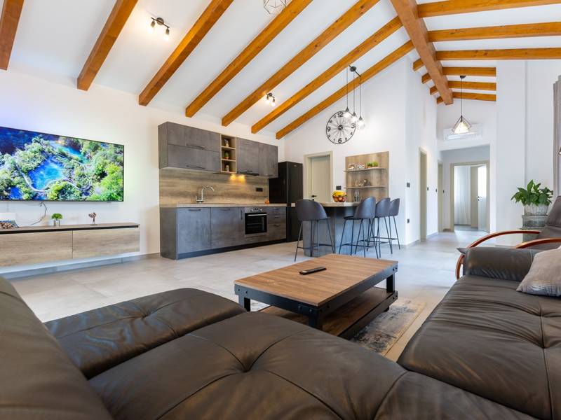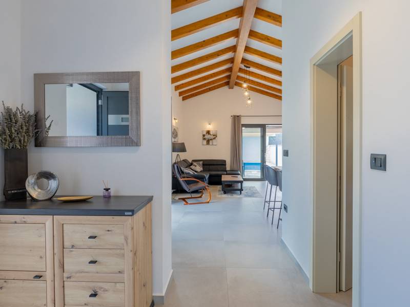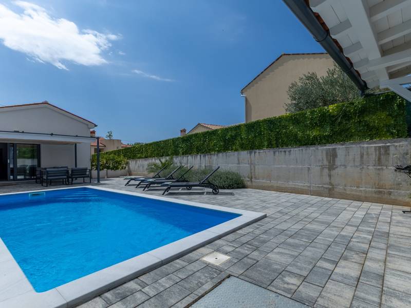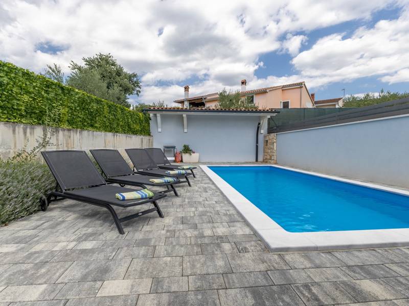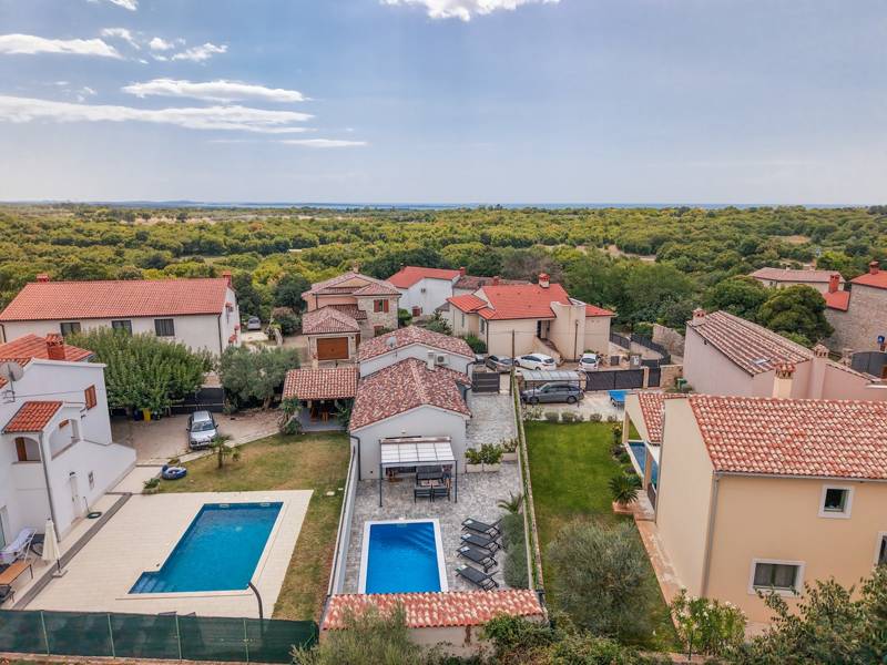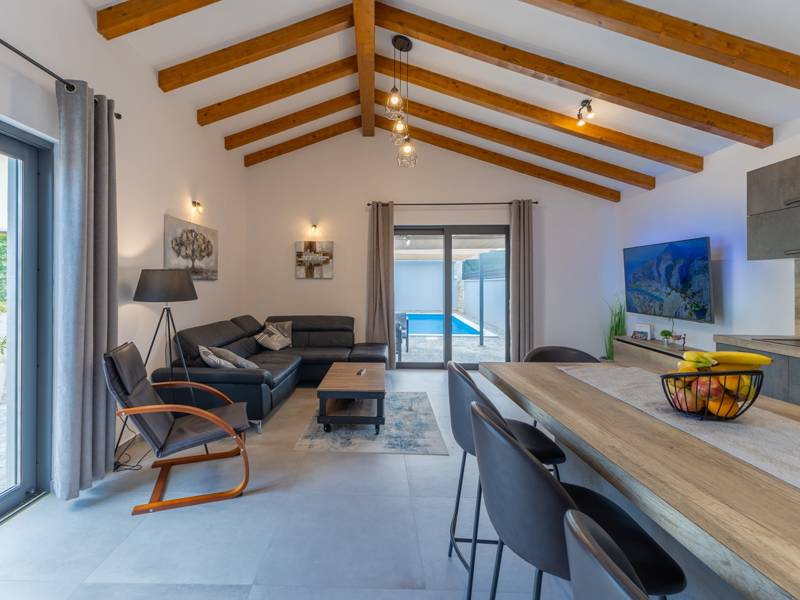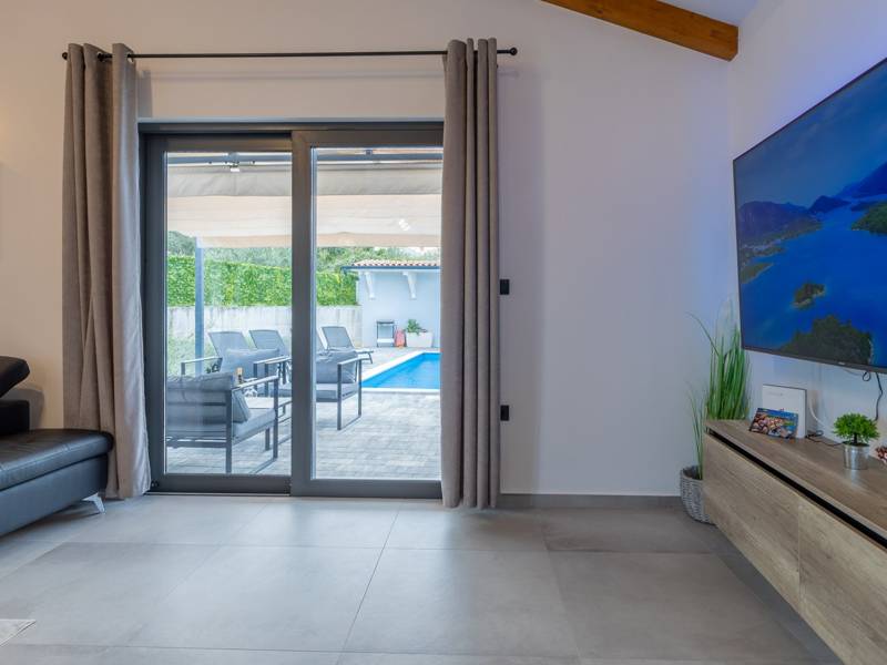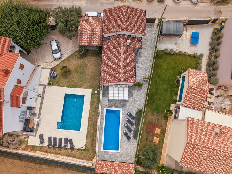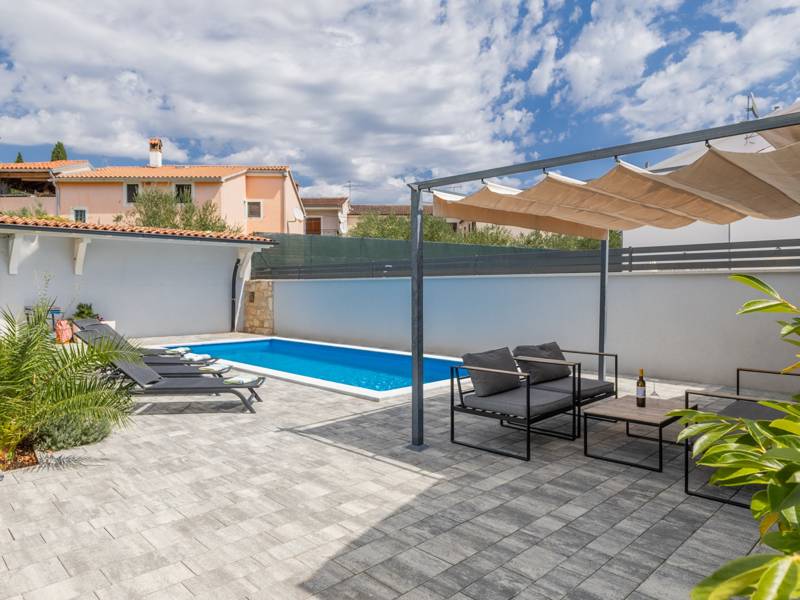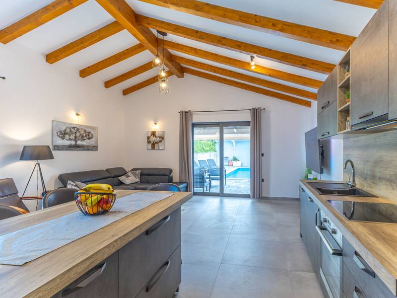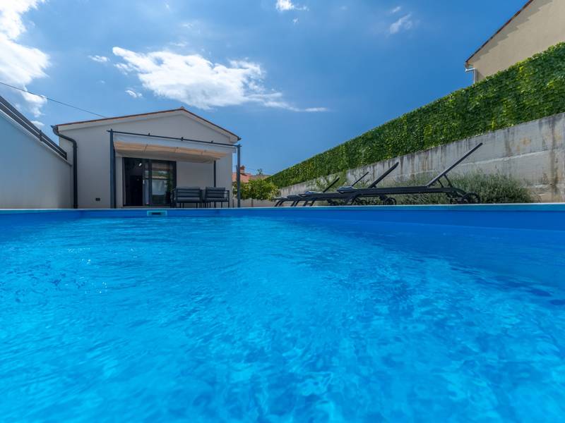 In the picturesque town of Bale, this small yet modern holiday home with a private pool offers the perfect retreat for up to 4 guests. Designed with comfort in mind, it features two cozy bedrooms, one elegant bathroom, and an additional toilet. The bright living room with a fully equipped kitchen creates a welcoming atmosphere, while the private terrace and pool ( 26 m2) invite you to relax in complete privacy. Ideal for families or couples seeking peace, comfort, and proximity to the charming town of Bale and the Adriatic Sea.