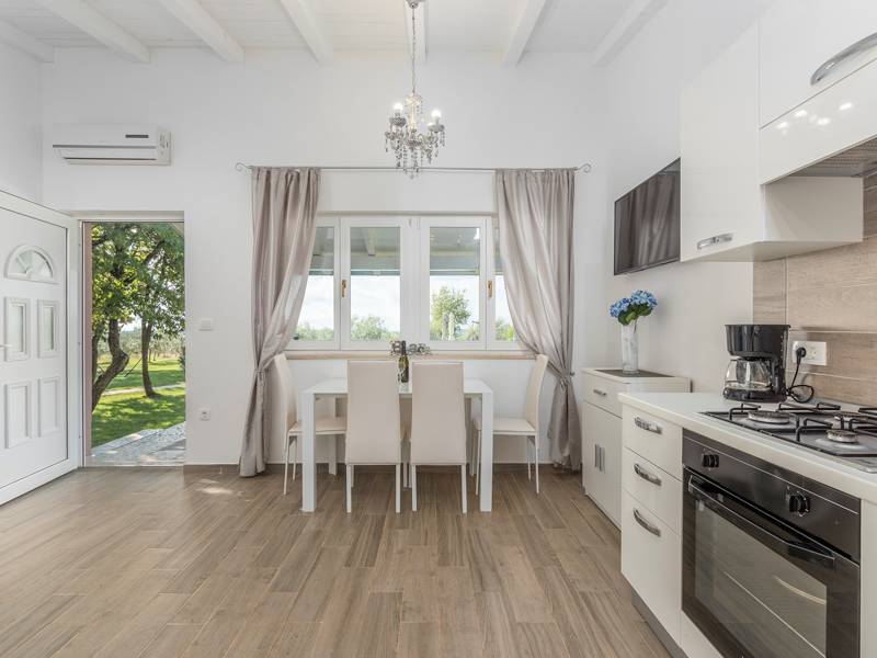 Holiday House Mamesa is located in a small Istrian Village near the tourist destination Rovinj and Bale .Holiday House Mamesa in Cubani consists of two houses surrounded with olive trees and a stunning distant sea view, offering the guests complete privacy and relaxation. The houses are next to each other and each of them has an equipped kitchen with dining area, a living room with sofa bed for two additional guests, a bedroom with double bed, a bathroom with shower and a covered terrace with seating area. Furthermore, the guests have a shared terrace with BBQ, a pool with sunbeds and a children playground on their disposal. The outdoor area spreads on 5000m2 and is completely fenced. Pets are welcome here and they are free of charge. If you are looking for a perfect location to spend your vacation with family or friends - Holiday House Mamesa is the perfect choise for you.
