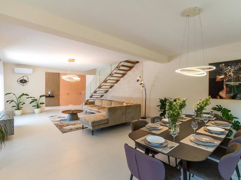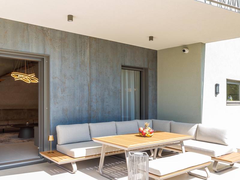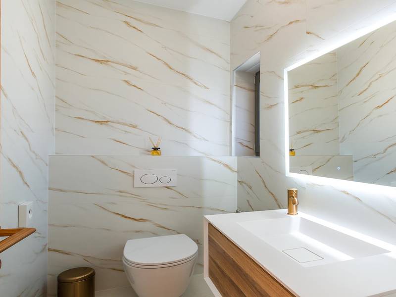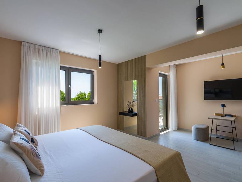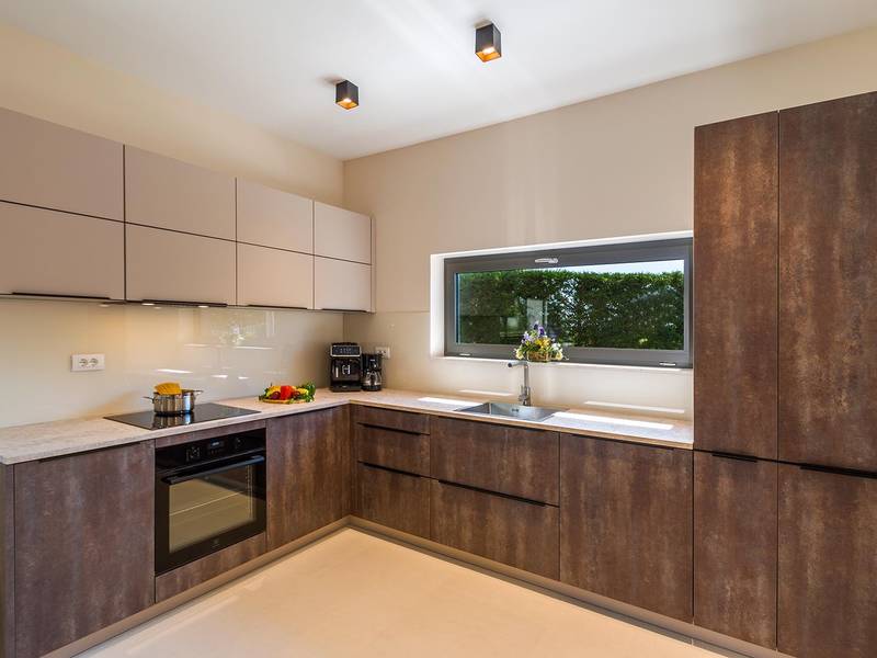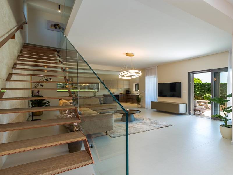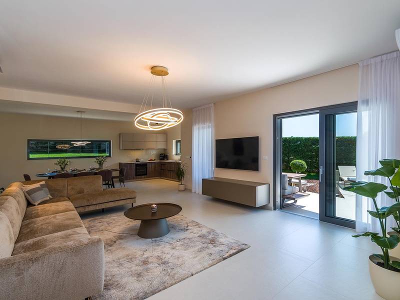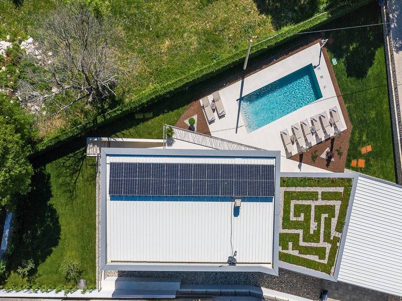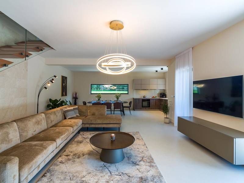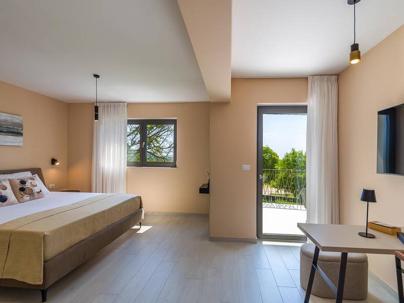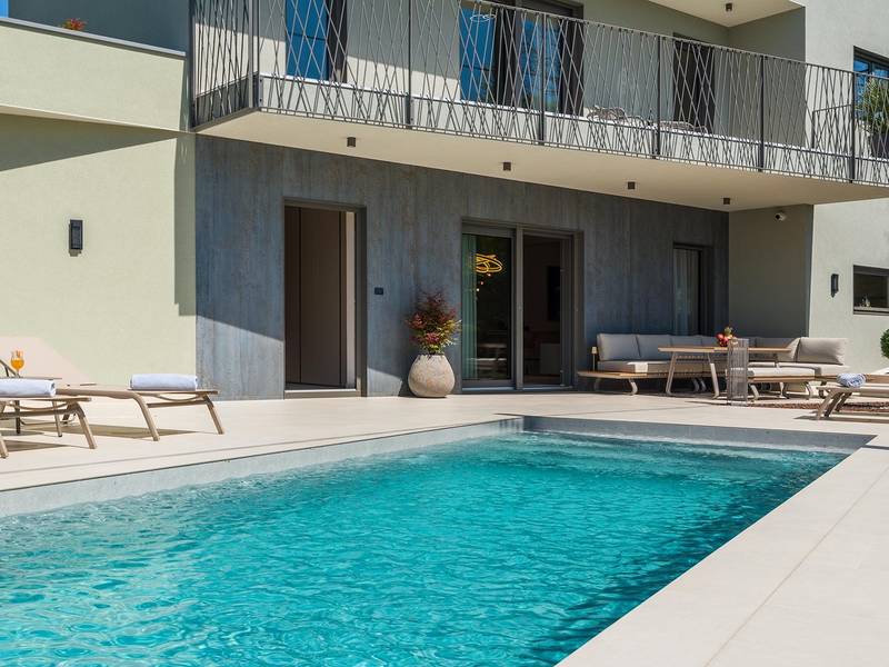 Villa Golden Hill is an exclusive 5-star villa located in the peaceful Istrian village of Golaš, near Bale. Surrounded by nature and greenery, this contemporary villa offers a high level of privacy and discreet luxury, ideal for a relaxing stay in Istria.The villa spans 225 m2 and has been carefully designed to combine functionality and aesthetics. The ground floor features a spacious living area filled with natural light, connected to a modern, fully equipped kitchen and dining area. The open-plan layout creates a welcoming atmosphere, while direct access to the covered terrace ensures a seamless transition between indoor and outdoor living.One bedroom is located on the ground floor with direct access to the pool, while the other two elegantly designed bedrooms are on the upper floor. All bedrooms feature en-suite bathrooms, air conditioning, and TV. Large beds (200x210 cm) provide exceptional comfort, while additional beds allow flexible accommodation for families.The outdoor area offers a complete open-air living experience. The private swimming pool (24 m2) is surrounded by sun loungers and a landscaped garden, while the covered terrace with outdoor dining area invites relaxed meals. A gas barbecue enhances the Mediterranean lifestyle experience.The property is fully fenced and arranged as a green area, ensuring privacy and peace. Guests have access to private shaded parking.Villa Golden Hill is equipped with underfloor heating and air conditioning, ensuring comfort throughout the year. WiFi, a safe, washing machine, dryer, and all essential household amenities are available for a carefree stay.Located in a quiet setting, the villa is still well connected – a restaurant is just 200 meters away, while shops in Bale are only a short drive. The sea and beaches are approximately 12 km away, and Pula Airport is 25 km away.Villa Golden Hill offers a perfect balance of modern comfort, privacy, and natural surroundings – an ideal place for a truly relaxing stay in Istria.The house is not suitable for youth groups.Pets are not allowed.Smoking is not permitted indoors.