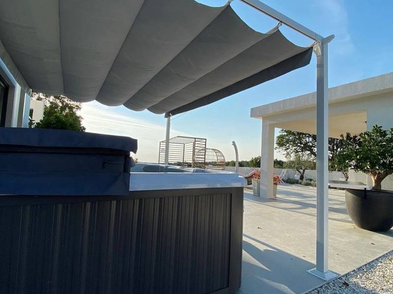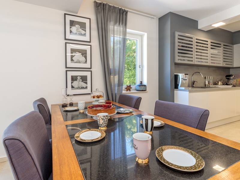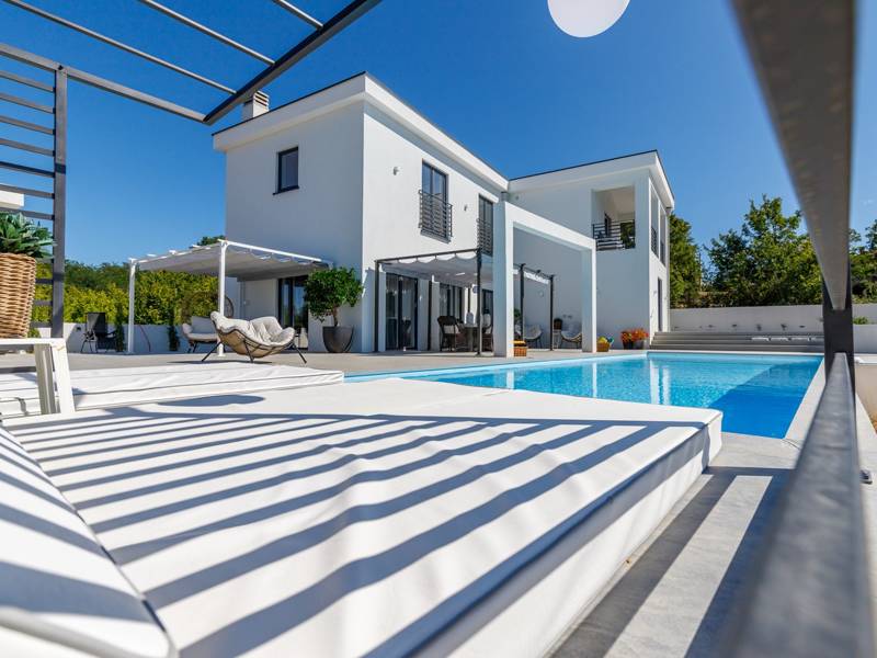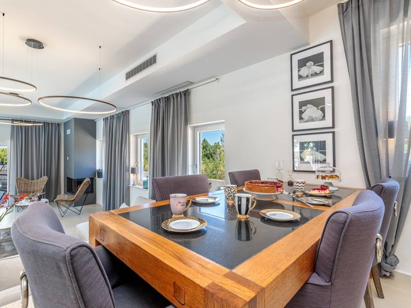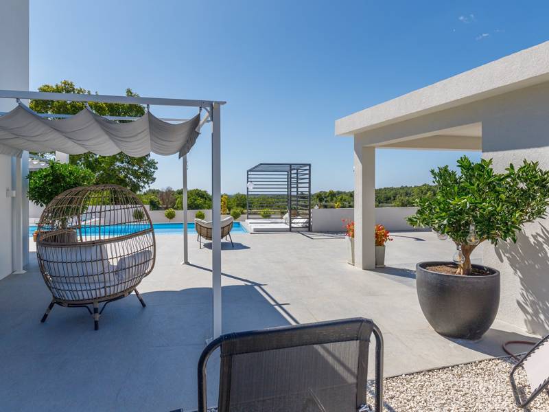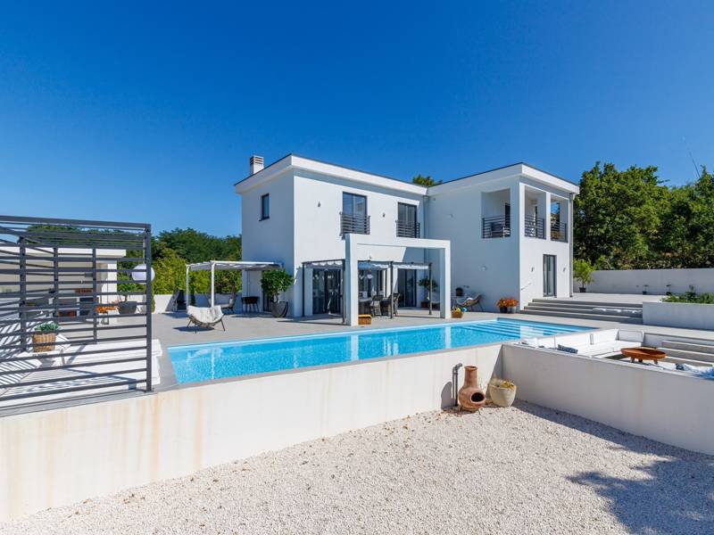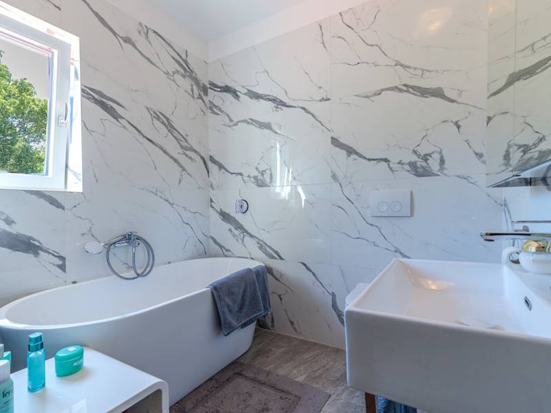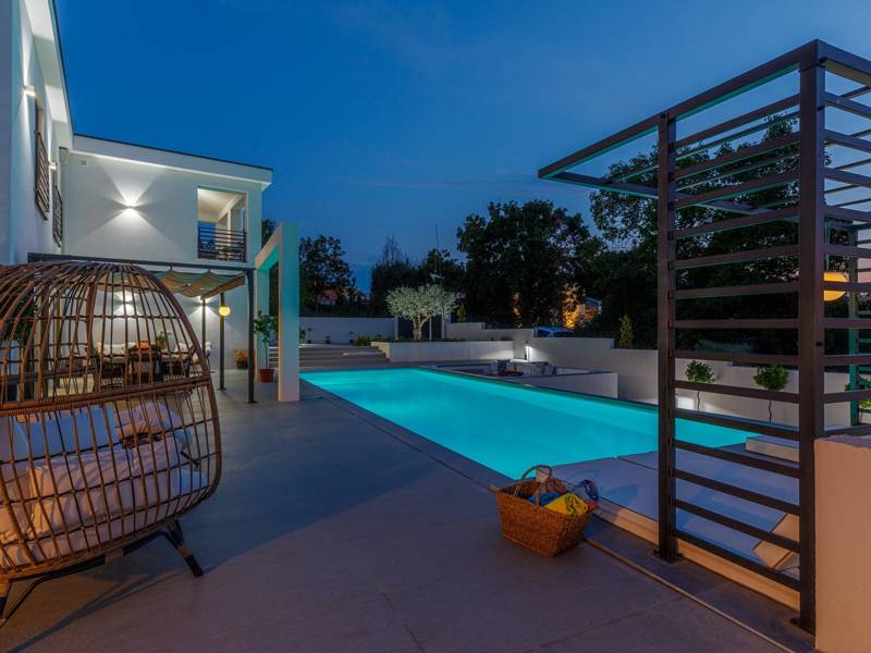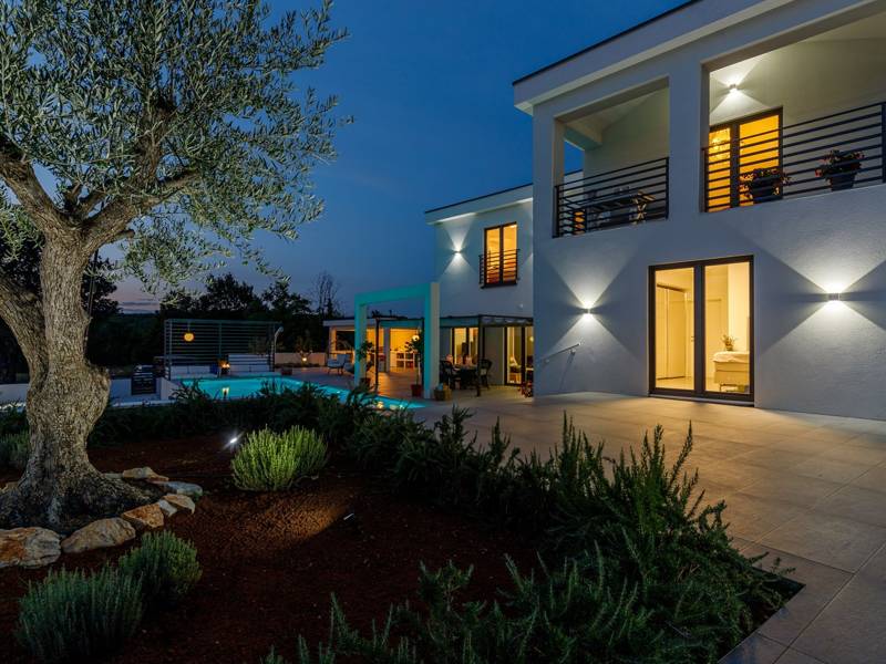Luxury Villa Valhalla is the ideal accommodation for up to 8 guests. It is located in an idyllic surrounding of central Istria, in a small village called Barat, near Kanfanar.The villa consists of 4 spacious air-conditioned bedrooms with kingsize beds, each with its own private bathroom. One of the bedrooms has an exit to the balcony. An additional separate WC can be found near the living room. On the ground floor, you can find a tastefully decorated living room that combines modern and local elements. The living room is connected to the fully equipped kitchen with all necessary cooking appliances and a dining area. Outdoors, you can enjoy swimming in the pool (55m2) or relax on sunbeds located right next to the pool. In the evenings, you can gather your family on the terrace or preparing meals in the fully equipped summer kitchen with BBQ grill, which can be found on the property. Also, there's a separate seating lounge next to the pool. There is also a jacuzzi on offer, where you can enjoy a relaxing evening. We invite you to join us under the summer sun in Istria and enjoy this beautiful location.Youth groups are not allowed...