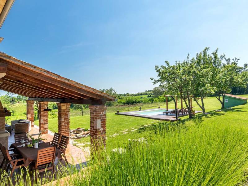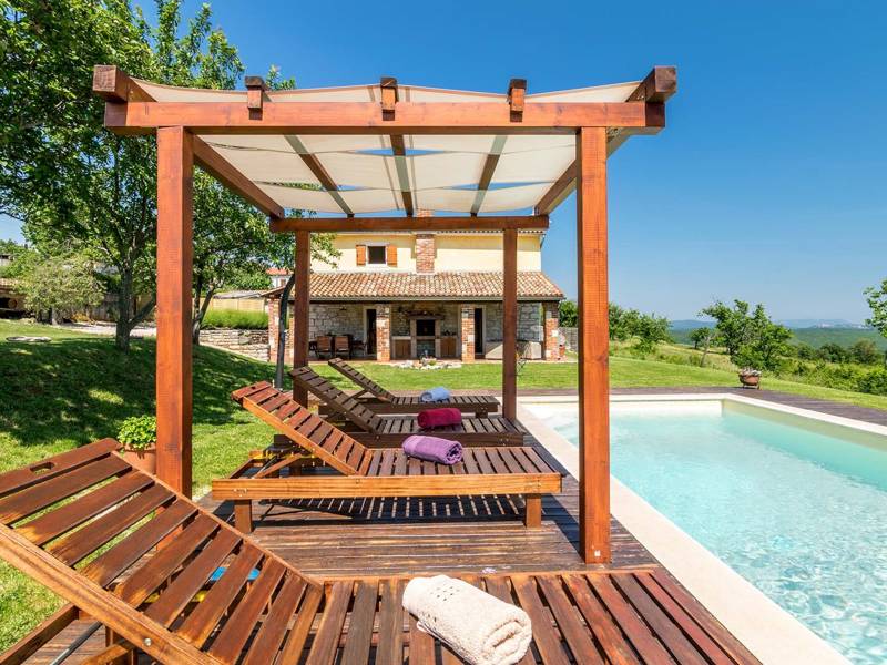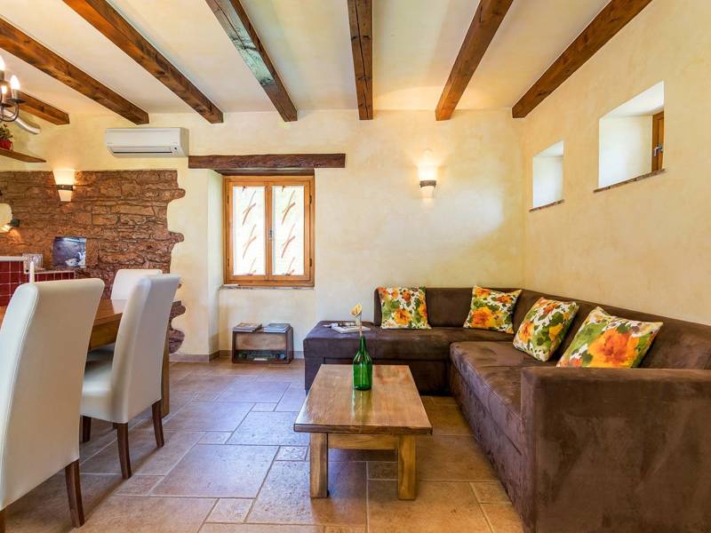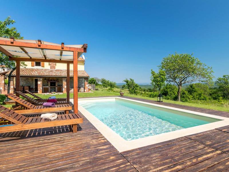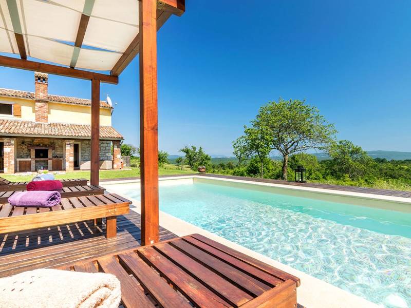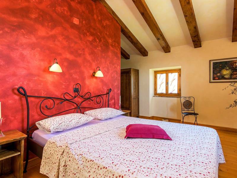 The Villa Mala Kopa offers a romantic hideaway in solitude of a large piece of private land in central Istria. It is situated in a small village and surrounded only by nature, so coming here will surely calm your senses and restore your inner peace. The villa is on an elevation, so we have a great view even from the swimming pool. The capacity of villa is for four persons, enough for one family with children or two couples to enjoy its idyllic ambience. During renovations, its rustic components were kept while adding the necessary modern- day accessories. Although the house is in the inner part of the Istrian peninsula, it’s not far from any of the destinations you’d probably like to explore: Rabac with the nearest beach, the nearby Barban, Labin and Pazin, or maybe one of the towns in western Istrian coast with interesting remains from antiquity, such as Pula, Rovinj or Poreč. You might want to try the local cuisine which is simple yet delicious, so combine it with Istrian quality wines and olive oil that’s been praised since the ancient times.