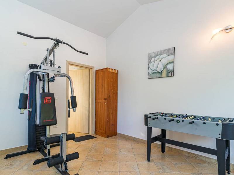 This modernly decorated one-bedroom apartment provides the perfect retreat for a relaxing holiday near the sea, located just 7 km from the picturesque town of Vrsar. It is fully equipped to meet all the needs of guests, offering comfort, functionality and a sense of home. The space has been carefully designed to ensure a pleasant stay, whether you come as a couple or alone. The apartment is given a special charm by a rich offer of facilities for relaxation and entertainment. Table football and exercise equipment are available, ideal for an active holiday, while the private pool provides refreshment and complete privacy during warm days. The outdoor barbecue is perfect for socializing with delicious meals outdoors, and the shower with massage jets further adds to the feeling of luxury and relaxation. This apartment is an ideal choice for anyone looking for peace, comfort and a quality holiday near the coast.