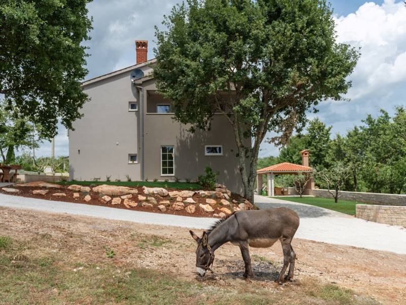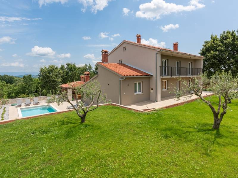 Spend a perfect holiday with your nearest and dearest by staying at Casa San Vital, located in the peacefulness of central Istria. This charming house is a great choice for a larger family or group of friends as it can accommodate up to 8 people. This fully air-conditioned two-story house offers three beautifully furnished bedrooms with double beds and one bedroom with two single beds. There is also one en-suite bathroom with a bathtub, two bathrooms with showers, and one separate toilet. A fully equipped modern kitchen with a kitchen island and a spacious dining table is located on the ground floor of the house. There is also a large living room with unobstructed access to the yard, for a pleasant evening spent in the company of loved ones. The spacious yard is dominated by a charming swimming pool with accompanying deckchairs and an outdoor shower, for all-day enjoyment in the warm Mediterranean sun. A covered grill area with a wooden dining table and an electric grill is at your disposal, for preparing delicious meals for you and your loved ones. There is also an additional wooden table outdoors in the shade of the trees, as well as paved parking for three cars.