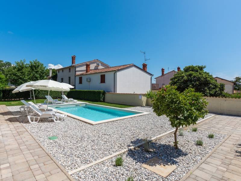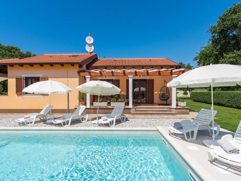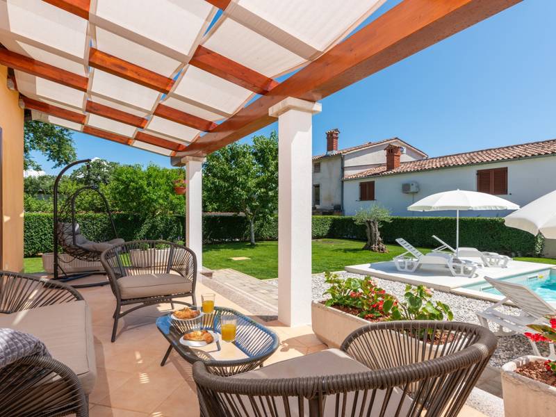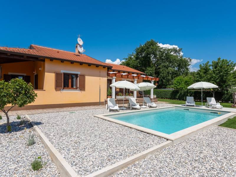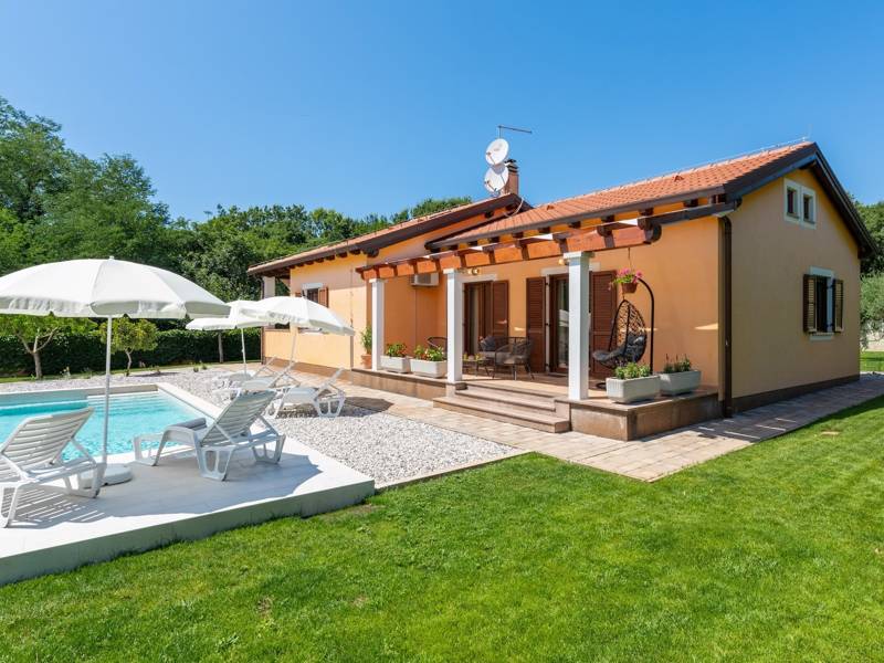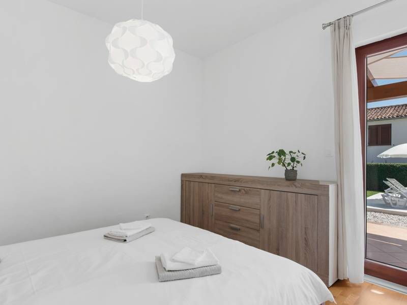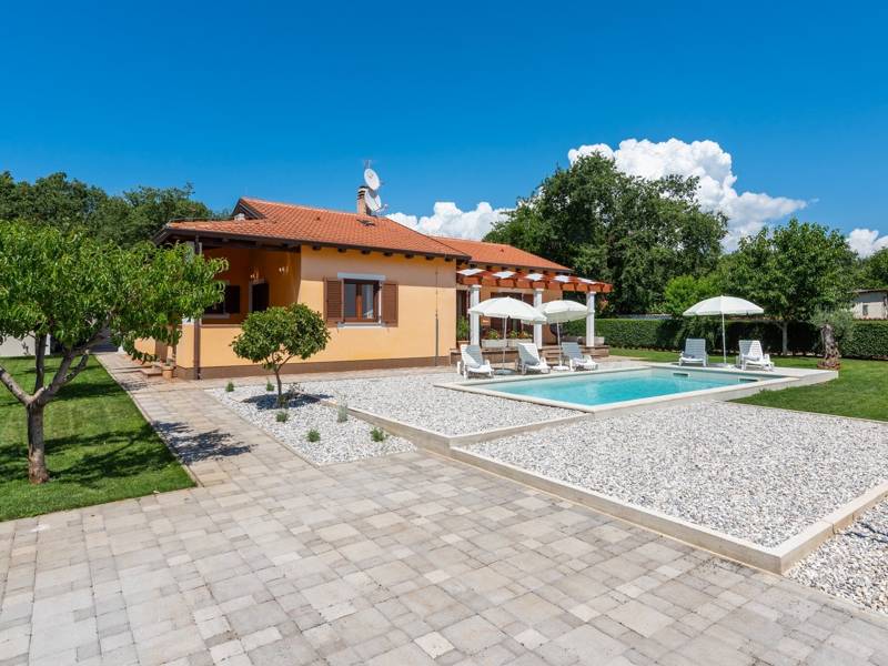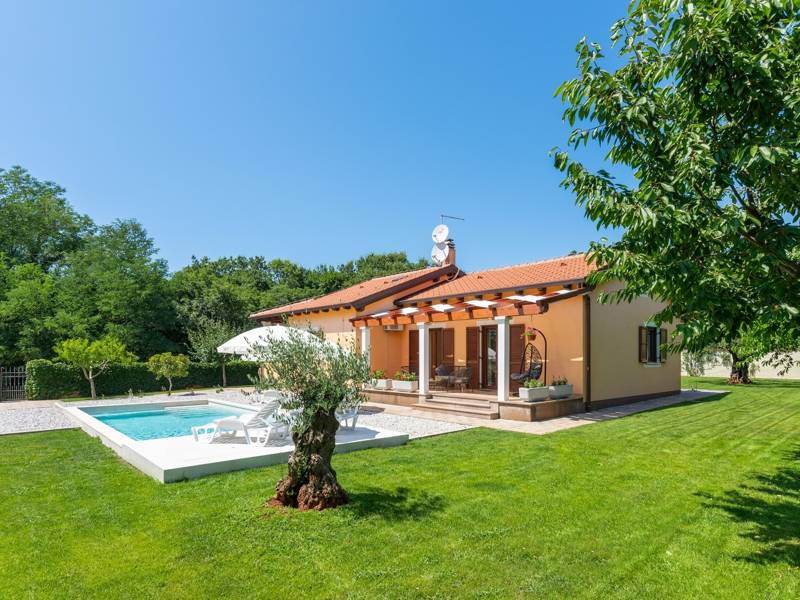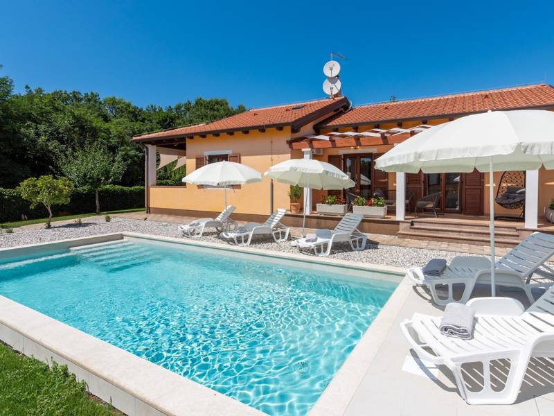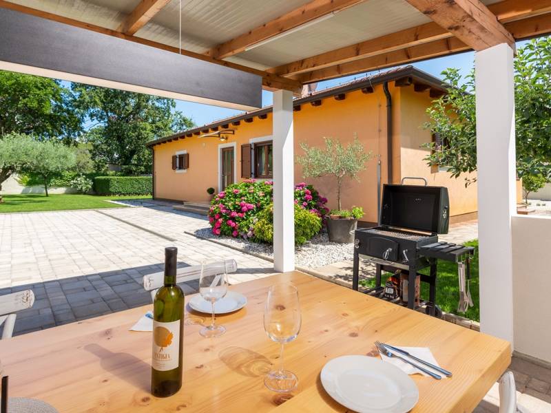 Treat yourself to a perfect vacation at the charming Villa Dora set in a quiet place not far from the magical Novigrad in the north of Istria. This villa offers complete privacy and comfort and is an excellent choice for a family or a small group of friends of up to 5 people. This one-story house is decorated to provide you with the comfort of your own home. There are three bedrooms at your disposal, two of which have a double bed while one has a single bed. There is also a bathroom with a shower bath and an additional toilet. The open concept of the villa consists of a fully equipped modern kitchen with a kitchen island and a dining table, as well as a spacious living room with a fireplace, for pleasant moments spent in the company of loved ones. The fully fenced yard with a well-kept lawn is the perfect place for pure fun and enjoyment. There is a swimming pool with sunbeds for all-day enjoyment in the warm Mediterranean sun. There is also a covered grill area, for preparing delicious meals that you can serve on the covered outdoor dining table.