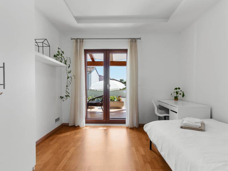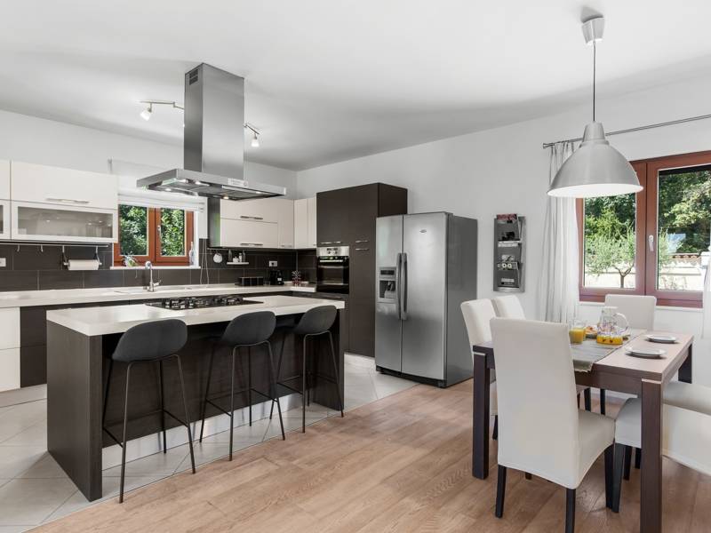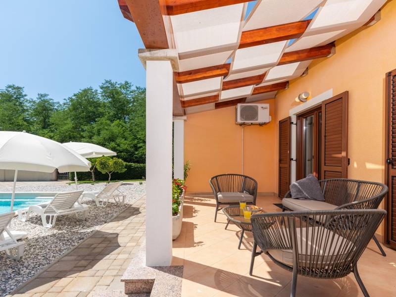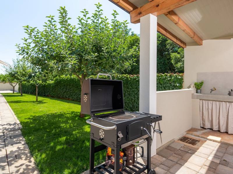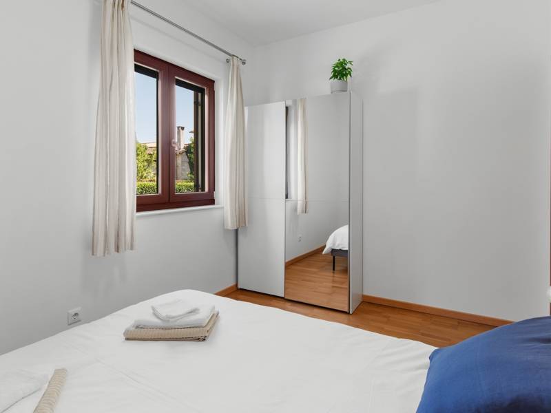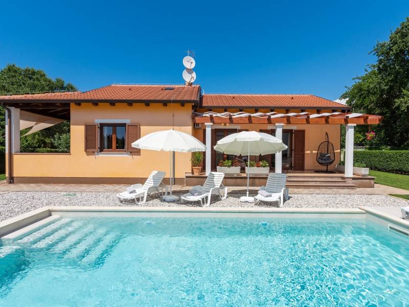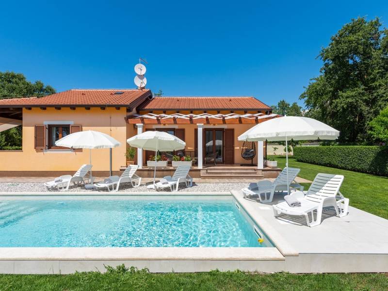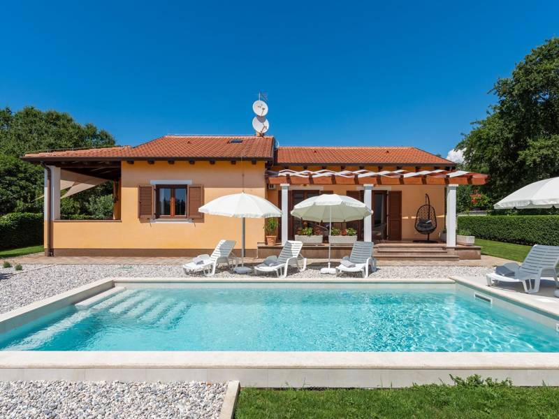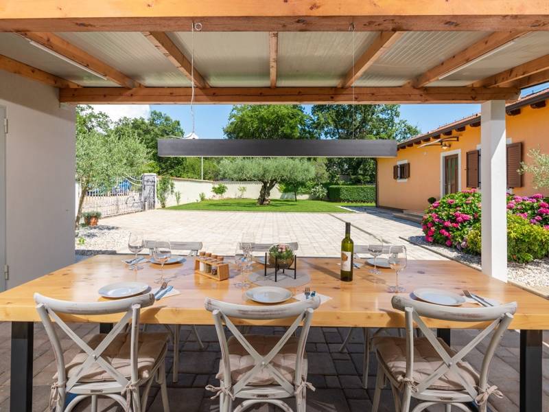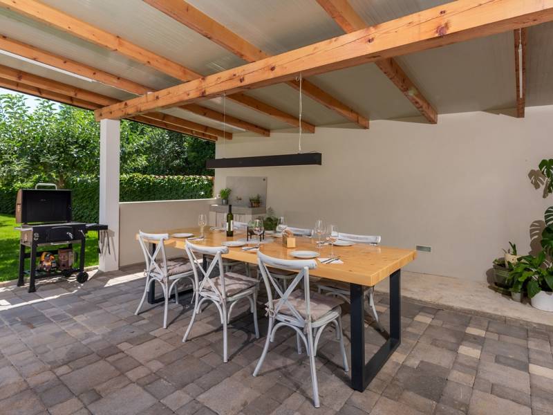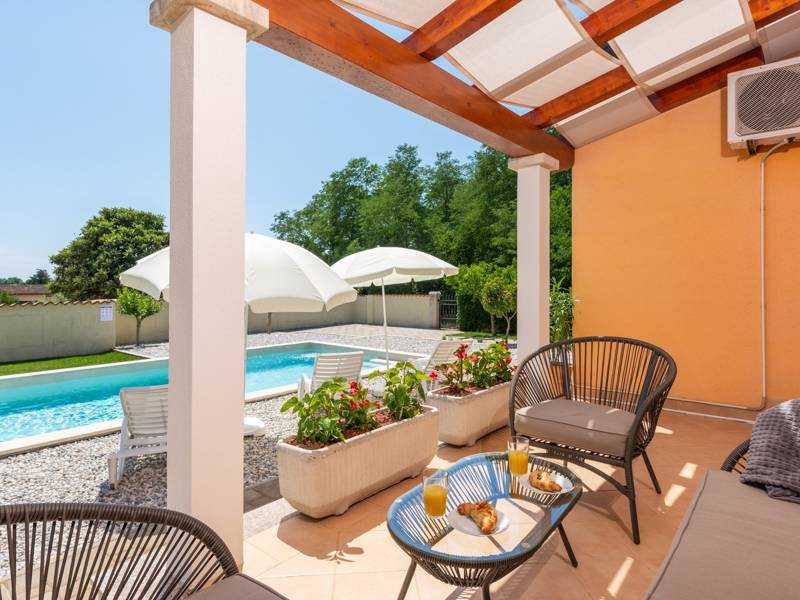 Treat yourself to a perfect vacation at the charming Villa Dora set in a quiet place not far from the magical Novigrad in the north of Istria. This villa offers complete privacy and comfort and is an excellent choice for a family or a small group of friends of up to 5 people. This one-story house is decorated to provide you with the comfort of your own home. There are three bedrooms at your disposal, two of which have a double bed while one has a single bed. There is also a bathroom with a shower bath and an additional toilet. The open concept of the villa consists of a fully equipped modern kitchen with a kitchen island and a dining table, as well as a spacious living room with a fireplace, for pleasant moments spent in the company of loved ones. The fully fenced yard with a well-kept lawn is the perfect place for pure fun and enjoyment. There is a swimming pool with sunbeds for all-day enjoyment in the warm Mediterranean sun. There is also a covered grill area, for preparing delicious meals that you can serve on the covered outdoor dining table.