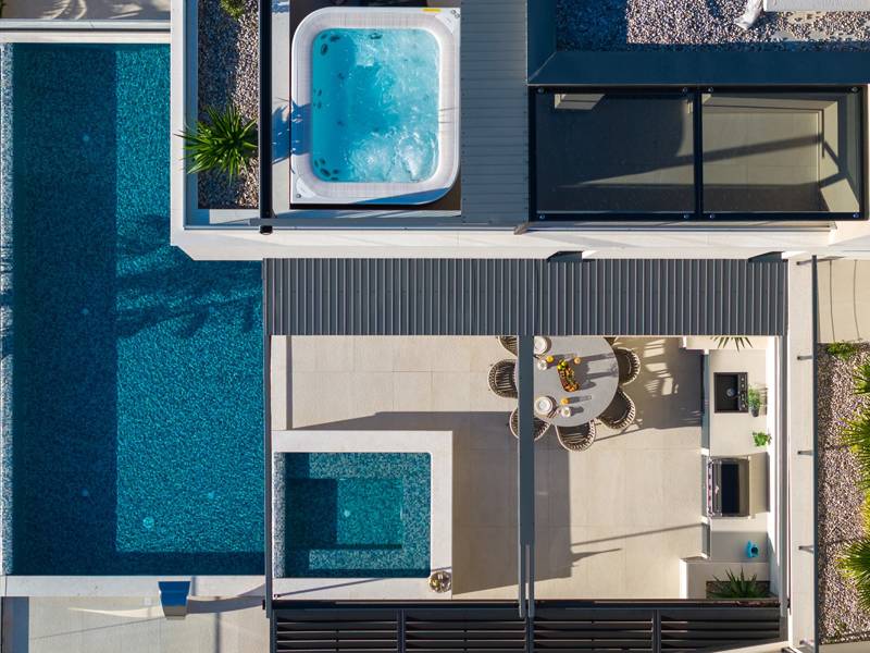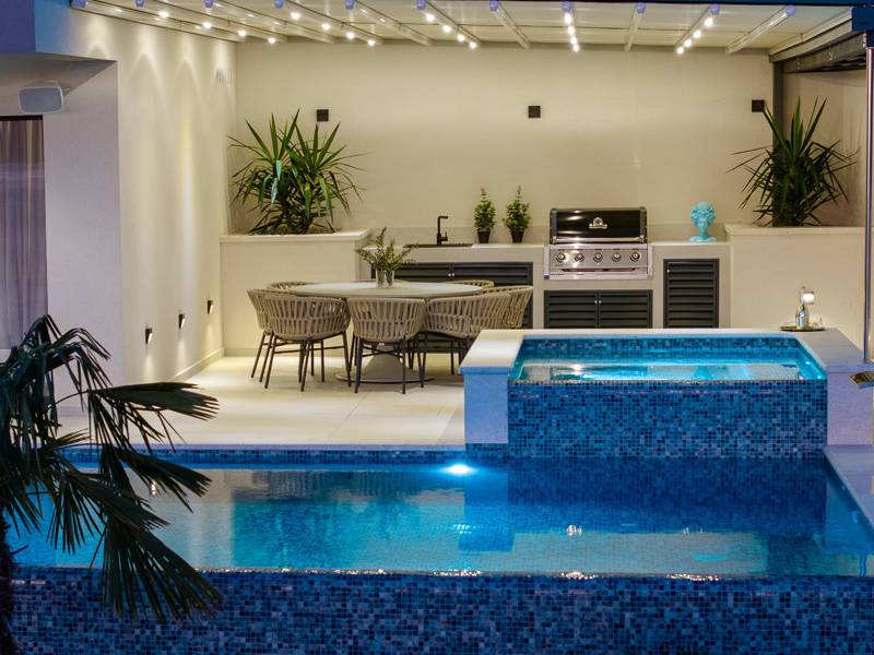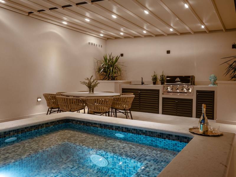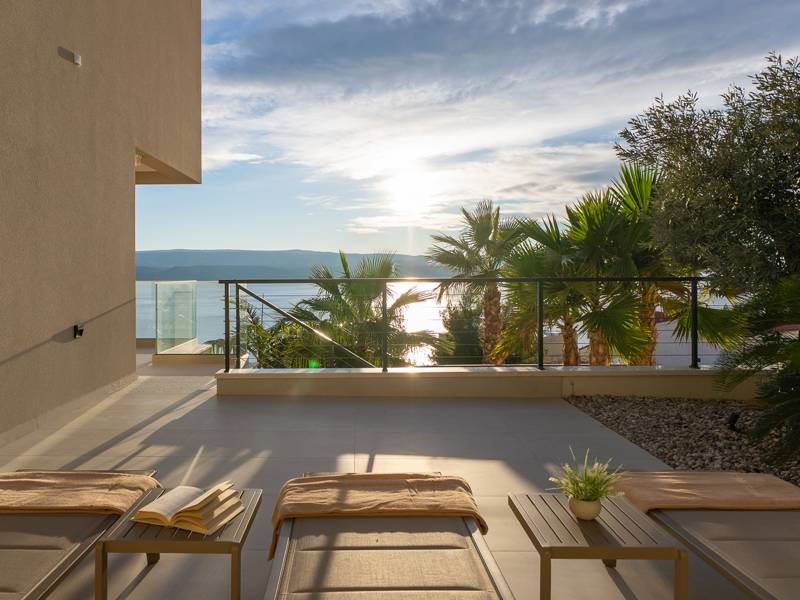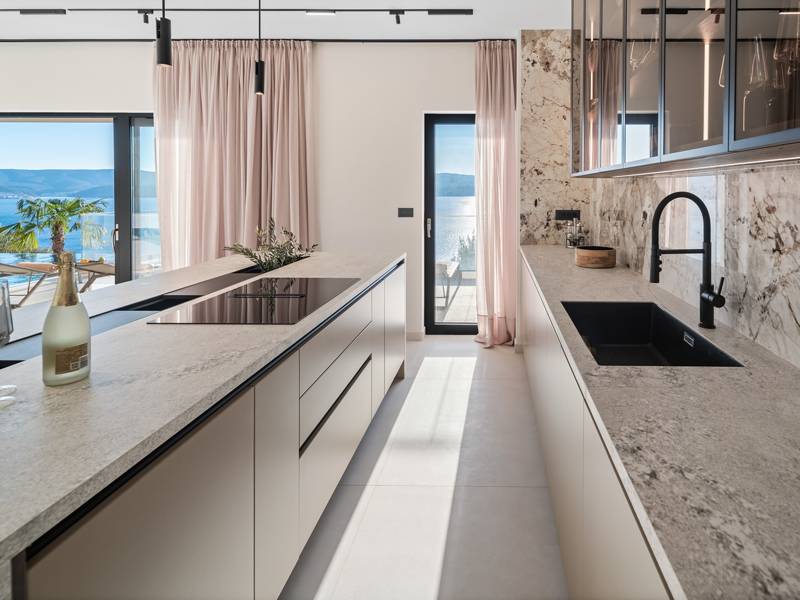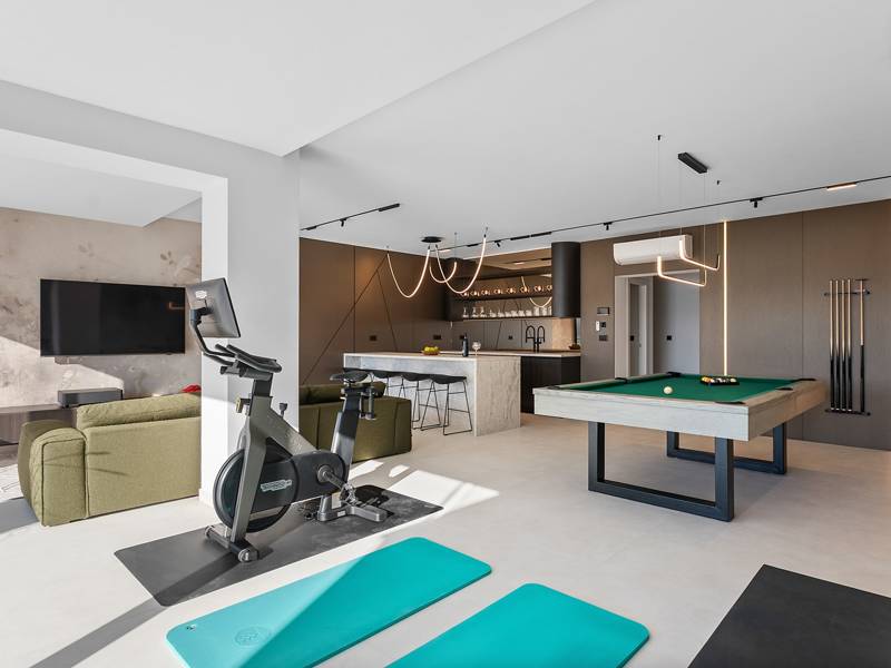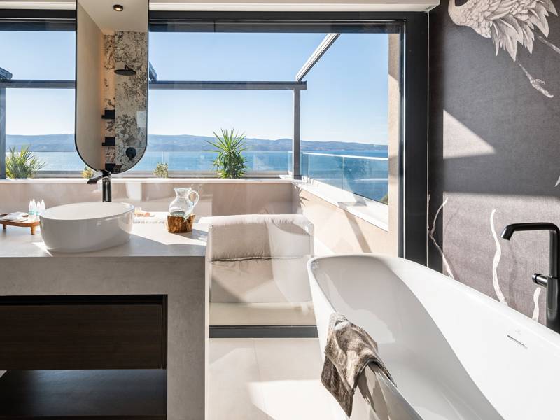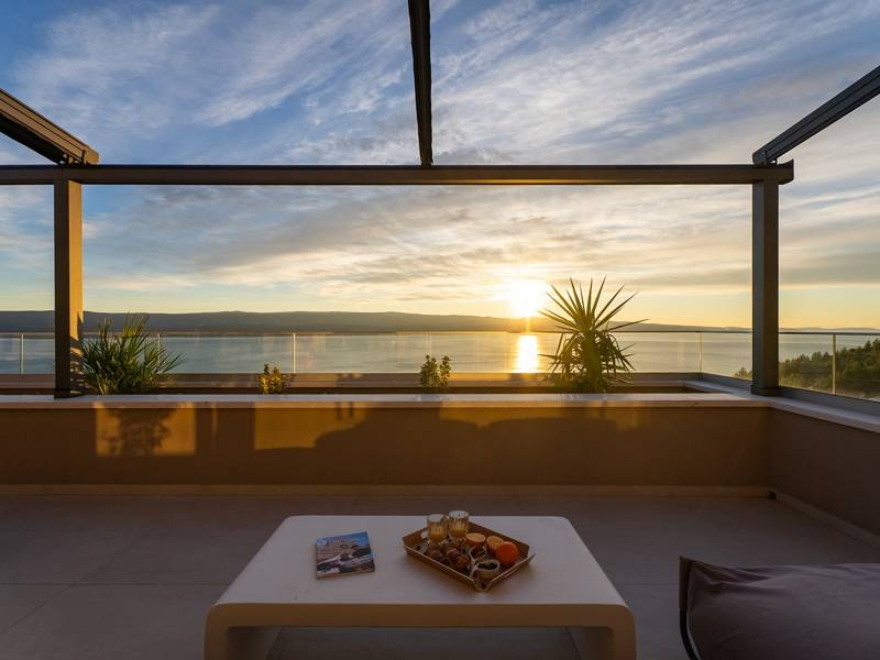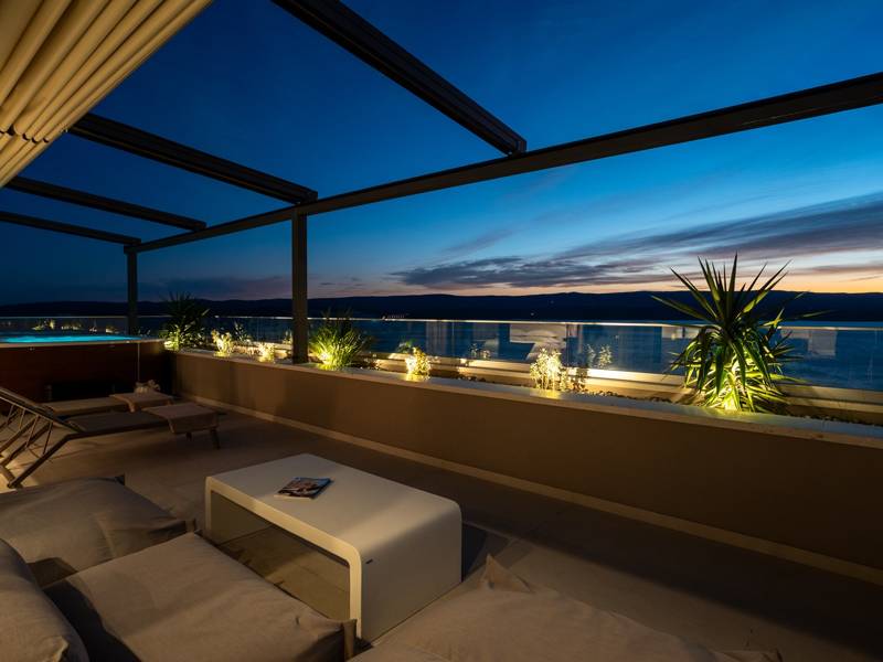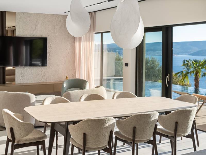 Experience unparalleled comfort, private amenities, and breathtaking Dalmatian coast vistas in this stunning luxury retreatDiscover the stunning and truly luxurious 5-bedroom Villa Million Dreams, which offers a heated infinity pool of 40 sqm with an attached hydromassage area, a Jacuzzi (Whirlpool) on the upper terrace, a fully equipped gym, Finnish sauna, billiard table, and high-end furnishings. This villa boasts spectacular sea views from every room. It is furnished exactly as the name suggests—exceptionally organised rooms, very comfortable beds, top-quality furnishings, and equipped with all modern amenities for a very comfortable stay, including free WiFi, full air conditioning, and a surround sound system.The villa is organised over four levels, with 500 sqm of interior space perched on a slope, providing breathtaking sea views from every room. It is a private, fenced property covering 650 sqm. - From the main parking area, the main entrance leads into the villa, where on the top level, you find the master bedroom, No.1, with a terrace that features a hot tub (whirlpool), two deck chairs, a lounge corner, and spectacular sea views. The master bedroom itself is 30 sqm and includes a king-size bed (180cm x 200cm), a TV, air conditioning, and a glass sliding door opening onto the jacuzzi terrace. The en-suite bathroom features a freestanding bathtub, a shower, double sinks, and a toilet. The terrace can be shaded for privacy and comfort.- One level below the parking area are four additional bedrooms, each with en-suite bathrooms and sea views. Bedroom No.2 is 21 sqm, with a queen-size bed (160cm x 200cm), TV, A/C, and a terrace overlooking the sea. Bedroom No.3 is 19 sqm, with two single beds (90cm x 200cm) that can be connected into a king-size, a TV, A/C, and a sea-view terrace. Bedroom No.4 measures 20 sqm, with a queen-size bed (160cm x 200cm), TV, A/C, and en-suite shower, along with sea views. Bedroom No.5 is 24 sqm, with a king-size bed (180cm x 200cm), TV, A/C, en-suite shower, and sea views.- The indoor living and dining area, spanning 65 sqm at pool level, features a fully equipped kitchen with all necessary appliances, including an ice maker, a large freezer, fridge, washing machine, DeLonghi espresso machine, microwave, toaster, kettle, and more. There is a kitchen island and a stylish dining table. The living room is furnished with comfortable sofas, a TV with satellite channels, and large floor-to-ceiling glass sliding doors that connect to the outdoor spaces. A separate guest toilet is also available.- An indoor staircase leads down to the spa and fun zone, which covers 77 sqm and is accessible via both indoor and outdoor staircases. This area includes a kitchenette with a small fridge, freezer, dishwasher, sink, glasses, and dishes, as well as a kitchen island. The indoor entertainment zone features a billiard table, a cosy sofa with a TV, and a gym area equipped with a multifunctional machine, exercise bike, weights, Pilates ball, and yoga mats. Wellness amenities include a Finnish sauna with a walk-in shower and a separate toilet. There is also a laundry room with a washing machine, dryer, ironing board, and iron.- The outdoor area offers a private, heated infinity pool measuring 8m x 4m, with a healthy electrolysed filtration system, a counter-current swimming program, a waterfall, and an attached hydromassage area. The pool is located on the third level, just below the living and kitchen spaces, and is surrounded by a sun deck with eight deck chairs and palm trees, complemented by an outdoor shower. The outdoor dining area, covered for shade, features a gas barbecue and seats ten people, all with spectacular sea views.For added security, the villa has video monitoring at the entrance and parking for up to six cars—two in the garage and four outside. Enhance your stay with personalised services offered through Feriehome, including grocery delivery, private chefs for culinary experiences, relaxing in-villa massages from professional masseuses, sailing adventures with a skipper along the Adriatic coast, and guided boat tours to explore the beautiful islands of Middle Dalmatia.At Villa Million Dreams, every detail has been curated to ensure an unforgettable escape where luxury meets comfort amidst magnificent views. Your dream vacation starts here. Welcome to Villa Million Dreams!