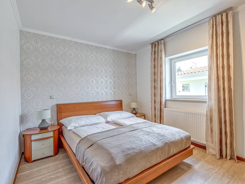 Fully equipped luxury holiday home with sea view and private pool for 6-8 people in Crveni Vrh near Savudrija. This beautiful stone holiday house is located in the village of Crveni Vrh, only 200 meters from the sea and the beach. Holiday house Milena offers complete comfort in three separate, fully equipped units. On the ground floor of the house there is a kitchen, a living room with an exit to the terrace and a garden where there is a private pool, a bedroom with a double bed and a bathroom. On the upper floor there are two private suite apartments with a balcony and an enchanting view of the sea and Savudrija Bay. A beautiful terrace in a beautifully decorated and well-kept garden, additionally offers a fireplace with barbecue equipment and a private pool (20 m2). The yard is completely fenced. Two parking spaces in the yard and one parking space in the garage are available to guests. If you want to enjoy a beautiful view of the sea, and at the same time enjoy it with your family or friends, then this is the right place for you. Restaurants and shops are located nearby (within walking distance). Golf lovers - you are in the right place, because Villa Milena is located 500 meters from the entrance to the Crveni Vrh - Savudrija golf course.