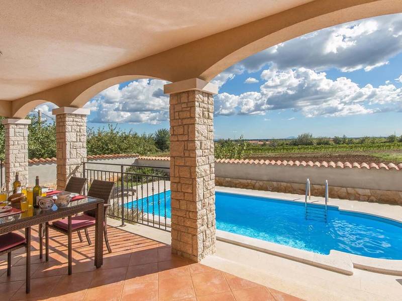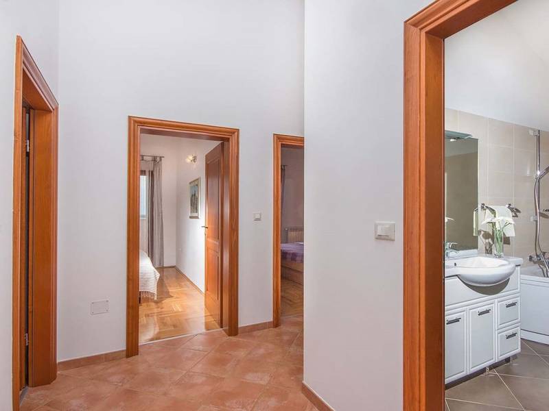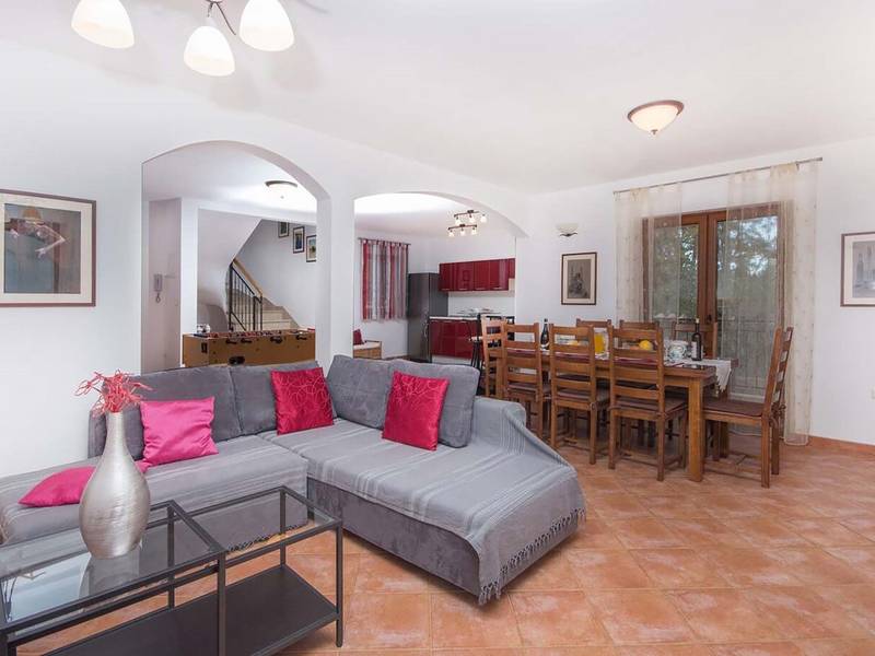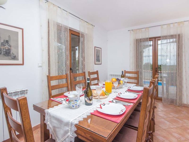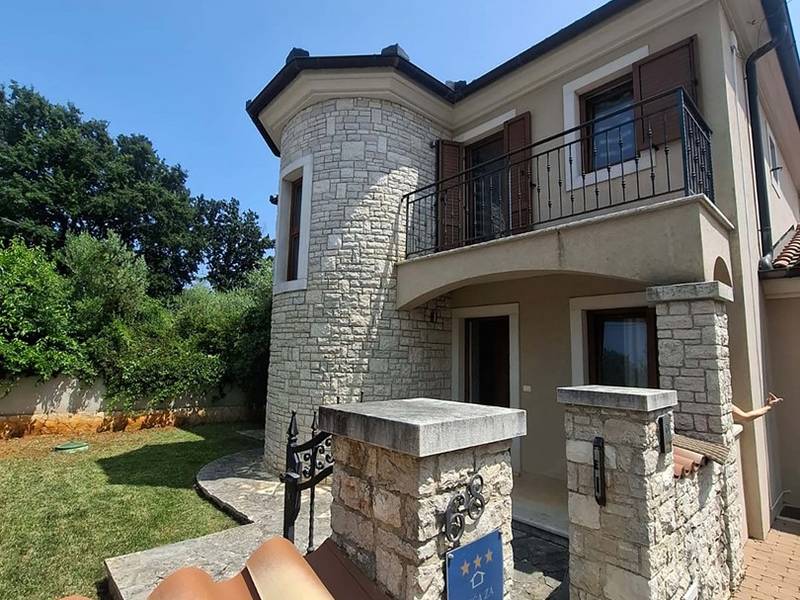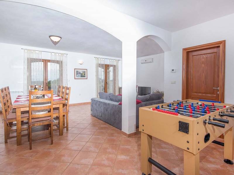 Villa Antonela is located in a quiet, green area of Istria, surrounded by vineyards and nature, making it an ideal choice for guests seeking relaxation, privacy, and a peaceful holiday atmosphere.On the ground floor, the villa features a spacious living area with a fully equipped kitchen and dining area, designed as a comfortable space for spending time together. This level also includes a bathroom and an entrance hall, while an internal staircase leads to the upper floor. From the living room, there is direct access to a covered terrace, perfect for outdoor living during warmer days.The first floor offers three comfortable bedrooms, a bathroom, a laundry room, and a terrace overlooking the surrounding nature and vineyards. The layout is functional and well suited for families or groups of friends.The outdoor area features a private swimming pool located in front of the terrace, as well as a barbecue area ideal for preparing meals and enjoying relaxed evenings outdoors. The garden provides a peaceful setting for unwinding and enjoying the natural surroundings.Villa Antonela is equipped with gas central heating with radiators, a fireplace, and air conditioning in the living room, ensuring comfort throughout the year. Guests have access to a garage for one car and an additional parking space.The sea is approximately 9 kilometres away, and several restaurants offering local Istrian specialities and wines can be found nearby. The tranquil location and comfortable living space make Villa Antonela an excellent choice for a relaxing holiday in Istria.