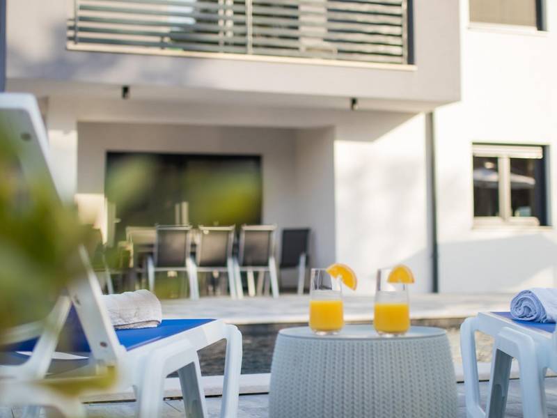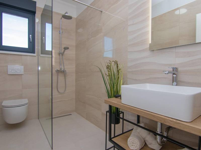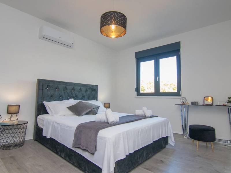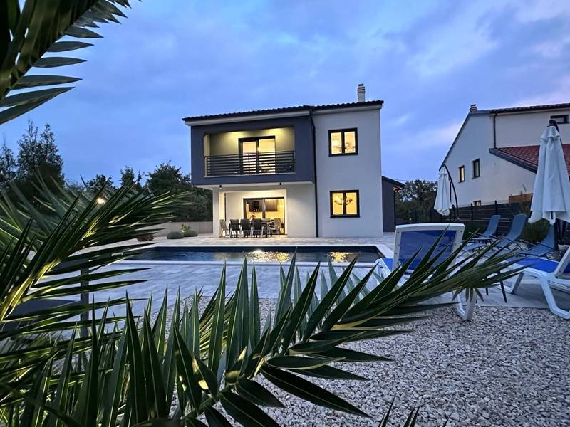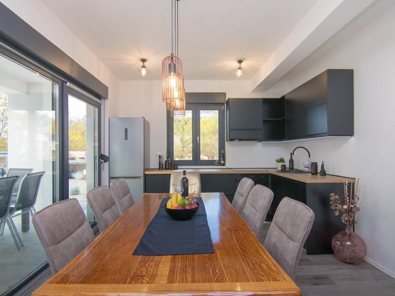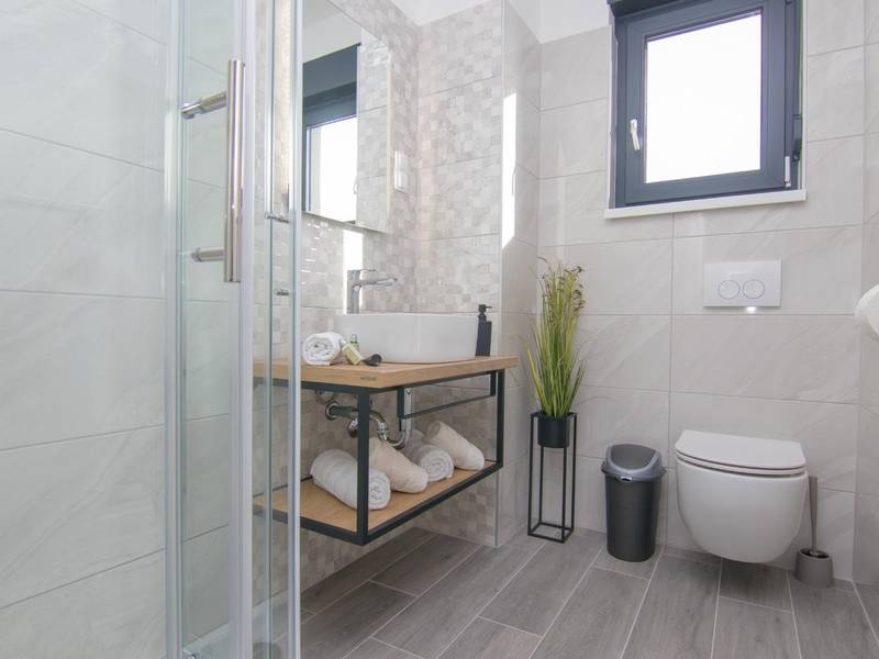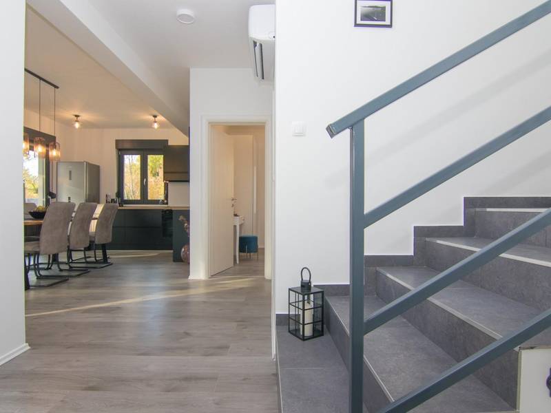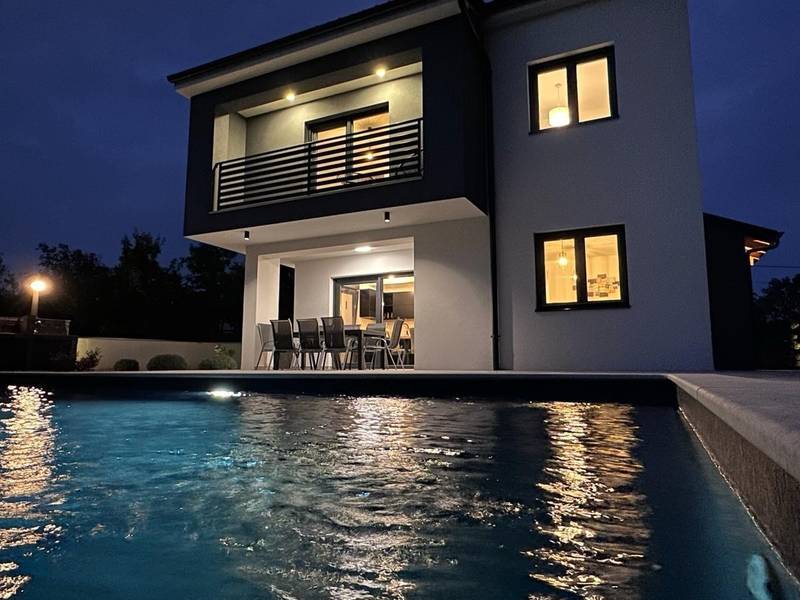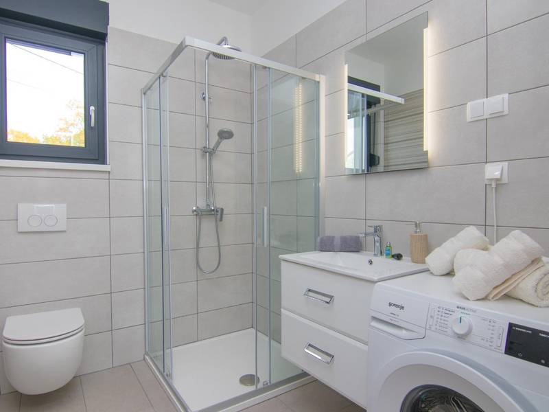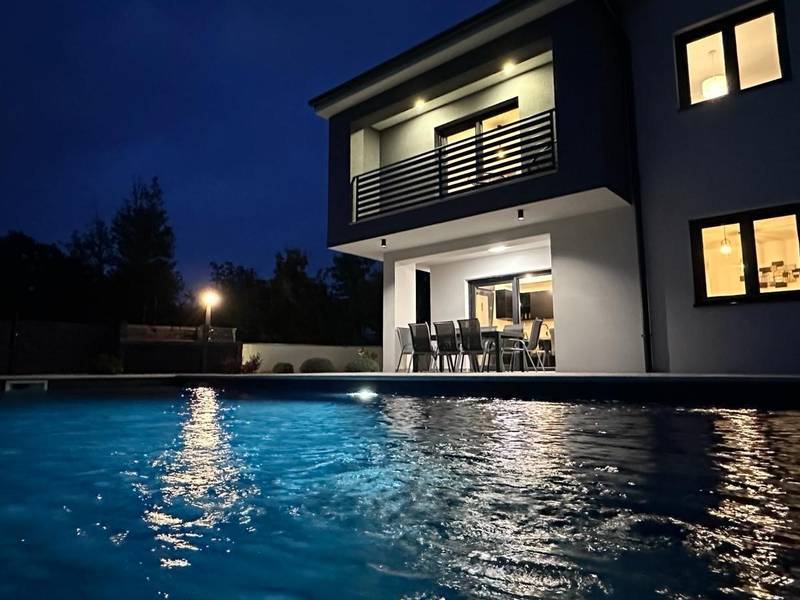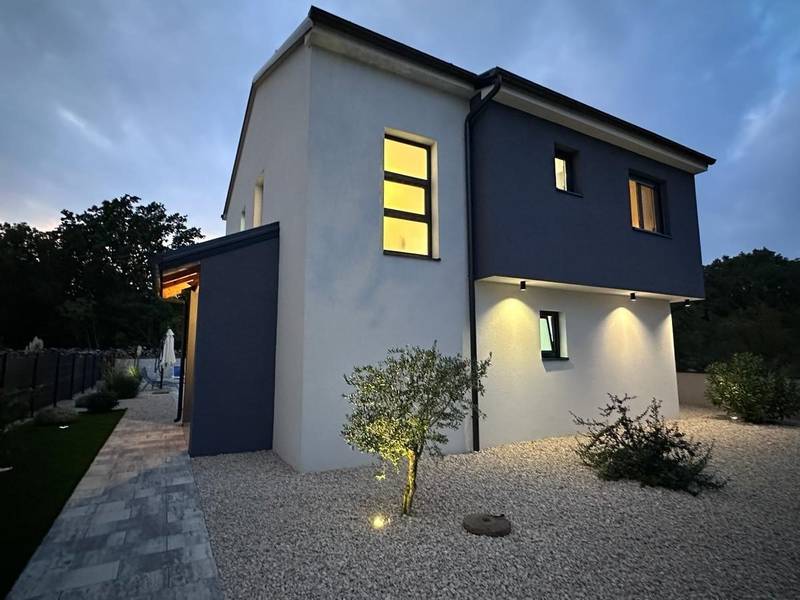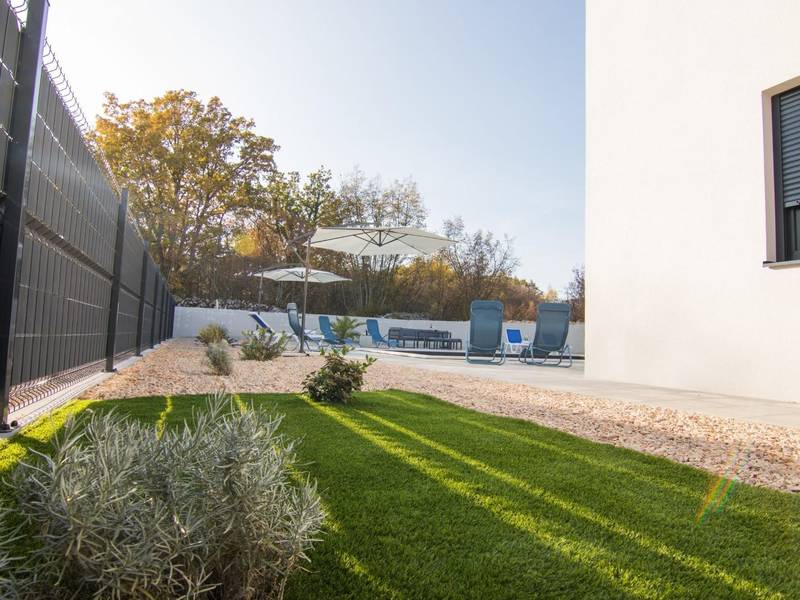 Located in Gostinjac on the island of Krk, this modern villa with a private pool is the perfect choice for a relaxing holiday in complete privacy. The villa features four spacious bedrooms, each with its own bathroom equipped with a shower, ensuring maximum comfort and privacy for up to 8 guests. The large, fully fenced garden is ideal for families with children or pets, while the private pool invites you to refresh and unwind during warm summer days. Guests can enjoy a fully equipped kitchen, air-conditioned interiors, and a cozy living area designed for relaxation and socializing. This villa offers everything you need for a carefree and comfortable stay, close to beautiful beaches and the natural charm of Krk island. Gostinjac is a small and peaceful village located in the municipality of Dobrinj on the island of Krk.