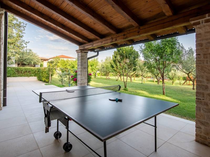 A green oasis of relaxation and enjoyment awaits you in the elegant Villa LV in the north of Istria! This modern villa with a spacious garden is the perfect vacation spot for a large family or group of friends, as it can accommodate up to 8 people. This fully air-conditioned villa is beautifully decorated and offers all the comforts of a modern home. On the upper floor of the house, there are four bedrooms with double beds at your disposal, each with its own bathroom. On the ground floor of the villa, you will find a modern kitchen with a dining room for 10 people, as well as a spacious living room with a fireplace, perfect for cozy evening gatherings. There is also a sauna, a fitness room, a wine cellar, and an indoor pool connected to the outdoor heated pool. In the spacious courtyard, the first thing you will notice is certainly the spacious heated swimming pool with accompanying sunbeds, for all-day enjoyment in the warm Mediterranean sun. In the garden, you will also find an outdoor kitchen with a barbecue and a terrace with a table for 10 people, as well as a lounge area for sipping your morning coffee in peace and quiet. On the roof of the villa there is a sundeck and a jacuzzi, while in the greenery of the garden, you will find a playground and a trampoline.