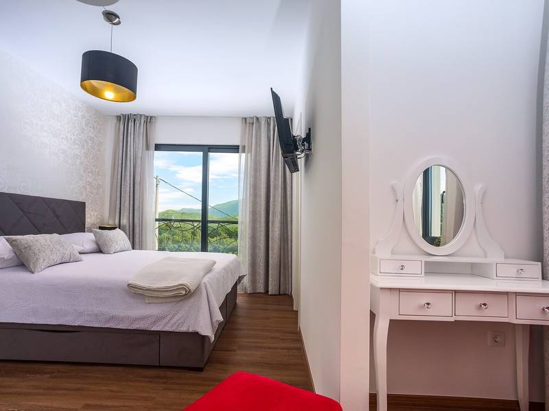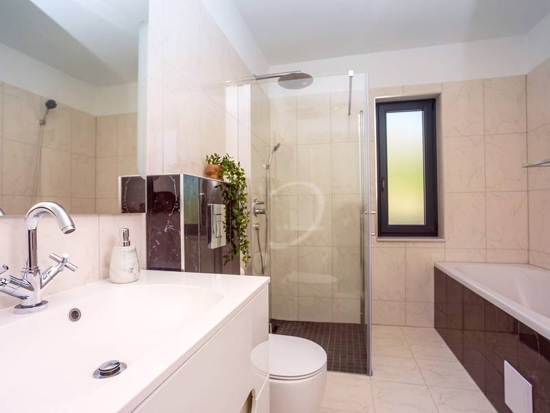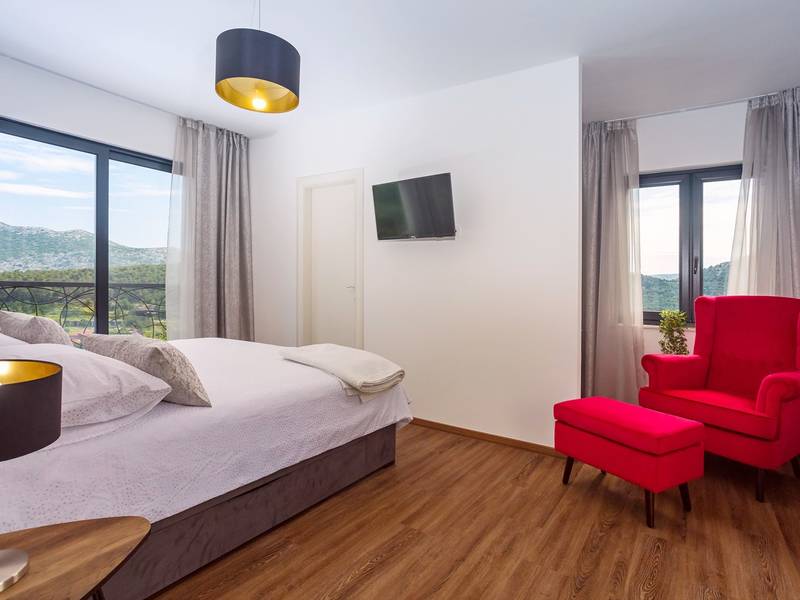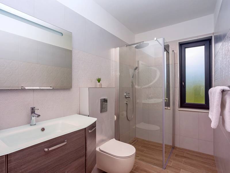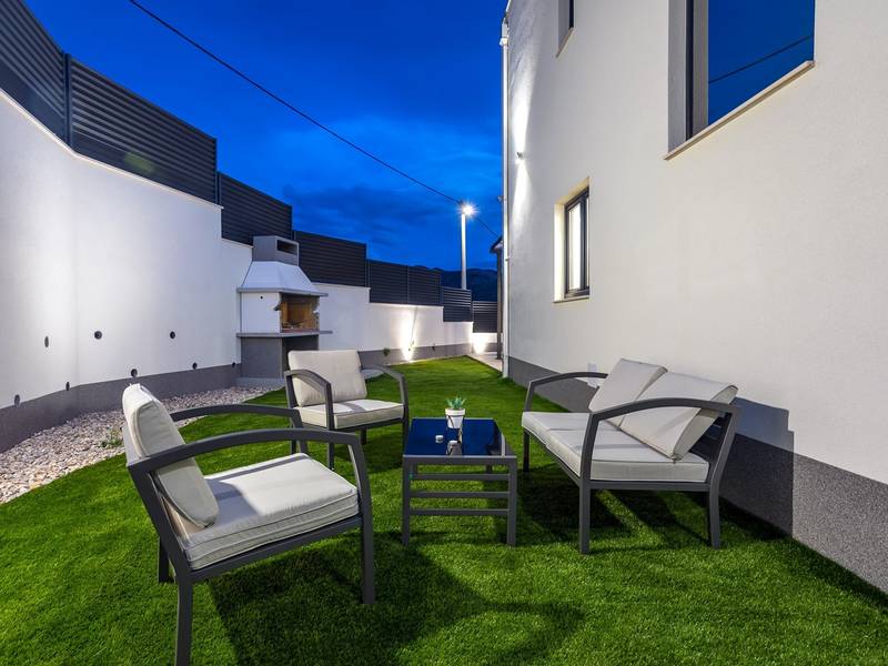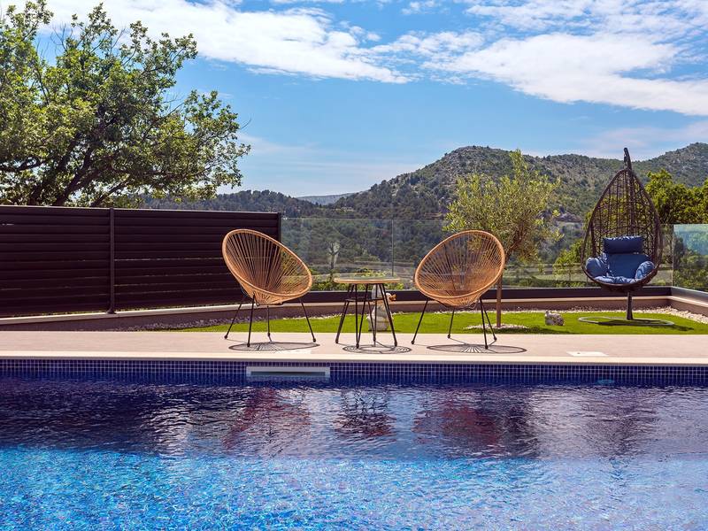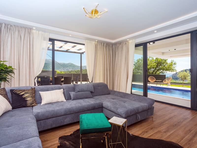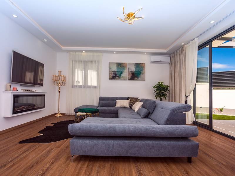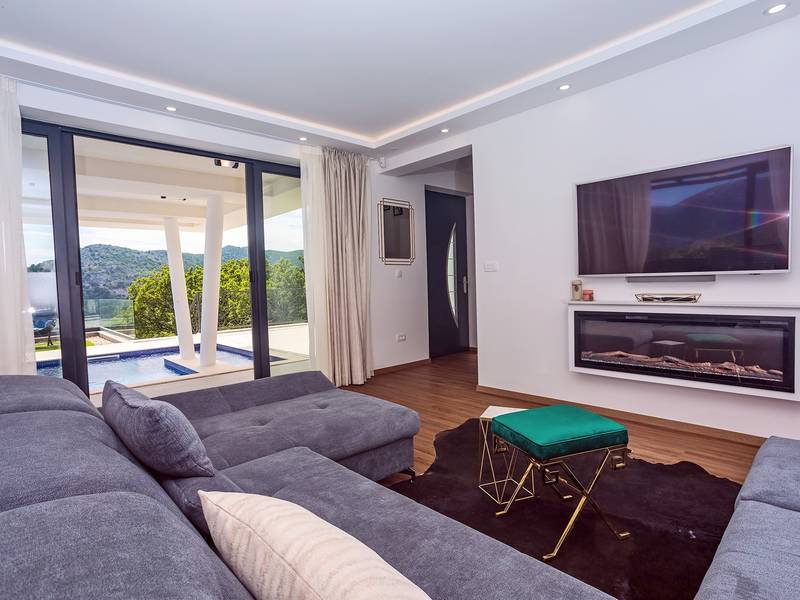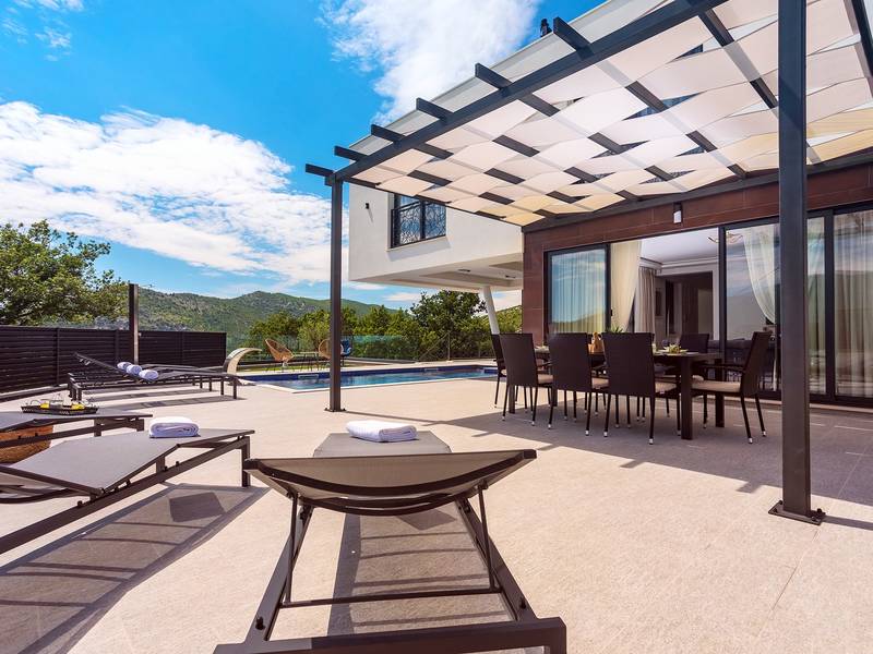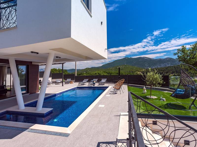 Villa Bruna is a newly built and very modern property that offers comfortable accommodation for 6+2 people. Furnished with high-quality materials, fully airconditioned with free WiFi, and equipped with all the modern guest needs. It offers a private, heated 8m Villa Bruna is located in the small village of Gata, in a very unspoiled and quiet area, only 6km to the sandy beach and town Omiš, 250 m to a minimarket, and 13km to a highway. The view is open and you can see the surroundings with typical Mediterranean plants and a mountain view.The villa has 260 sqm and is settled on the 750 sqm property that is fully fenced and has 2 garages and 2 outdoor parking places.* The outdoor offers a private and heated Swimming pool 8m x 4m, 8 deck chairs, an outdoor shower, an outdoor dining area with the traditional barbecue, a lounge corner next to it. The outdoor area is fenced and not overlooked, and you can only hear the sound of birds and crickets.* The ground floor is fully air-conditioned and consists of a fully equipped kitchen with all the amenities and appliances you need for a comfortable stay and family dining. A dining table for 8 with a direct approach to the pool area and a lounge corner on the other side. There is a living room with a flat-screen TV and direct approach to the pool and outdoor dining area. A separate toilet.* The basement offers a media room with a flat-screen TV, A/C, PS4, billiard table, Bluetooth speakers, a multifunctional machine, exercise bike, a glass wall, and view into the pool. On the other side are a Finnish sauna, a Bathroom No1 with a shower, a separate toilet and a laundry with washing machine and a dryer.* The first floor offers 3 bedrooms. Bedroom No1 with king-size bed 180*200cm, TV, A/C, a walk-in wardrobe, and a terrace with outdoor furniture. Bedroom No2 with king-size bed 180*200 cm, TV, A/C, walk-in wardrobe. Bedroom No3 with king-size bed 180 * 200cm, TV, A/C a walk-in wardrobe. There is also a family Bathroom No2 with a bathtub and a shower, and a family Bathroom No3 with a shower.* Extra services (not-included) recommended by our agency Feriehome: - You can order a grocery delivery from the comfort of your sofa, delivered in a villa at the agreed time; - Enjoy a culinary experience with an in-villa private chef that can prepare everything, from a romantic dinner to a family-friendly dinner; - You can have an in-villa massage with our professional masseuse that can show their therapeutic skills; - Get a feel for the Adriatic and some sailing experience with a sailing boat (+skipper); - Take a boat tour to explore the middle Dalmatian coast and islands...for more information, we are at your disposal and will gladly help.
