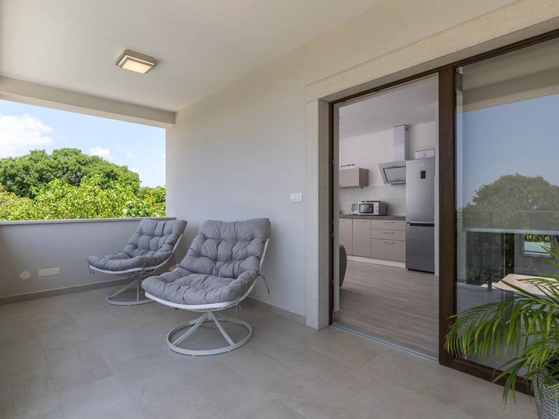Spend your well-earned vacation in a wonderful Villa Irma with pool in Istria that can accommodate up to eight people. Enjoy the view of the sea from the privacy of your estate, even though it's 8 kilometres away. Indulge your senses while feeling the scents of surrounding nature, looking at the white Mediterrannean stone and the beautiful blue pool, all glowing under the summer sun. On the ground floor you will find the living room, fully equipped kitchen, two bedrooms and a bathroom. On the upstairs there are also a kitchen and a living room and also one bedroom with bathroom. The sea is visible from the upper terrace.Some of the properties don’t allow youth groups. If you are booking an accommodation facility as a group of young individuals, contact our agency before making the reservation in order to check whether the requested property allows your stay.