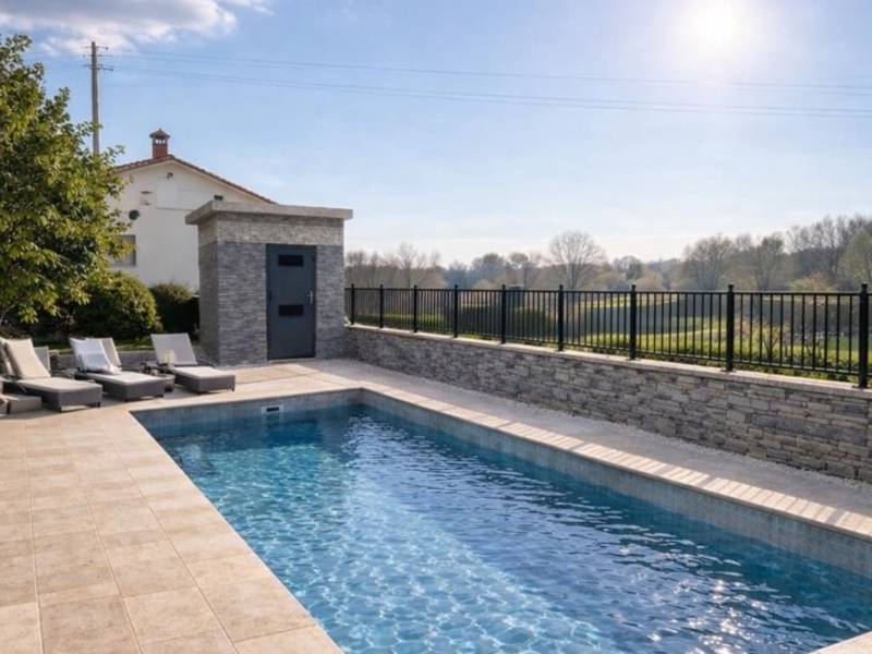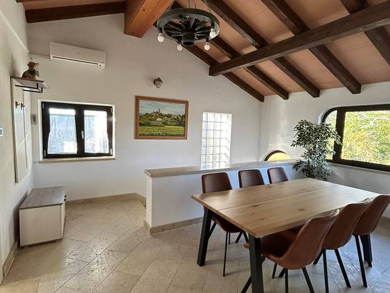 Casa Anka Gracisce with pool is modernly and yet traditionaly furnished holiday house. It can accommodate up to 5 people.The house has two bedrooms, one has double bed and an extra bed and the other bedroom has two seperated beds. There's one bathroom with washing machine and shower and an additional toilet.In the Casa Anka there's an authentic tavern with dining area, kitchen and fireplace. The tavern is decorated with old tools and elements of Istrian agrocultural tradition. Beside the tavern, there's also a modern living room with seating area and TV, additional dining area and fully enquiped kitchen with all the neccesary appliances.Outside in a private garden, there's a family pool where you can cool down and enjoy during hot summer days..