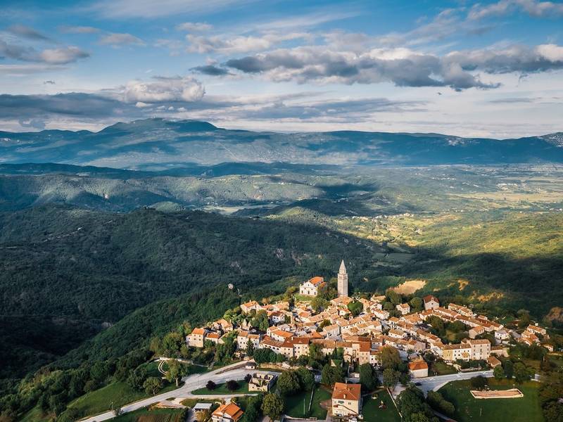 Gračišće is the centre of the Gračišće Municipality, which extends over 60 square kilometres and has a population of about 1500 people. The well preserved landscape has encouraged a few households to engage in agritourism. The traditional commitment to wine production, on the other hand, has given rise to an already popular annual Exhibition of the Wine of Central Istria. The beauty and singularity of cultural and historical monuments located in the preserved landscape are the greatest value of Gračišće. The town is visited by more and more visitors every day, not only for the Exhibition of the Wine of Central Istria, the St. Vitus Feast or the Festival of the Harmonica Zasopimo na organić. Many enthusiasts often come to this town to feed on the tranquillity inundating its streets lined with old architecture and converging at the tall bell tower and the parish church, both from the 18th century. Everyone will receive a gift here: from the lawn surrounding the church, visitors obtain probably one of the most beautiful views extending over the undulating landscape of Istria, merging into the peaks of the lofty Učka Mountain.