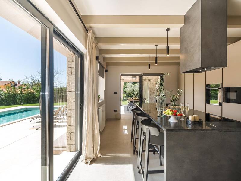 Discover the ultimate luxury and complete relaxation at Villa Cami, located in the peaceful village of Gržići. This exceptional oasis provides a refuge for discerning travelers, with a private pool, free Wi-Fi, exclusive parking, and a fitness room. Step into the world of comfort within this spacious family home offering four elegantly appointed bedrooms, each designed for maximum comfort and relaxation. Entertainment awaits with a TV equipped with streaming services, while the modern fully equipped kitchen entices culinary enthusiasts with its contemporary amenities. Whether you're enjoying a delicious meal in the outdoor dining area or cozying up by the fireplace on cooler evenings, Villa Cami ensures an unforgettable experience in every season. Enjoy complete privacy with a private entrance, allowing you to relax without any interruptions.Some of the properties don’t allow youth groups. If you are booking an accommodation facility as a group of young individuals, contact our agency before making the reservation in order to check whether the requested property allows your stay.