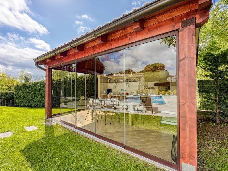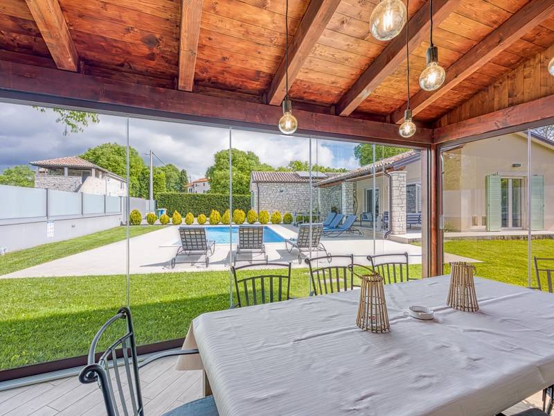 Get to know this wonderful holiday home located in a village near Grožnjan, known for its artistic atmosphere and the charm of the Istrian hinterland. This modernly equipped house offers the perfect combination of comfort and luxury for a relaxing stay in the heart of Istria. A large and beautifully landscaped garden offers a quiet corner with a private pool, whirlpool, and sauna, perfect for refreshment and relaxation. The summer kitchen allows you to enjoy the open space while preparing delicious meals outdoors. With three spacious en-suite bedrooms, this house offers privacy and comfort for the whole family or group of friends. Surrounded by a beautiful green landscape, this oasis of peace provides the perfect backdrop for relaxing and enjoying Istrian rural life.