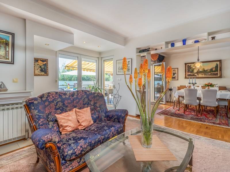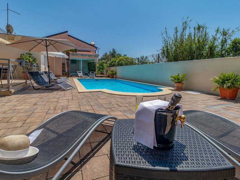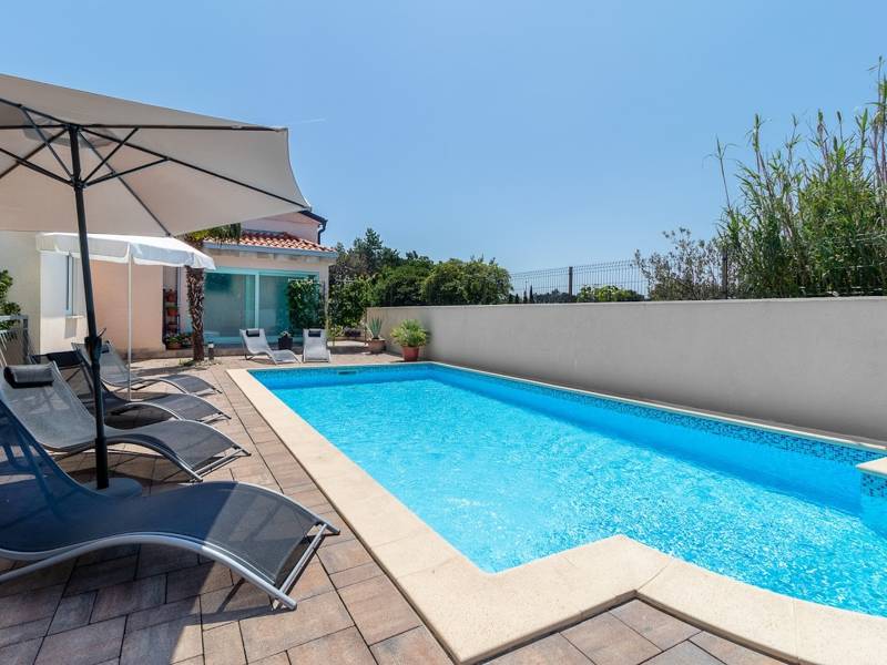 Villa Mary is a beautiful house on 2 floors that consists of 4 bedrooms: 3 of them have double beds, and one them has two single beds. The villa can accommodate up to 8 persons. The kitchen is fully equipped with all the necessary cooking facilities, a fridge combined with a freezer, a stove, a dishwasher, a microwave, an oven, a coffee machine, a toaster and a water kettle. The living room comes with a seating area with fireplace and  TV/DVD.  Furthermore,  there are 2 bathrooms and a separate toilet. A barbecue facility and a private swimming pool in the garden are on the guests' disposal.  On the spacious terrace/patio guests can enjoy in their morning coffee overlooking the garden and pool. There's a private parking in front of the house. This charming Villa is an ideal choice for a holiday with your family. Come and spend the vacation of your dreams far away from the hustle and bustle of the city..