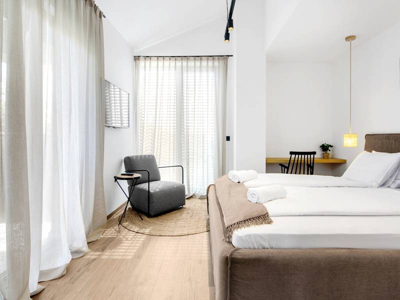 Treat yourself to a quality vacation with your nearest and dearest by staying in the beautiful Villa Vallis in the quiet village of Kadumi, near Poreč. The villa can accommodate up to 4 people, making it the perfect choice for a small family or group of friends. This modern, fully air-conditioned villa offers everything you need for an unforgettable vacation. Two tastefully decorated bedrooms with en suite bathrooms are at your disposal. The open space concept of the main floor is decorated in light shades and provides enough space for complete relaxation and enjoyment for the entire group. The modern kitchen is equipped with everything you might need to prepare delicious meals, which you can serve at the spacious dining table. The comfortable living room with wide sliding doors provides enough light for undisturbed relaxation under the air conditioning. The villa also features a modern sauna. Thanks to the unobstructed access, you will find yourself in the yard in no time, where a spacious swimming pool awaits you with accompanying deck chairs for all-day enjoyment in the sun. There you will also find an outdoor dining table, as well as an outdoor kitchen for preparing delicious meals in the fresh air. As icing on the cake, there is also a jacuzzi in the courtyard of the villa, where you can enjoy beautiful sunsets.