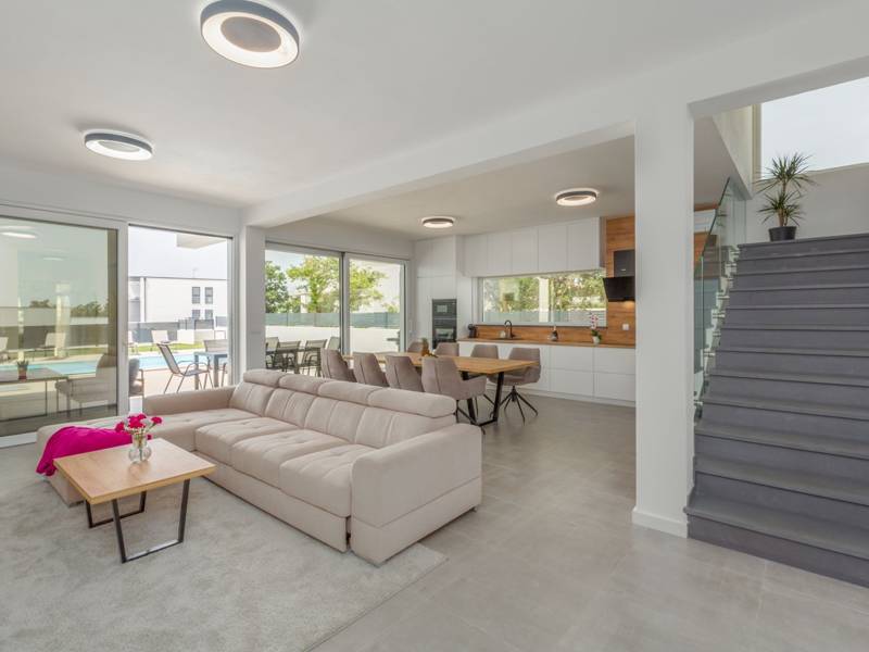 Welcome to our new villa in Kanfanar, a charming town near Rovinj. This exquisite property offers a perfect combination of elegance and comfort. Boasting a private 32 sqm pool, this villa is designed to provide an unforgettable vacation experience.As you step into the villa, you will be greeted by a spacious and beautifully modern decorated living area. The living room provides a cozy space for relaxation, complete with plush sofas, a flat-screen TV, and large windows that allow ample natural light to flood the space.The villa features four spacious bedrooms, each offering the utmost privacy and comfort. Every bedroom is equipped with its own en suite bathroom, ensuring convenience and luxury for every guest. Two bedrooms have the added benefit of direct access to a charming balcony.Preparing meals will be a delight in the fully equipped kitchen. The dining area adjacent to the kitchen provides a comfortable space for enjoying meals with family and friends. For those who prefer dining al fresco, a lovely outdoor dining area awaits you, complete with a barbecue, where you can savor delicious meals while soaking in the warm Croatian sun.The highlight of this villa is undoubtedly the 32 sqm private pool. Take a refreshing dip in the crystal-clear waters, lounge on the sunbeds, or simply unwind in the tranquil ambiance of the pool area. It's the perfect spot to cool off during hot summer days or relax under the starry night sky.Kanfanar is a picturesque town located near Rovinj, renowned for its stunning coastline, charming architecture, and rich cultural heritage. Explore the narrow streets of the old town, visit local shops and restaurants, or take a short drive to Rovinj, where you can discover beautiful beaches, historical landmarks, and vibrant nightlife.Indulge in the luxurious comforts of this villa in Kanfanar. Whether you're seeking relaxation, adventure, or a bit of both, this exquisite property is the perfect choice for an unforgettable vacation experience in Croatia.