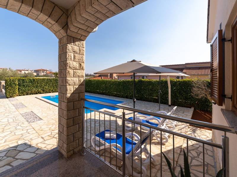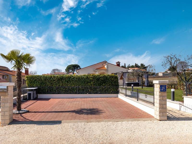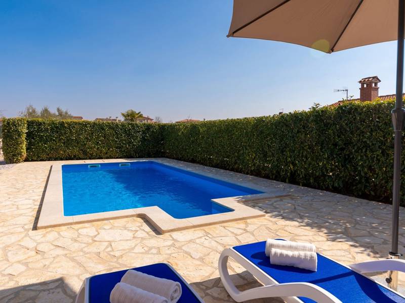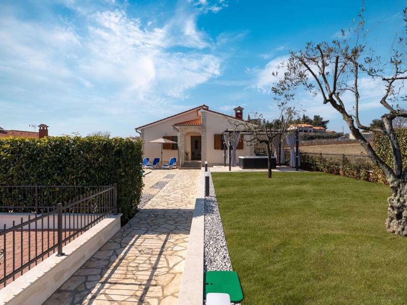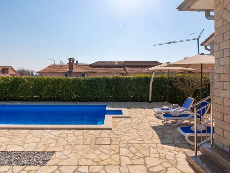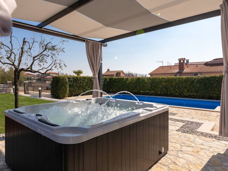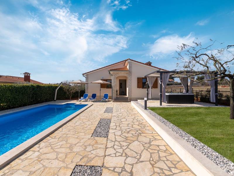 Villa Marko is a charming holiday home located in the peaceful village of Kaštelir on the western coast of Istria. With 90 m2 of living space, it is ideal for 4 to 6 guests, offering comfort, privacy, and all the amenities needed for a relaxing vacation.The interior features a cozy living room with a large, resizable sofa bed for two additional guests, a dining area, and a fully equipped kitchen. The villa includes one bathroom and two air-conditioned bedrooms, each furnished with a double bed and satellite TV.Outside, guests can enjoy a 32 m2 private swimming pool and a jacuzzi, perfect for cooling off or unwinding after a day of exploring. The covered summer kitchen with a large fireplace and dining area provides the perfect setting for al fresco meals. The property also offers two private parking spaces.The nearest beach is just 8 km away and can be reached in about 10 minutes by car. The village of Kaštelir itself offers several restaurants, pizzerias, and cafés, as well as shops, a post office, and an ATM – all within walking distance.Poreč, one of the most popular tourist destinations on the Adriatic, is only 10 km away and offers a wide range of attractions, entertainment, and cultural sites.Villa Marko is the perfect base for a relaxed yet memorable holiday in Istria.