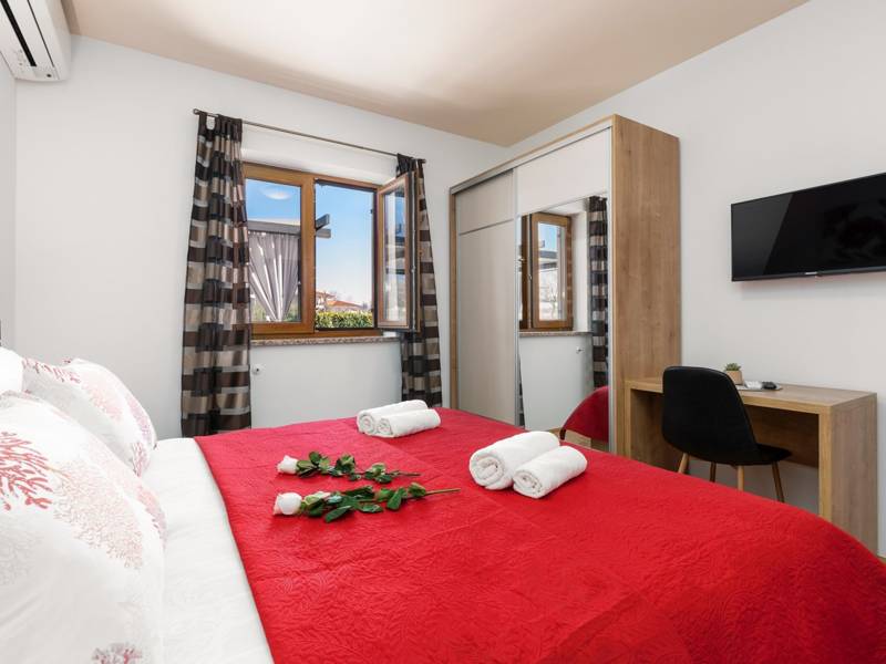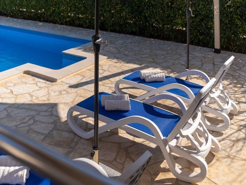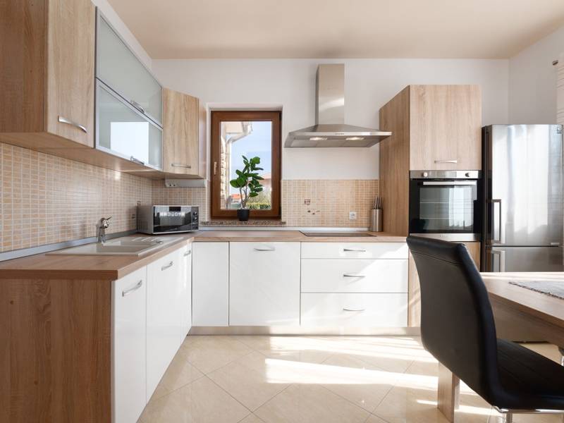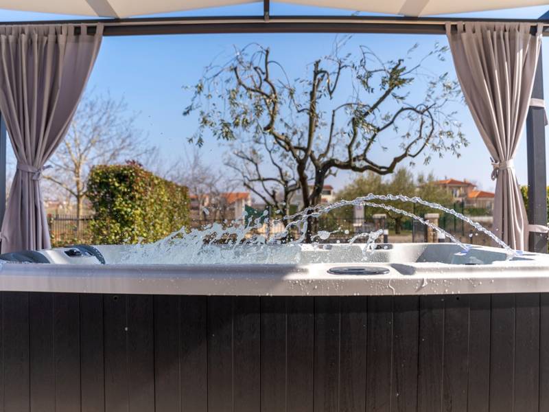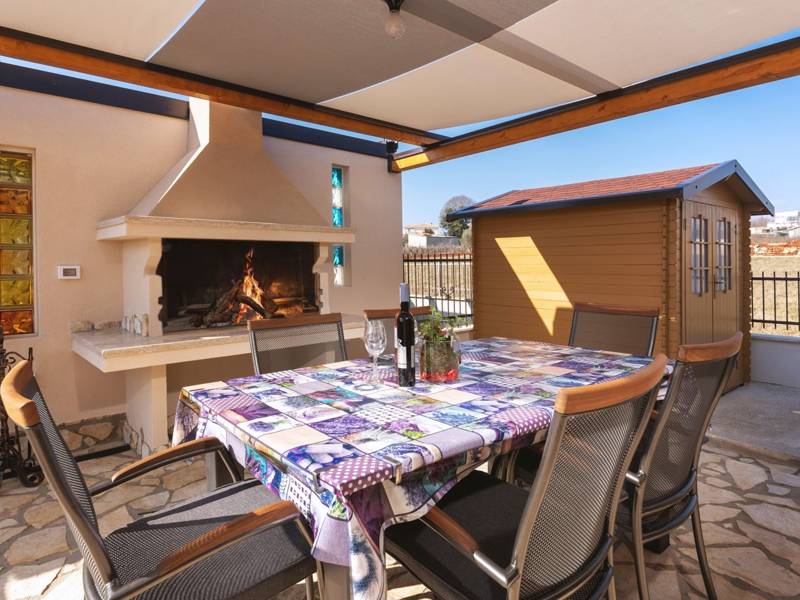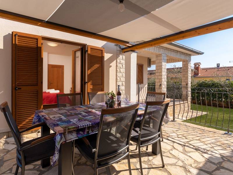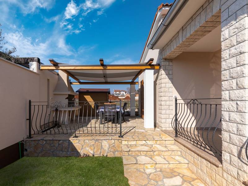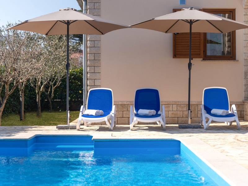 Villa Marko is a charming holiday home located in the peaceful village of Kaštelir on the western coast of Istria. With 90 m2 of living space, it is ideal for 4 to 6 guests, offering comfort, privacy, and all the amenities needed for a relaxing vacation.The interior features a cozy living room with a large, resizable sofa bed for two additional guests, a dining area, and a fully equipped kitchen. The villa includes one bathroom and two air-conditioned bedrooms, each furnished with a double bed and satellite TV.Outside, guests can enjoy a 32 m2 private swimming pool and a jacuzzi, perfect for cooling off or unwinding after a day of exploring. The covered summer kitchen with a large fireplace and dining area provides the perfect setting for al fresco meals. The property also offers two private parking spaces.The nearest beach is just 8 km away and can be reached in about 10 minutes by car. The village of Kaštelir itself offers several restaurants, pizzerias, and cafés, as well as shops, a post office, and an ATM – all within walking distance.Poreč, one of the most popular tourist destinations on the Adriatic, is only 10 km away and offers a wide range of attractions, entertainment, and cultural sites.Villa Marko is the perfect base for a relaxed yet memorable holiday in Istria.