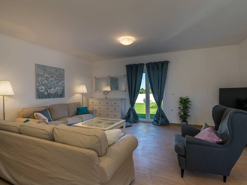 The stunning Villa Klara is an Istrian villa with pool decorated with keen attention to details. Clean lines, combination of white and shades of blue in both the interior and exterior give a sense of freshness and summer joy. The furnishing of the house is very elegant which contributes even more to the overall impression. The house is over 200 square meters large and accommodates 9 people within its 4 bedrooms. The house is situated in an Istrian village Klarići, so it has countryside ambiance of Green Istria, and the distances from the airport, beaches, cities and historical landmarks are all within reach of a max 20 minutes' drive.Some of the properties don’t allow youth groups. If you are booking an accommodation facility as a group of young individuals, contact our agency before making the reservation in order to check whether the requested property allows your stay.