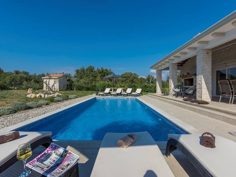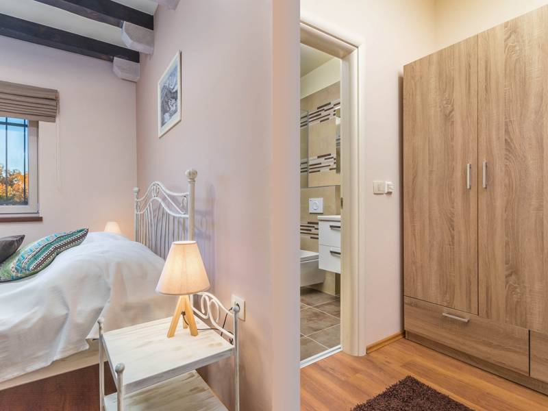 Comfortable Villa Marija Hrast is the perfect place for a relaxing holiday thanks to its location and it can accommodate up to 8 guests. The Villa spreads on 280 square meters and It consists of a cozy and nicely decorated living area with access to the private pool and garden, a dining area, a fully equipped kitchen with kitchen utensils, and four comfortable bedrooms, each with a double bed. Each bedroom has its own bathroom with a shower, TV, and air-conditioning. Privacy and relaxation are guaranteed at the pool and garden area. The guests can enjoy their time at the pool with sunbeds and the beautiful green garden with a small playground for children. In front of the house is private parking for the guests. If you are looking for a relaxing vacation with family and friends this is a perfect place for you.