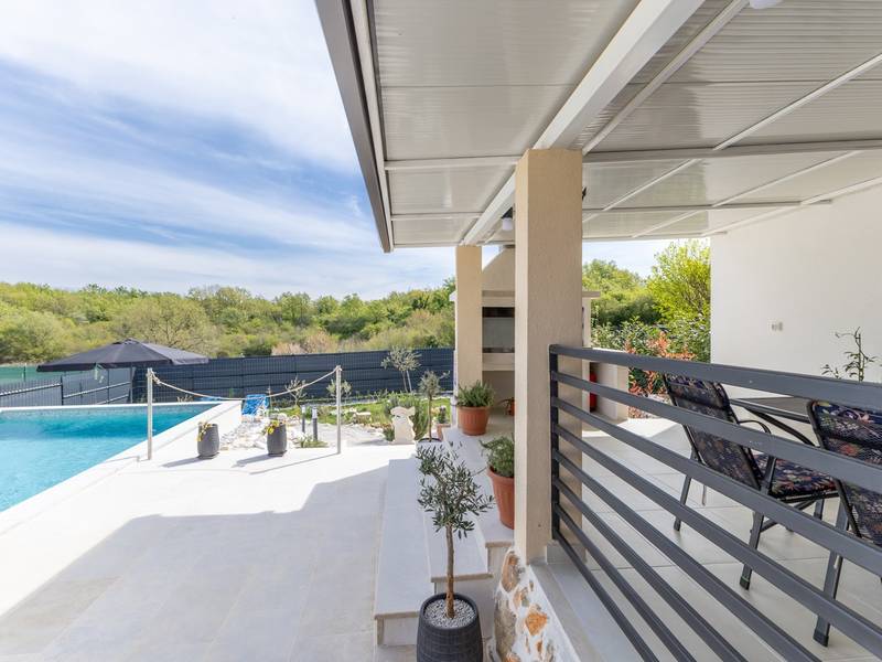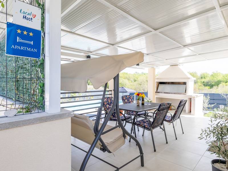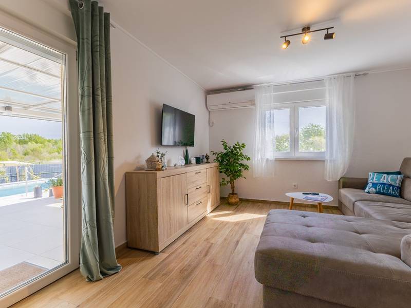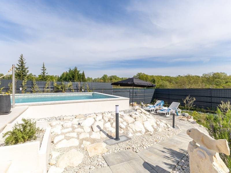Located in the quiet and green village of Kosinižići, in the immediate vicinity of Poreč, this cozy apartment is an ideal choice for a relaxing stay for up to 4 people. The location provides the perfect balance between privacy and proximity to all important amenities and beautiful Istrian beaches.The apartment is modern and functionally furnished and consists of a kitchen connected to the dining room and living room. The living room has a sofa bed that provides additional accommodation for two people. Guests also have a comfortable bedroom at their disposal, as well as a bathroom with a shower and a washing machine, which makes the stay practical even for longer holidays.A special advantage of this accommodation is the private outdoor space that ensures guests complete peace and enjoyment of the outdoors. There is a landscaped garden, barbecue and a private pool, perfect for refreshing during warm summer days.This apartment is an excellent choice for couples, small families or friends who want to explore Poreč and Istria, while enjoying the comfort and privacy of their own accommodation.
