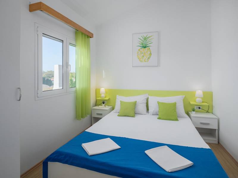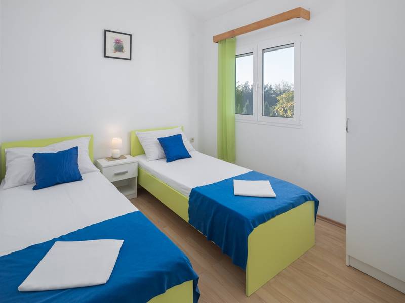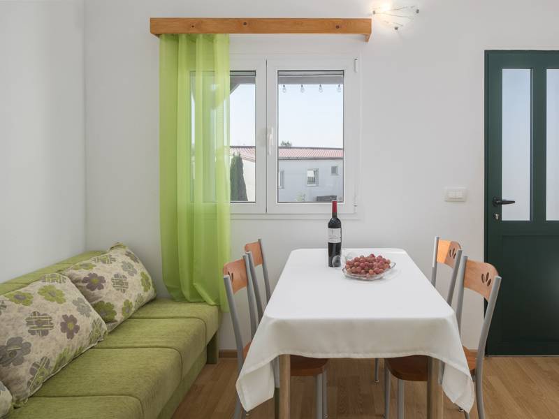 Holiday House Jelovci No.4 with private pool is one of nine holiday houses in Holiday Park Village Jelovci. The house consists of a spacious living room with an equipped kitchen and dining area, two bedrooms and two bathrooms with shower. With its two bedrooms and the sofa bed in the living room, the house can accommodate up to 6 persons. Guests also have a private garden with a barbecue area and a private swimming pool, as well as a private terrace with seating furniture at their disposal. All guests of the Village Park Jelovci can also use the shared childrens' playground with a kids' pool and other activities suitable for children. There is also a laundry room available to all guests, and a conference room suitable for different types of gatherings. Holiday House Jelovci No.6 is perfect for a family with children who will surely enjoy everything Holiday Park Jelovci has to offer and make wonderful holiday memories here. Eco-friendly Park Village Jelovci uses renewable energy, therefore is the air-condition free to use 10 hours daily.