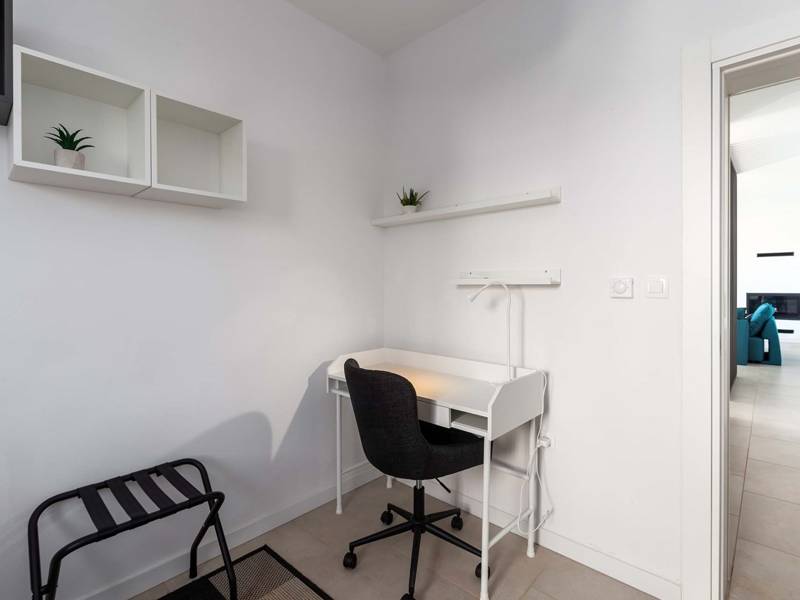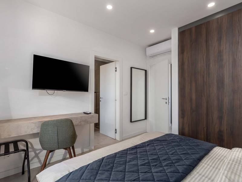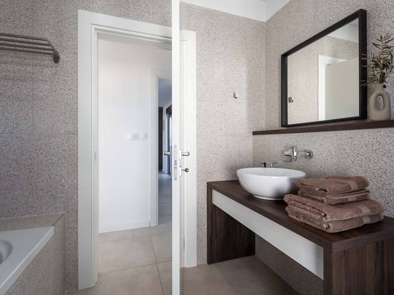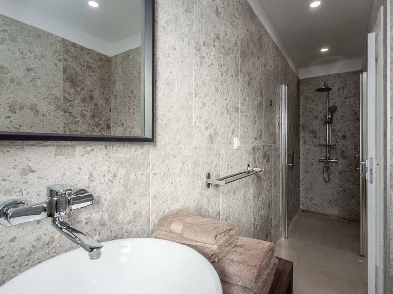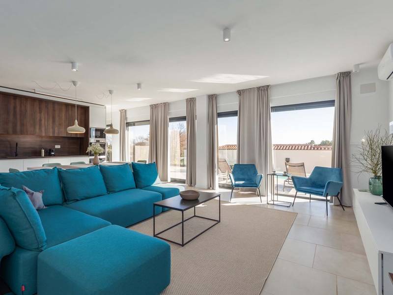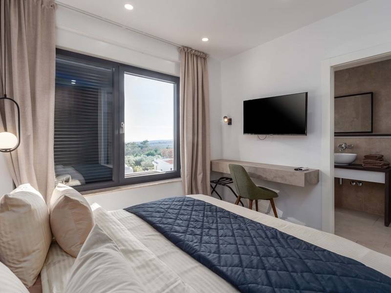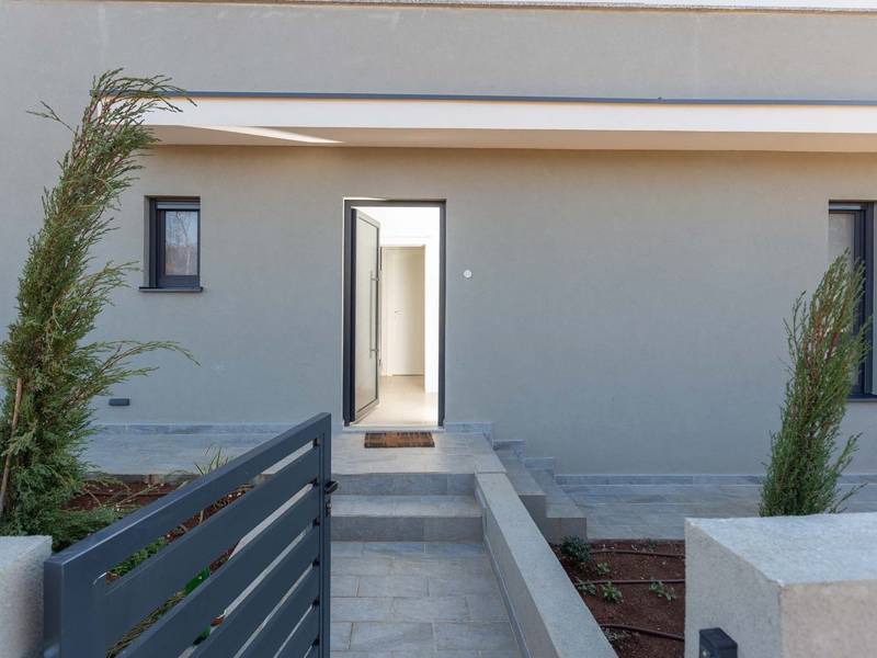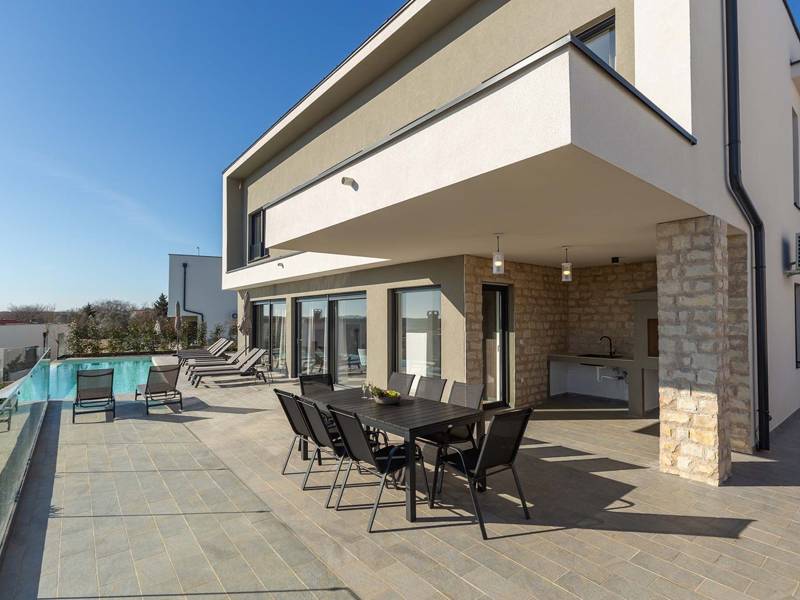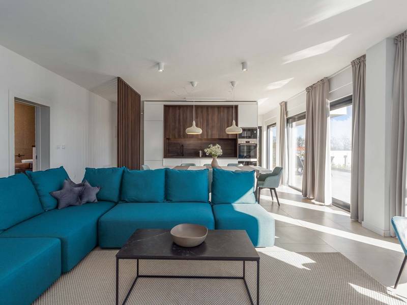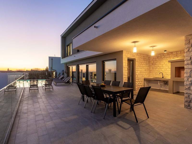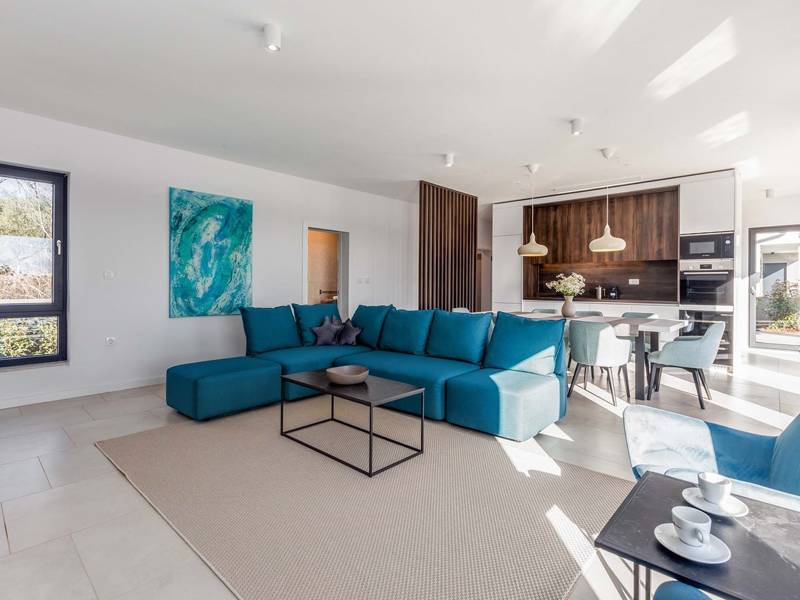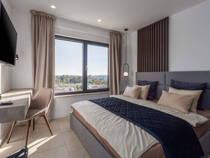 Villa Seastar is where relaxed living, design, and a sense of lightness come together. Located close to the sea, this modern villa is perfect for families and friends who want to enjoy Istria at their own pace. It features three bedrooms with double beds and one with a pull-out bed, comfortably accommodating up to eight guests. The spacious open-plan living area overlooks the infinity pool, the sea, and the island of Cres, creating a bright, connected atmosphere for long breakfasts, sunbathing, or evening relaxation at sunset.For guests who enjoy staying active, Villa Seastar provides exercise mats, several Pilates exercise balls of different sizes, resistance bands, and black rolls for stretching and relaxation. Guests can also take advantage of free bike rentals from a local partner in Krnica — ideal for exploring the area on two wheels.Everything here feels relaxed, modern, and effortless — a touch of luxury balanced with wellness and nature.The VillaSpacious and elegant, the villa spreads over two floors and is filled with natural light thanks to large glass walls facing the sea. The design combines clean lines, neutral tones, and natural materials, creating a soothing and comfortable atmosphere.On the ground floor, the open-plan living room, dining area, and fully equipped kitchen all connect directly to the terrace, providing a seamless transition between indoor and outdoor spaces. Every detail has been carefully selected to combine functionality and elegance, offering guests a true sense of relaxation.Bedrooms and LayoutThe villa offers four bedrooms, each with its own private bathroom.Three bedrooms feature double beds, while the fourth, located on the ground floor, includes an extendable single bed that can become a comfortable double bed.All rooms are air-conditioned, tastefully furnished, and filled with natural light. One bathroom is equipped with a bathtub, while the others feature modern walk-in showers.The refined design and the use of natural materials create a peaceful atmosphere, ideal for unwinding after a day by the sea.Outdoor AreaThe highlight of Villa SeaStar is the stunning infinity pool with sea view, perfectly positioned to overlook the horizon and the island of Cres. Around the pool, there is a spacious terrace with sun loungers, parasols, and an outdoor dining area – the perfect place for morning coffee, relaxation, or dinner under the stars.A barbecue area is also available, while the surrounding Mediterranean greenery ensures privacy and tranquility.Additional InformationThe villa provides Wi-Fi, private parking, air conditioning throughout, a washing machine, and a dishwasher.Guests can use the provided Pilates and fitness equipment, as well as enjoy free bicycles offered by a local partner in Krnica.Pool heating with a heat pump is available on request in April, May, September, and October – at an extra charge of 200.00 EUR per week, depending on weather conditions.The house is not suitable for youth groups.Pets are not allowed.Smoking is not permitted indoors.