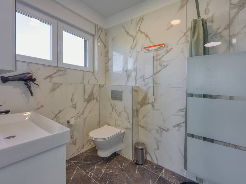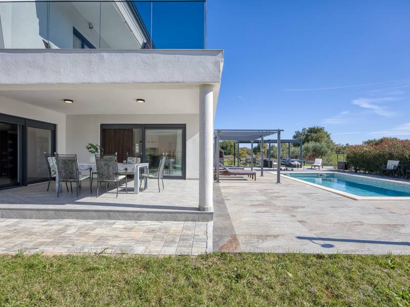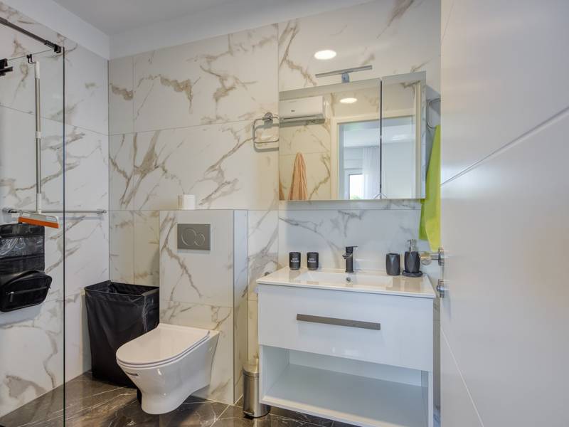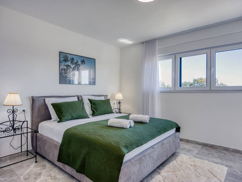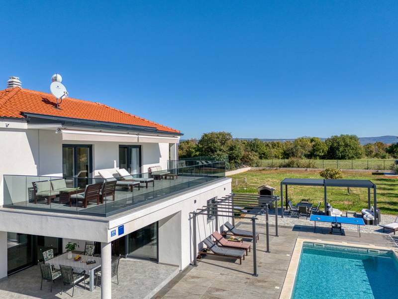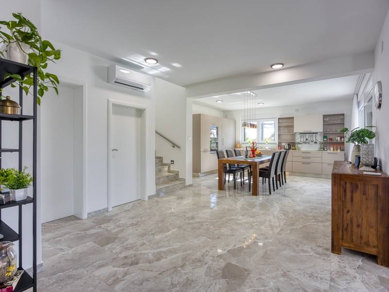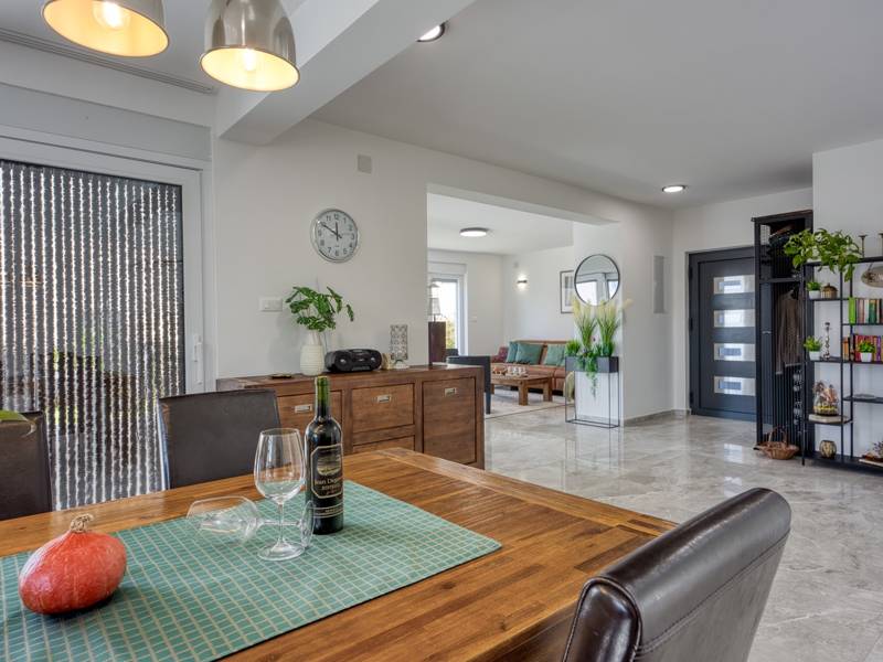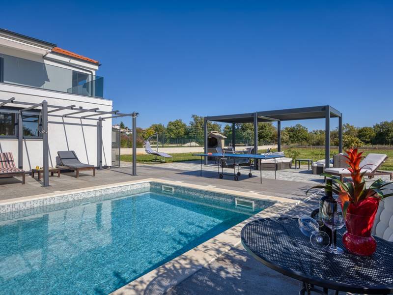 Beautiful Villa Victoria is located in the charming town of Krnica, in the immediate vicinity of which is the eastern coast of Istria and its enchanting beaches, as well as the abundance of cultural, historical and culinary experiences for which Istria is famous. Villa Victoria is a modernly decorated villa for up to 8 people, and consists of a fully equipped kitchen, living room, four bedrooms and four bathrooms. All bedrooms contain comfortable double beds, with one bedroom located on the ground floor, while the other three are located upstairs. The outdoor area of ??the house offers a private pool, ideal for a refreshing swim on sunny days. The pool is heated in May and September. There are also sun loungers in the courtyard as well as a spacious terrace with a large dining table. Private parking is available in the courtyard. Villa Victoria is an ideal destination for families and friends who want to relax and enjoy the beauties of Istria!