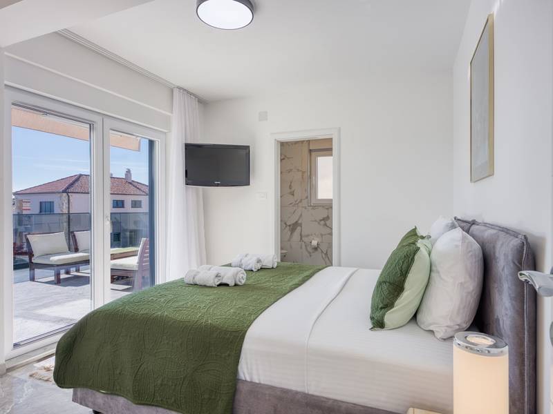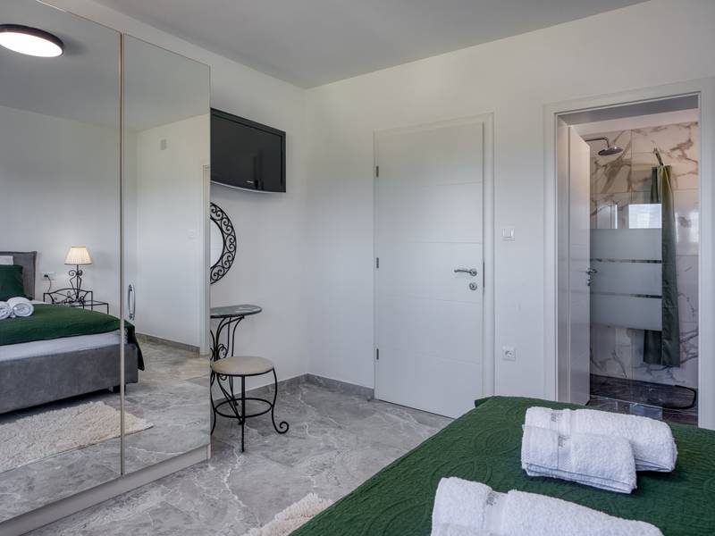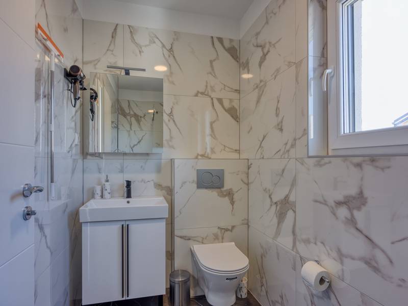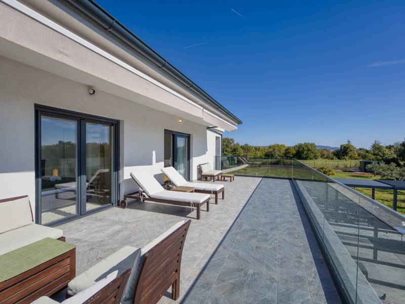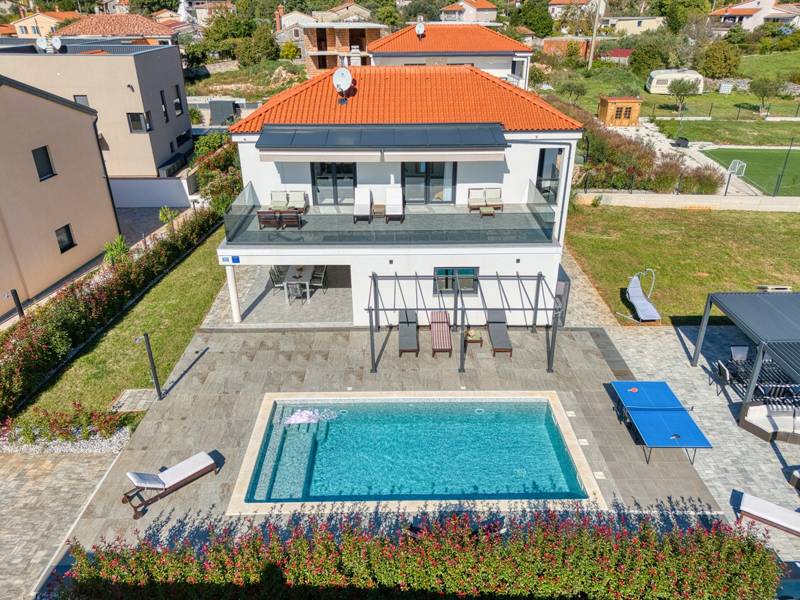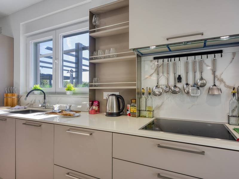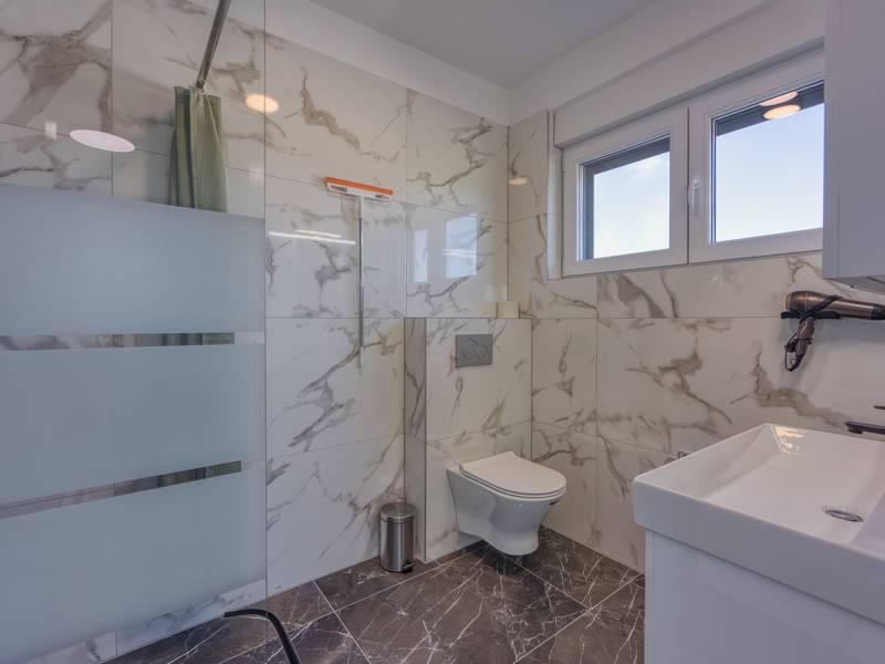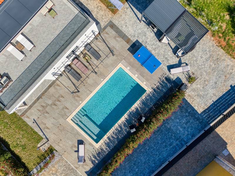 Beautiful Villa Victoria is located in the charming town of Krnica, in the immediate vicinity of which is the eastern coast of Istria and its enchanting beaches, as well as the abundance of cultural, historical and culinary experiences for which Istria is famous. Villa Victoria is a modernly decorated villa for up to 8 people, and consists of a fully equipped kitchen, living room, four bedrooms and four bathrooms. All bedrooms contain comfortable double beds, with one bedroom located on the ground floor, while the other three are located upstairs. The outdoor area of ??the house offers a private pool, ideal for a refreshing swim on sunny days. The pool is heated in May and September. There are also sun loungers in the courtyard as well as a spacious terrace with a large dining table. Private parking is available in the courtyard. Villa Victoria is an ideal destination for families and friends who want to relax and enjoy the beauties of Istria!