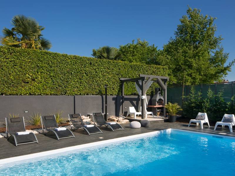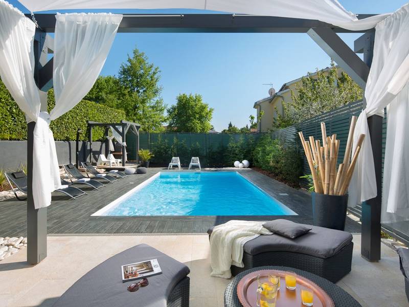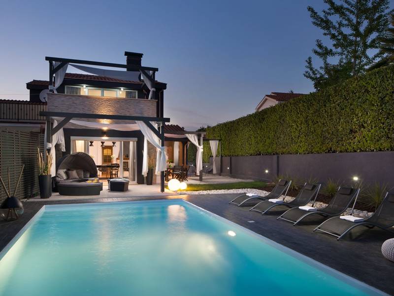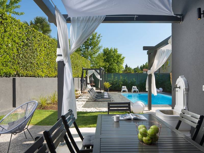 Villa Evita is located in Kukci, on the west coast of Istria, just a 5-minute drive from Poreč, one of the most popular coastal towns in the region. This beautifully appointed four-bedroom is designed for pure relaxation and comfort, while remaining close to all the attractions the Poreč area has to offer.Set on a private plot with a landscaped garden and swimming pool, Villa Evita offers 185 m2 of elegant living space across two floors.The ground floor features a bright dining area with a fireplace and direct access to the garden, as well as a fully equipped kitchen. This level also includes two air-conditioned double bedrooms, one of which has a private bathroom, plus an additional shared bathroom.Upstairs, you will find a stylish living room with comfortable seating and a TV, enhanced by large glass windows that open onto a spacious balcony. This floor also offers two more air-conditioned bedrooms—one with a double bed and one with two single beds—along with a shared bathroom.Step outside and enjoy your own private oasis: a 32 m2 swimming pool, surrounded by greenery, a covered outdoor dining area, and a charcoal barbecue—perfect for relaxing afternoons and unforgettable dinners under the stars.For your convenience, Villa Evita is equipped with Wi-Fi, a washing machine, ironing facilities, and private parking.Come and unwind, embrace the beauty of the Istrian coast, and create unforgettable memories at Villa Evita—your perfect home away from home.At Villa Evita, you can enjoy complete privacy, while a local shop and restaurant are located just 500 meters from the house, and the lively town of Poreč with its beautiful beaches is only a 5-minute drive away.Note:- Pets are not allowed. - Youth groups are not permitted. A youth group is defined as a group where members are 26 years old or younger. Reservations may be declined after confirmation, including upon arrival or during the stay, and refunds may not be granted.