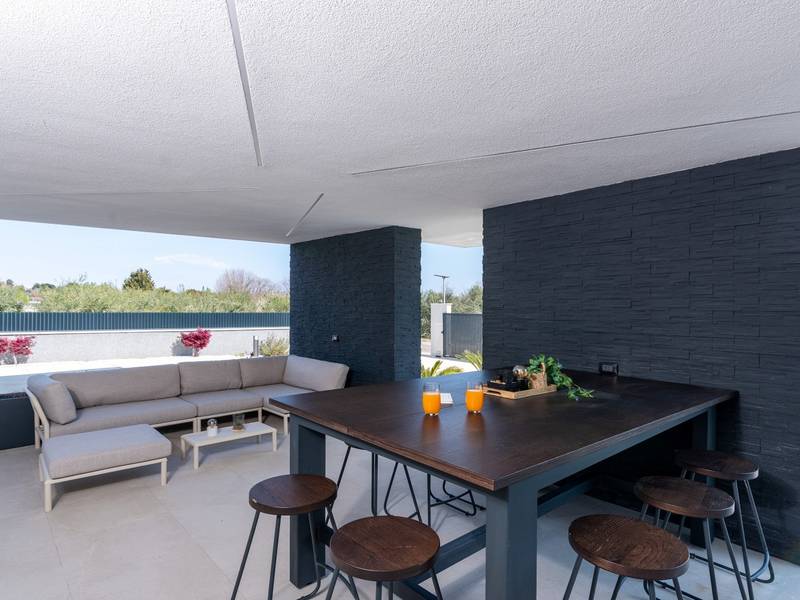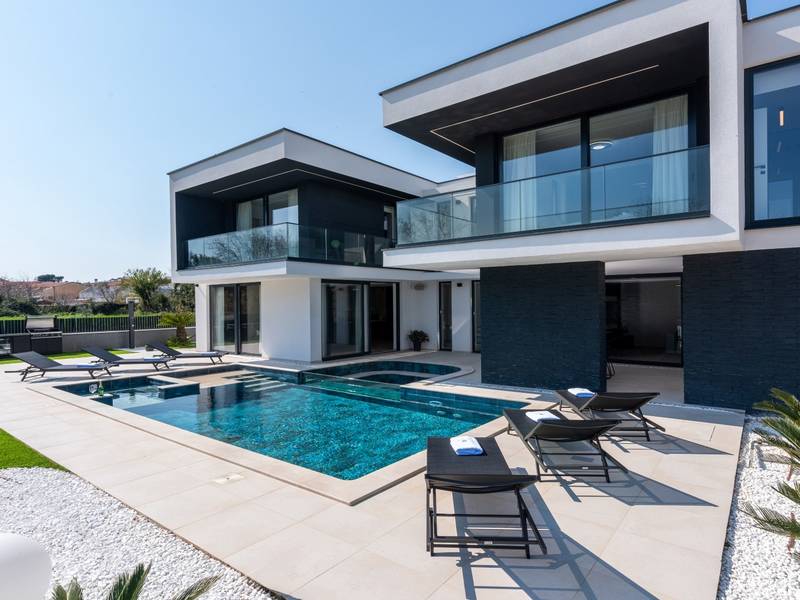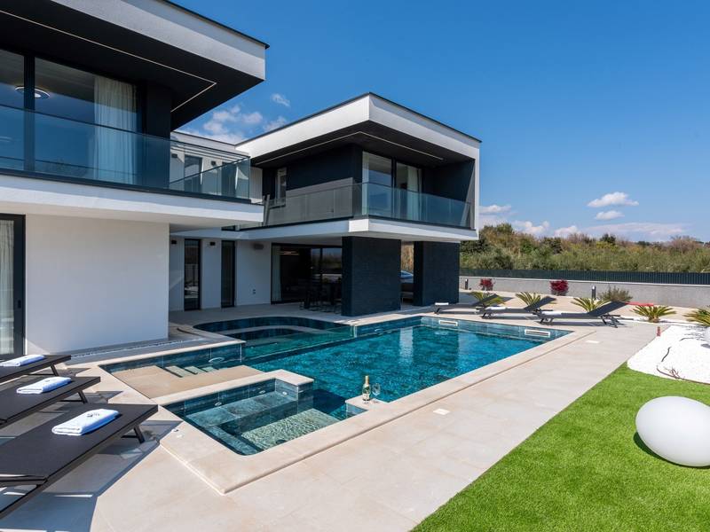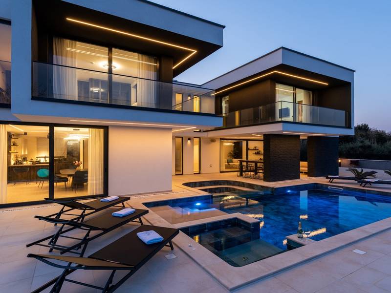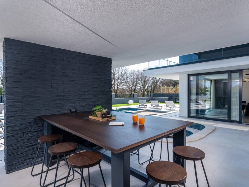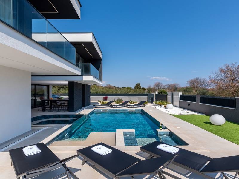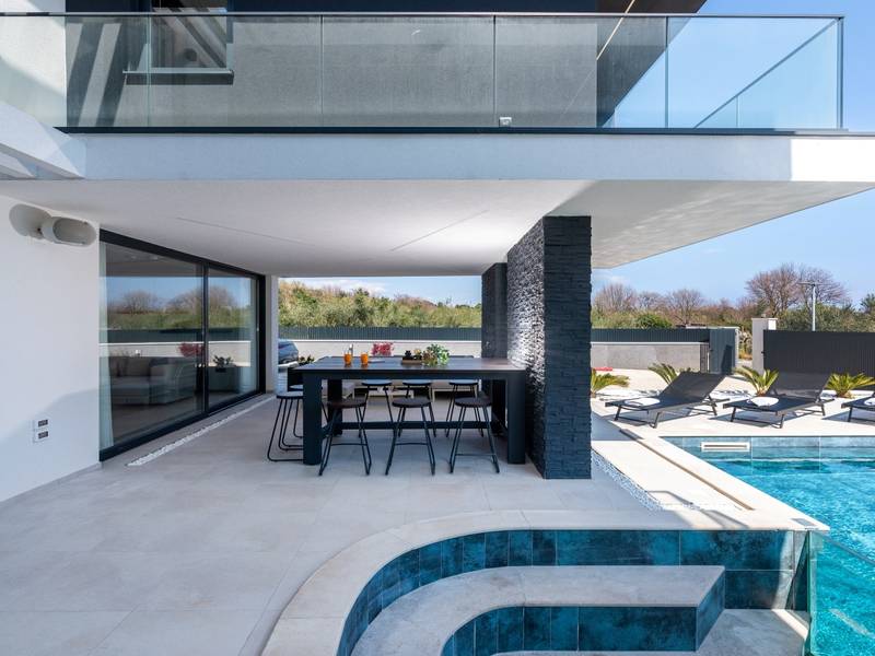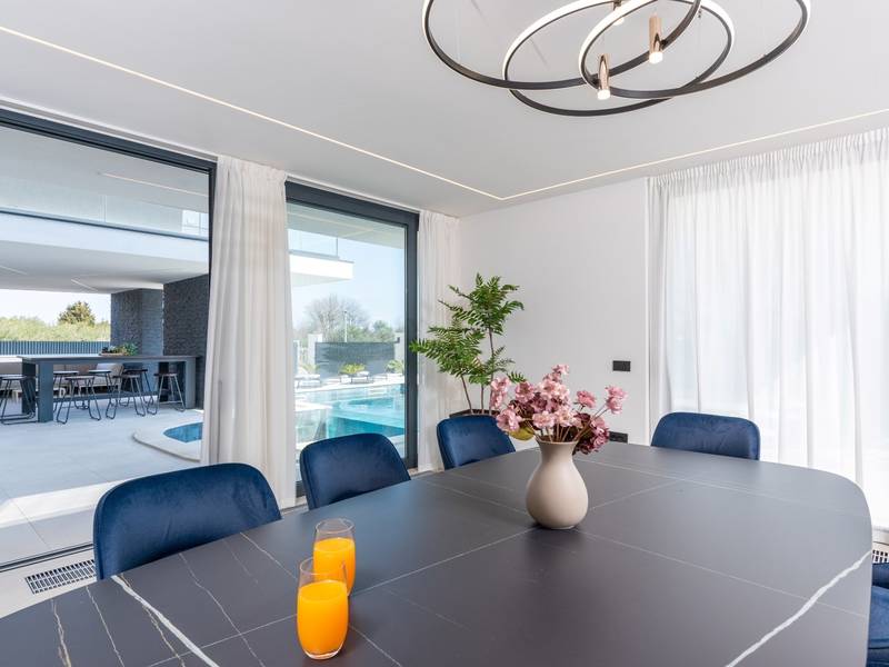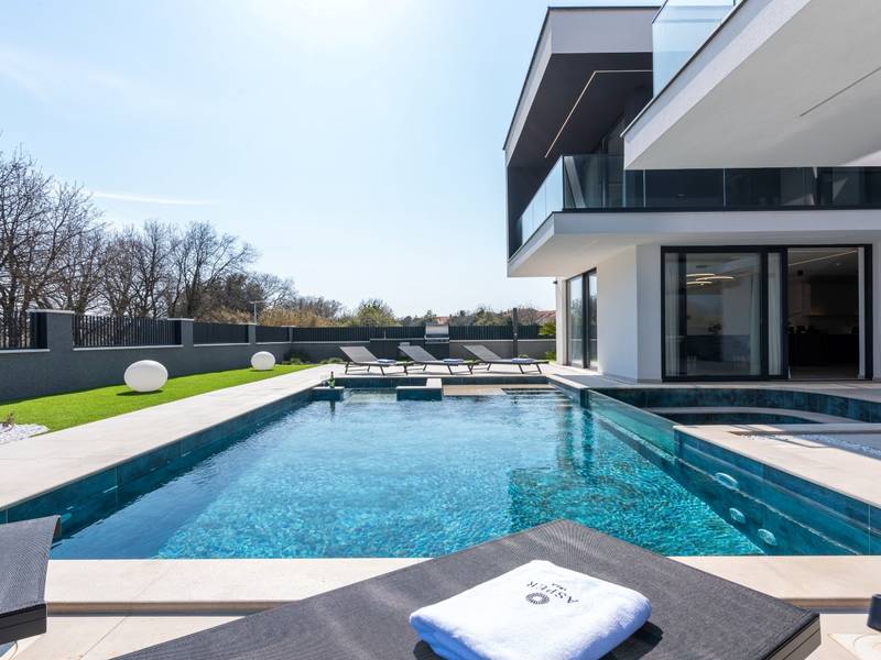 Villa Asper is a modern and luxurious smart villa located in a peaceful part of Ližnjan, near Pula, ideal for those looking for privacy, comfort and a premium holiday experience in Istria. This elegant villa can accommodate up to 8 guests and offers plenty of space for socializing as well as privacy for every guest.The fully air-conditioned villa features a spacious and modern interior with 4 luxurious bedrooms. Each room includes a double bed, private bathroom and private terrace, providing maximum comfort during your stay. In addition to the four en suite bathrooms, guests also have access to a separate guest toilet.On the ground floor there is a modern kitchen equipped with everything needed for preparing meals. The dining area for 8 guests is connected to an elegant living room featuring a Smart TV, PlayStation 5 and a premium Denon audio system for indoor and outdoor use.The beautifully landscaped and fully fenced outdoor area offers a large 40 m2 swimming pool with an integrated jacuzzi, outdoor shower, sun loungers, as well as an outdoor dining area and summer kitchen with a gas barbecue. Guests also have access to four parking spaces and an electric vehicle charging station.Villa Asper is perfectly located for exploring southern Istria. The nearest beach is only 1 kilometre away, while restaurants, shops and the centre of Ližnjan are also just a few minutes away. Near the villa guests can enjoy activities such as cycling, diving, kayaking, boat rental, dolphin watching, wine tasting and adventure activities. Pula Airport is only 14.5 kilometres away from the villa Asper.
