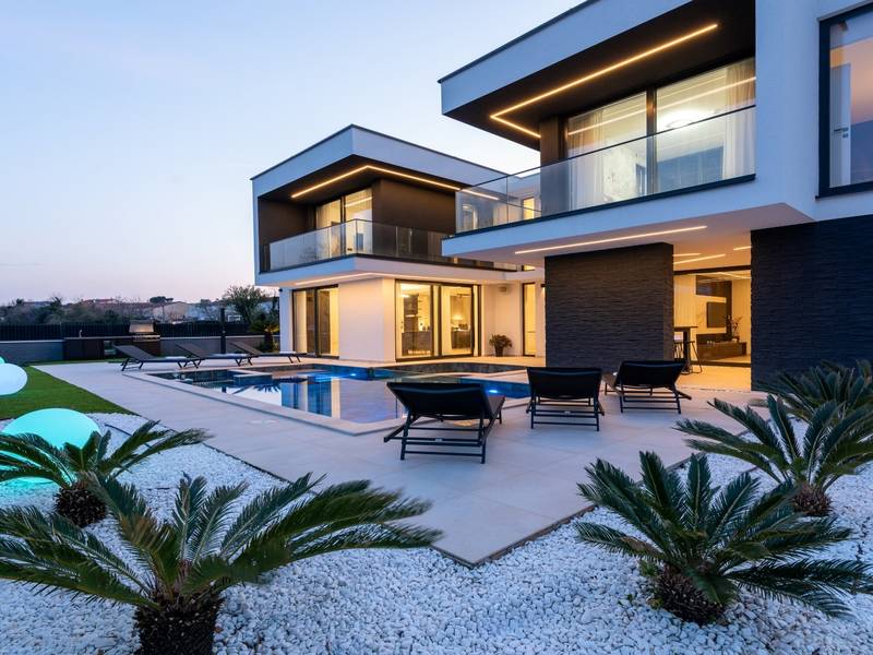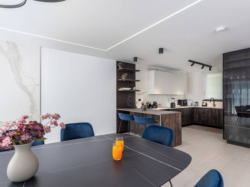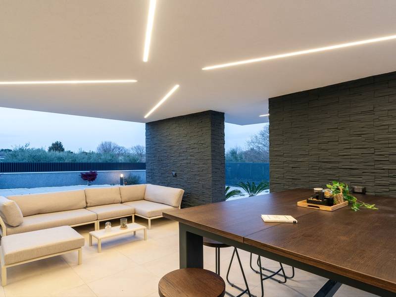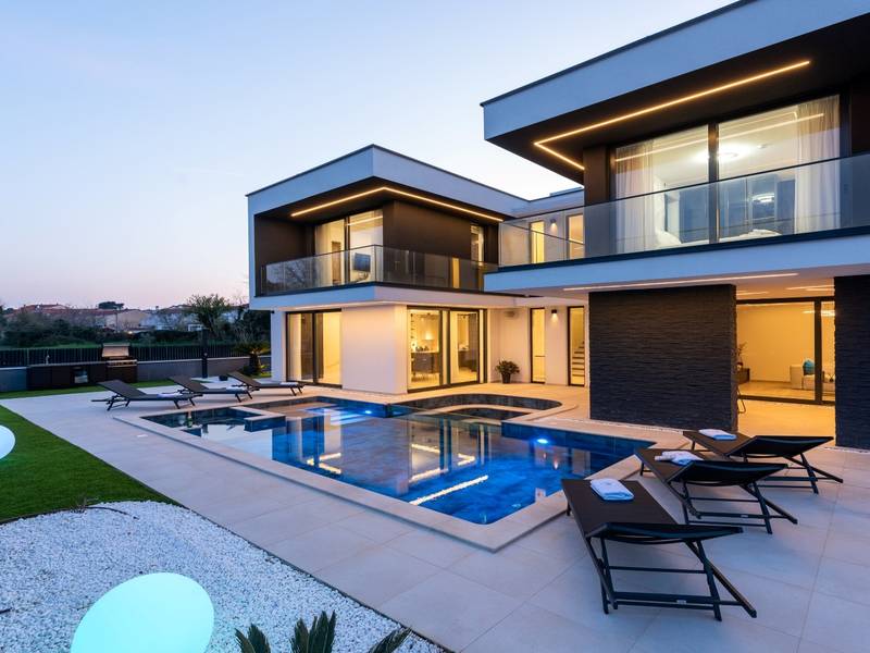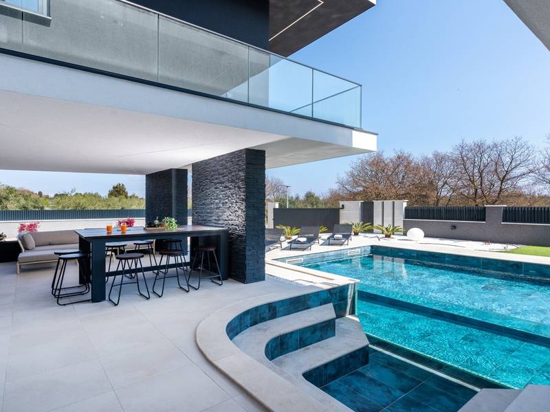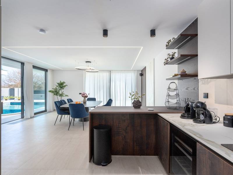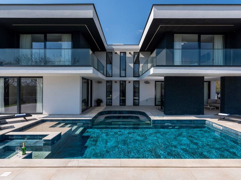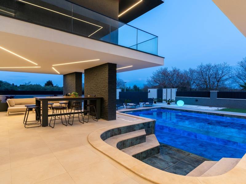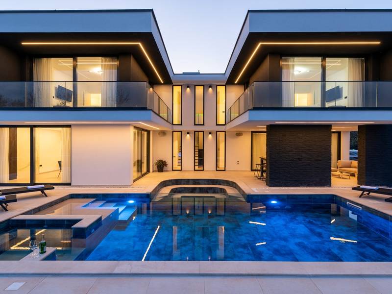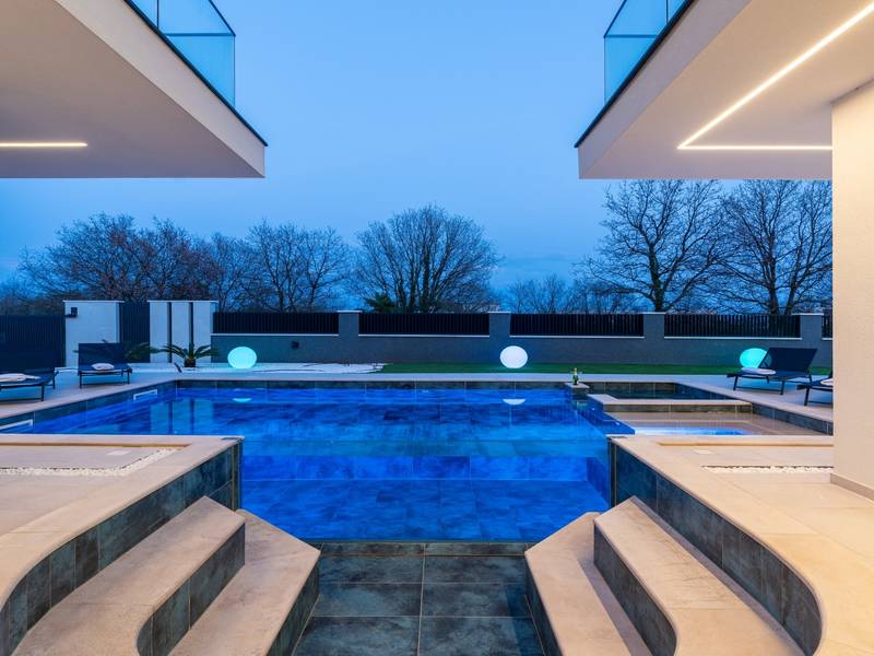 Villa Asper is a modern and luxurious smart villa located in a peaceful part of Ližnjan, near Pula, ideal for those looking for privacy, comfort and a premium holiday experience in Istria. This elegant villa can accommodate up to 8 guests and offers plenty of space for socializing as well as privacy for every guest.The fully air-conditioned villa features a spacious and modern interior with 4 luxurious bedrooms. Each room includes a double bed, private bathroom and private terrace, providing maximum comfort during your stay. In addition to the four en suite bathrooms, guests also have access to a separate guest toilet.On the ground floor there is a modern kitchen equipped with everything needed for preparing meals. The dining area for 8 guests is connected to an elegant living room featuring a Smart TV, PlayStation 5 and a premium Denon audio system for indoor and outdoor use.The beautifully landscaped and fully fenced outdoor area offers a large 40 m2 swimming pool with an integrated jacuzzi, outdoor shower, sun loungers, as well as an outdoor dining area and summer kitchen with a gas barbecue. Guests also have access to four parking spaces and an electric vehicle charging station.Villa Asper is perfectly located for exploring southern Istria. The nearest beach is only 1 kilometre away, while restaurants, shops and the centre of Ližnjan are also just a few minutes away. Near the villa guests can enjoy activities such as cycling, diving, kayaking, boat rental, dolphin watching, wine tasting and adventure activities. Pula Airport is only 14.5 kilometres away from the villa Asper.