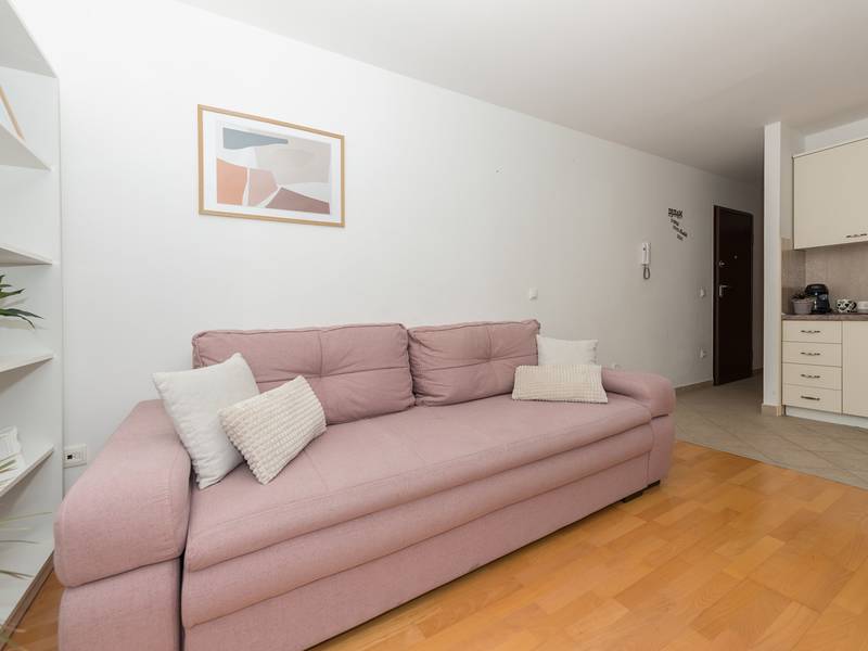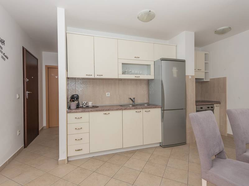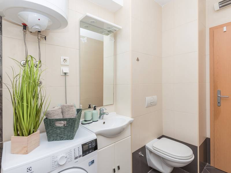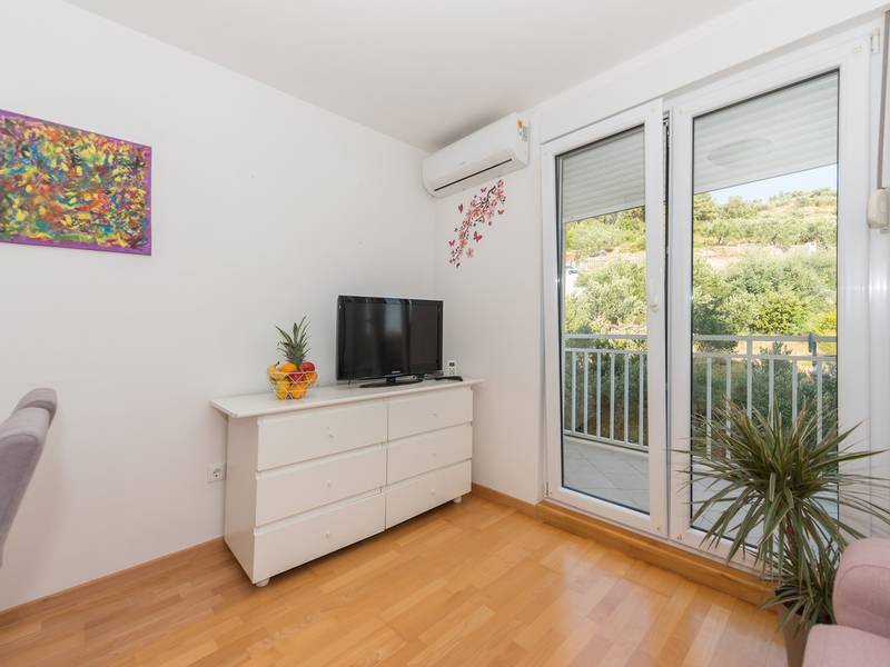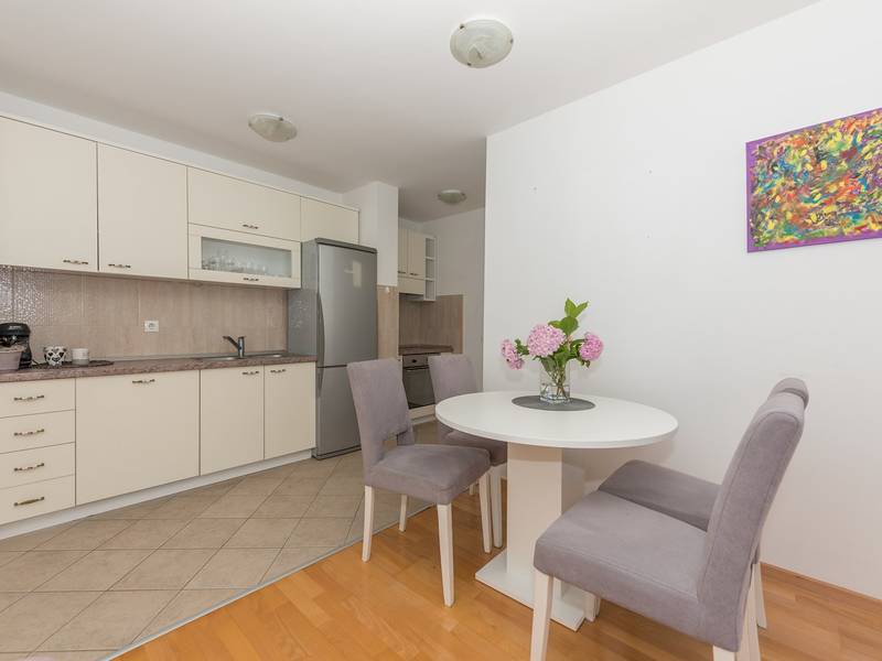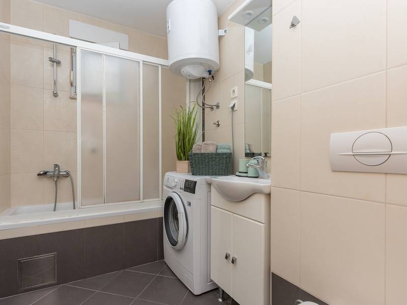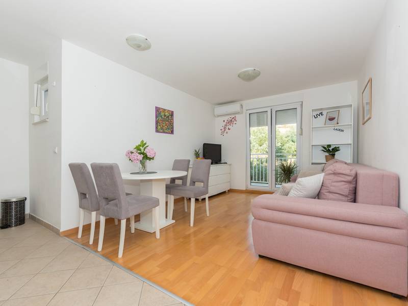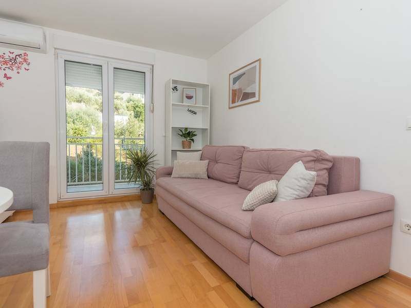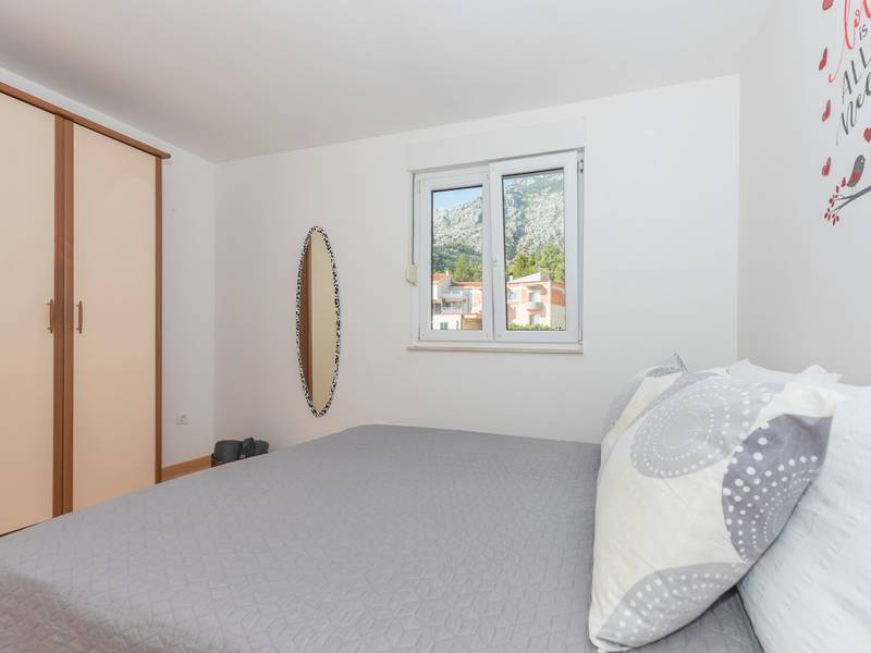 Apartment View is located in Makarska. It has 50m2 is located on the second floor of a building and offers accommodation for 4 people.It consists of fully equipped kitchen with dining room, living room with exit to the balcony and one big room with double bed. The balcony has a great mountain view. In living room is convertible double sofa for two people. It has one bathroom with bathtub.Apartment View is fully equipped with various additional facilities; balcony, free Wifi, washing machine, air condition and free parking in front of the house.The pet surcharge is 10 euros per night.Object ID: ctma360