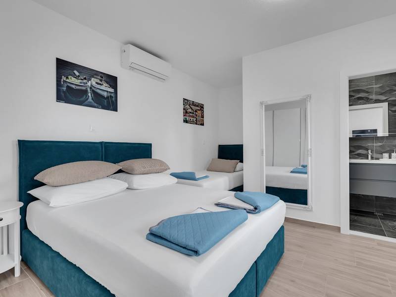 Stunning villa is located in Makarska has a capacity of 6 plus 1 guests and offering breathtaking sea view. The three story property is designed to provide the utmost comfort and relaxation for your stay. It features three spacious bedrooms with a double bed, each with it's own ensuite bathroom with a shower. One of the bedrooms has an extra bed, allowing the house to accommodate a total of 7 people. On the ground floor, you will find a convinient guest toilet and washing machine. Villa has an otudoor shower and seven loungers for soaking up the sun. The property has also BBQ and wine cellar for wine enthusiasts. Parking area for three vehicles on the premises. Deposit is required in cash (500,00 EUR) upon arrival. You will get this amount back upon departure, provided everything was in order (no damage).Object ID: ctma428