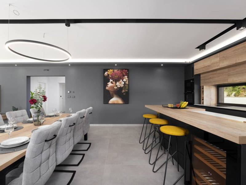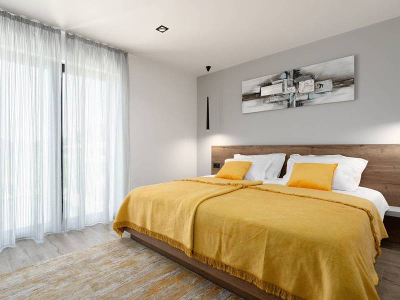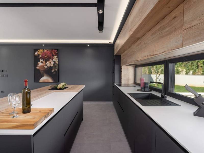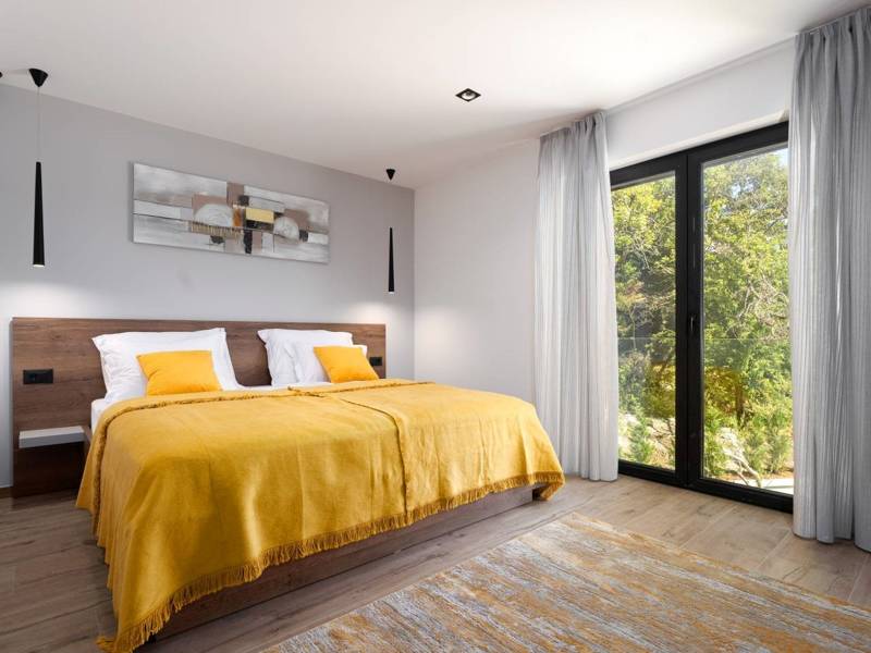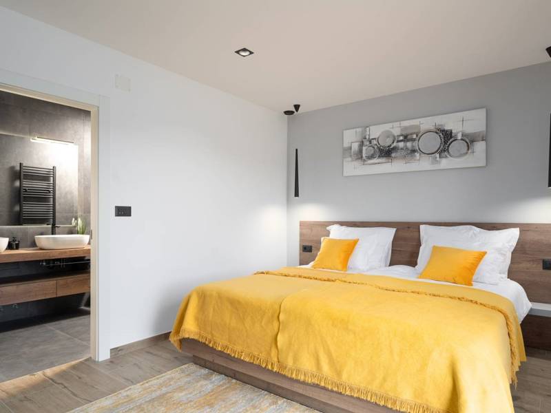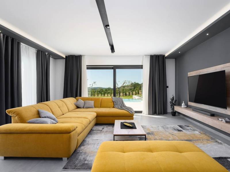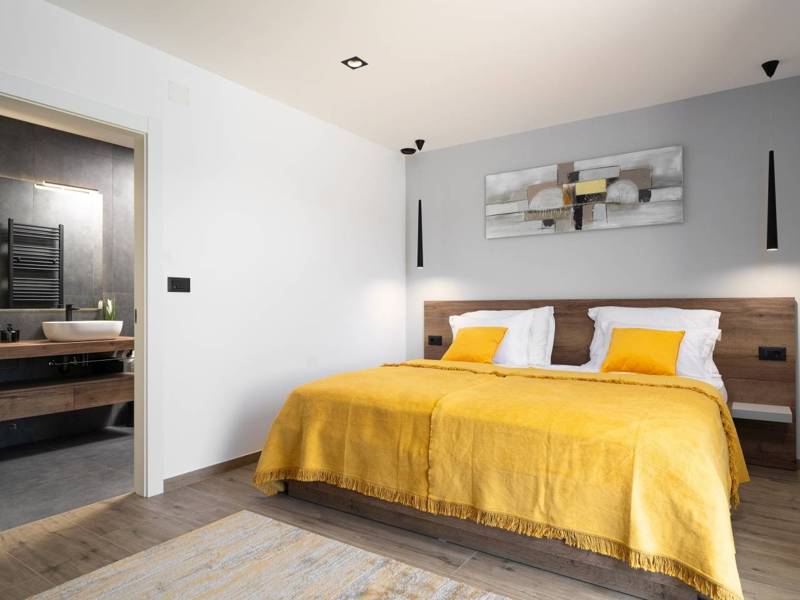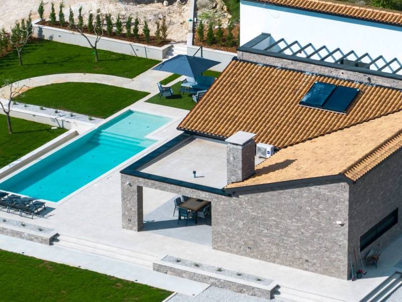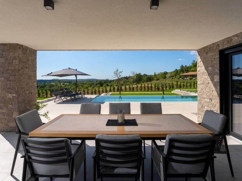 Villa Angelina is a beautiful and luxurious retreat nestled amidst unspoiled nature, offering panoramic views of the surrounding hills. Centrally located in the small village of Mandalenčići in Central Istria—just a few minutes’ drive from the town of Pazin—this villa is an ideal choice for families seeking a peaceful countryside vacation while still being close to beaches and all major attractions Istria has to offer.This exquisite villa features four elegant en-suite bedrooms, ensuring privacy and comfort for every guest. Thoughtfully decorated with great attention to detail, the interior is spread across two floors.The ground floor includes a spacious living room, a fully equipped kitchen with a dining area, a separate toilet, and a dedicated media room equipped with a large TV and game console—a perfect space for movie nights, gaming, or simply relaxing together. On this floor you will also find two beautifully decorated bedrooms, each with a double bed, TV, and private bathroom.The upper floor hosts the remaining two bedrooms, also featuring double beds, TVs, and private bathrooms. A small balcony on this level offers a lovely view of the surrounding hills.The outdoor area—where you’ll likely spend most of your time—features a covered terrace with a dining table, charcoal and gas barbecues, and a welcoming space for enjoying alfresco meals. The highlight is the 40 m2 swimming pool with a shallow section ideal for children. Surrounding the pool are eight inviting sun loungers and a spacious sun deck, creating your private oasis for relaxation.For additional fun, enjoy friendly games of billiards or make the most of the villa’s standout feature—the spacious media room, offering entertainment for all ages. The villa is fully air-conditioned, provides free Wi-Fi, and the completely enclosed property includes four private parking spaces. With its serene setting, modern comforts, and excellent entertainment options, Villa Angelina ensures an unforgettable and enjoyable stay.A baby cot and high chair are available upon request. Please let us know in advance if you need them so the owner can prepare everything for your arrival.Youth groups are not allowed at this property. A youth group is one comprised of individuals aged 26 or under. If you are a youth group please note that the reservation might be rejected post-booking, which may include on arrival at the property or during your stay and you might not be refunded.