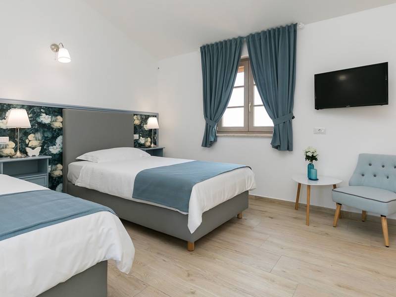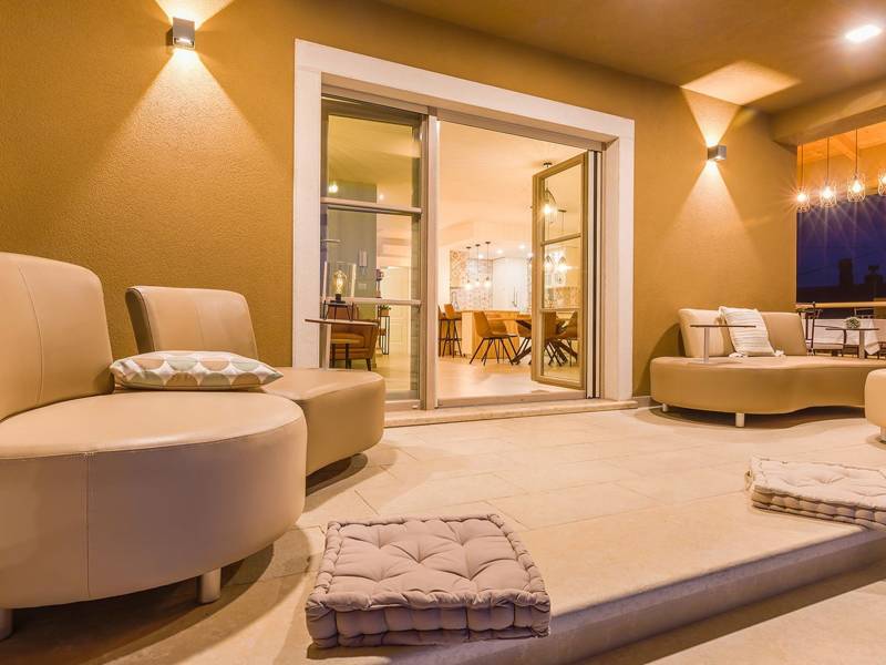 Have a wonderful holiday in Istrian inland by staying in modern Villa Keli with a great view over the landscape. The villa can accommodate up to 8 people so it is perfect for a larger family or a group of friends looking to escape the daily rush. The 3-bedroom villa stretches over 2 floors offering the full cycle of a holiday home. On the main floor, you`ll notice the open space concept with a modern design. Well equipped kitchen area and spacious dining area go perfectly with the large living room. The best thing about the main floor is the glass door, one step and you`ll find yourself on the terrace.Your mornings could start with a dip in the swimming pool or you can just relax on the patio and enjoy your first coffee of the day. After lunch, you should definitely relax on the sundecks and catch some color while your children are playing on the playground for kids. Schedule your evenings to test your barbecue skills by enjoying the delicacies prepared in the spacious outdoor dining area.Villa Keli is located in a small and charming village of Vižinada. On the one side, there is Poreč, and on the other side is Novigrad. If you would like to take a swim in the Adriatic sea, it will take you only about 15 minutes by car to the nearest beach. Vižinada has several local restaurants where you can taste the local cuisine. The nearest airport is Pula (50 km) while the Croatian-Slovenian crossing border is 36 km away.