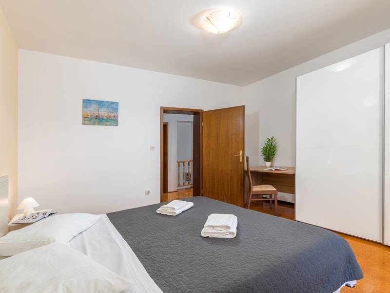 Welcome to House Max, located in the peaceful village of Mugeba, only 2 km from the beach in the tourist town of Zelena Laguna and 5 km from the charming town of Porec. This spacious home offers a peaceful escape with easy access to local attractions.Guests at House Max can enjoy a swimming pool, perfect for a refreshing dip on hot days. The covered terrace, equipped with a barbecue and dining table, provides an ideal setting for outdoor meals and gatherings. Multiple parking spaces are available for your convenience.This home is perfect for groups of up to 8 people, with 130 sqm of living space spread over two floors with air conditioning. The high ground floor has a dining room, a cozy living room, a double bedroom, a bathroom and a separate toilet.On the first floor there are three more bedrooms: two with double beds and one with two single beds, as well as a bathroom in the hall. Each room is designed for comfort and relaxation, ensuring a relaxing stay for all guests.The house offers a separate entrance and garden for guests, while the owner lives on the ground floor with his own separate entrance and garden, ensuring your privacy.With its proximity to Zelena Laguna and Porec, House Max is ideally located for exploring beautiful beaches, local attractions and vibrant nightlife.Experience the perfect blend of tranquility and convenience at House Max, your ideal retreat in the heart of Istria.