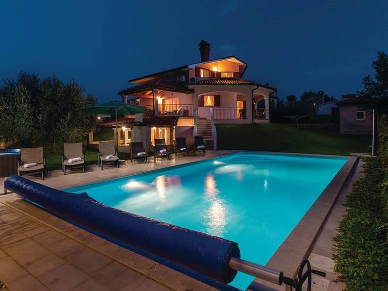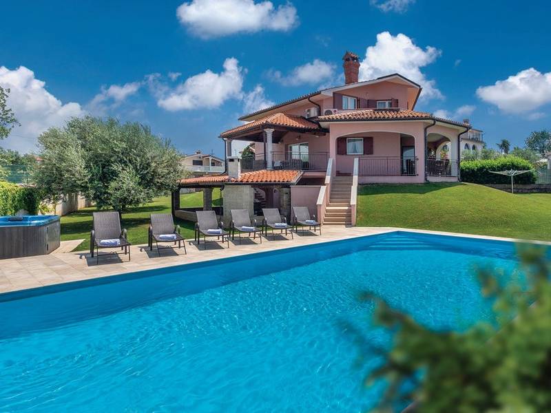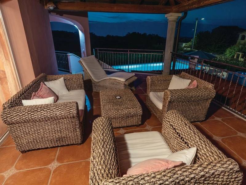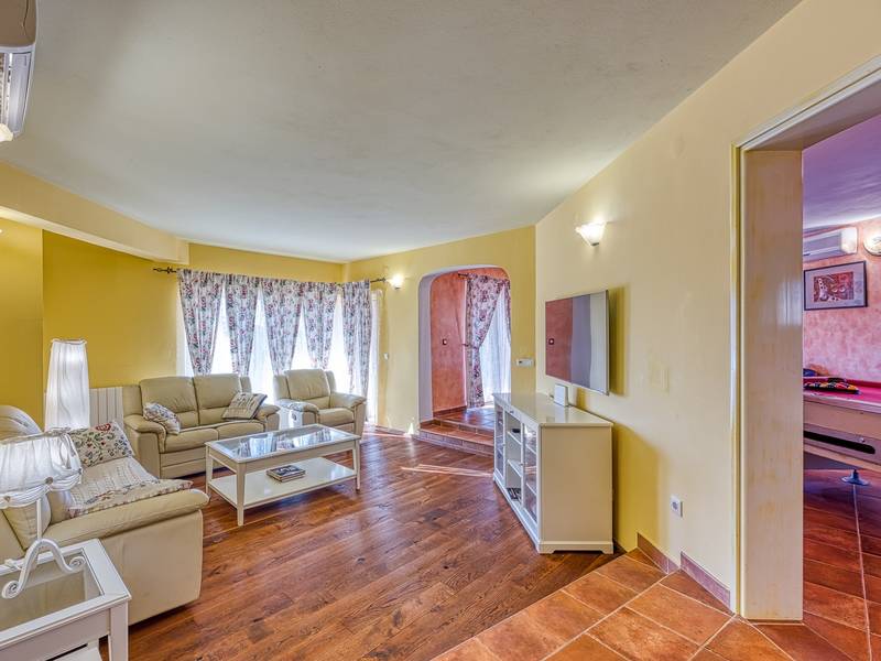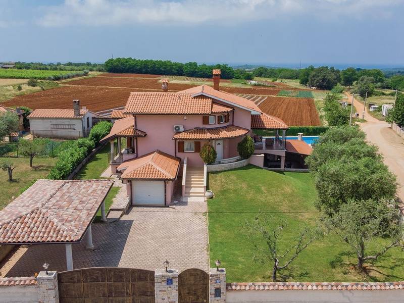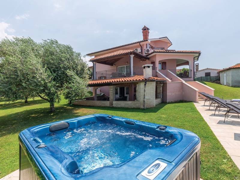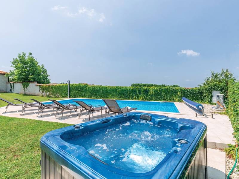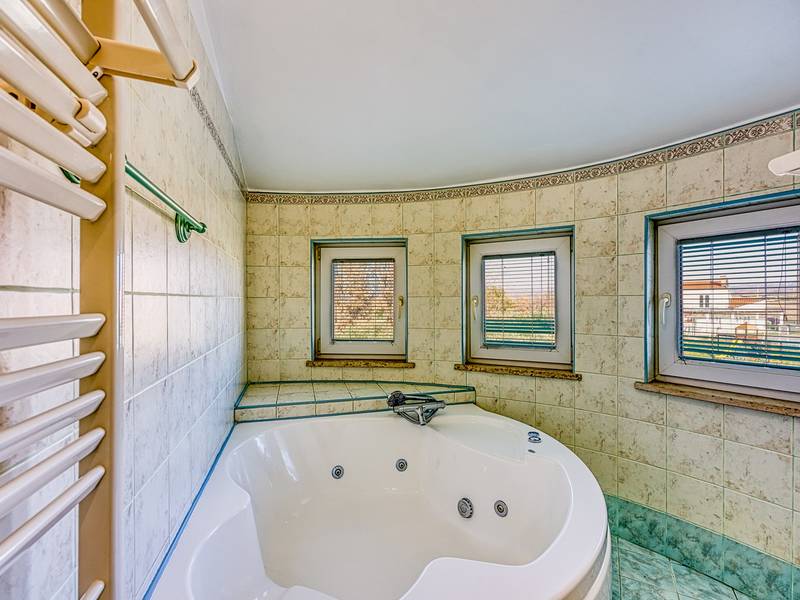 Villa Francesca is located in Stranici/Nova Vas, 6 km from Poreč and it can accommodate up to 10 people. The villa features 4 bedrooms, a flat-screen TV with satellite channels, an equipped kitchen along with dinning and living room. The kitchen is equipped with all neccesary appliances (electric stove, oven, microwave, dishwasher). The dining room and living room are situated on the ground floor. All bedrooms are situated on the first floor and they all have their own bathrooms. Two bedrooms feature a double bed while two other bedrooms feature one double and one single bed. Furthermore, guests can use a private jacuzzi and a large swimming pool in the garden from 15.04.-01.10.. The villa is fully air-conditioned and parking is provided for 4 cars in front of the house. If you're planning a relaxing holiday in a spacious comfortable house - Villa Francesca is the right choice! There are many marked bicycle routes nearby, that connect historic and picturesque Istrian towns like Višnjan, Tar, Porec and Motovun. Unfortunately, groups of young people are not allowed.