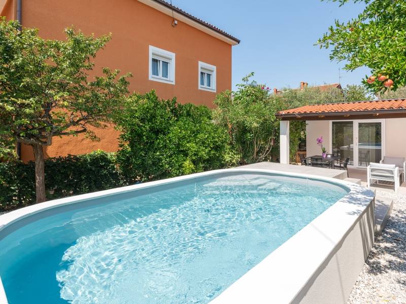Complete relaxation awaits you in the beautiful Villa Alis! The villa can be found in the charming Istrian town of Novigrad and offers accommodation for 2 + 1 people, making it the perfect choice for a small family in search of an escape from the everyday life. This one-story house is modernly furnished to provide you with everything you could need for your next vacation. It consists of one room in which there is a spacious double bed, as well as an additional bed for a third person. There is also a bathroom with a shower cabin. A fully equipped kitchen is at your disposal, for preparing delicious meals that you can serve on the indoor and outdoor dining table. Large glass doors give you unhindered access to the courtyard of the villa. The fenced yard with well-kept greenery is the perfect place for fun and enjoyment. The first thing you will notice is certainly the spacious swimming pool with deckchairs, for all-day enjoyment in the warm Mediterranean sun. There is also a gas grill, as well as a covered lounge area for sipping your morning coffee in peace and quiet.