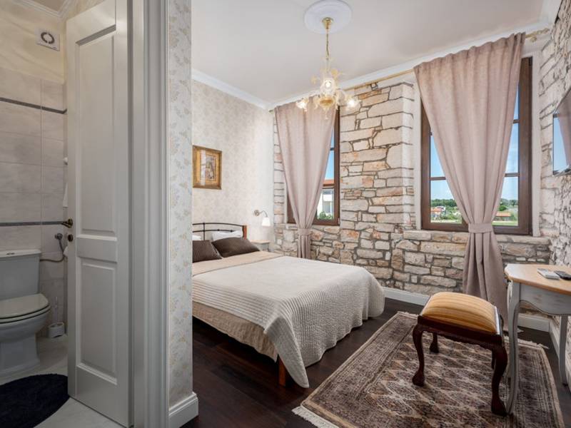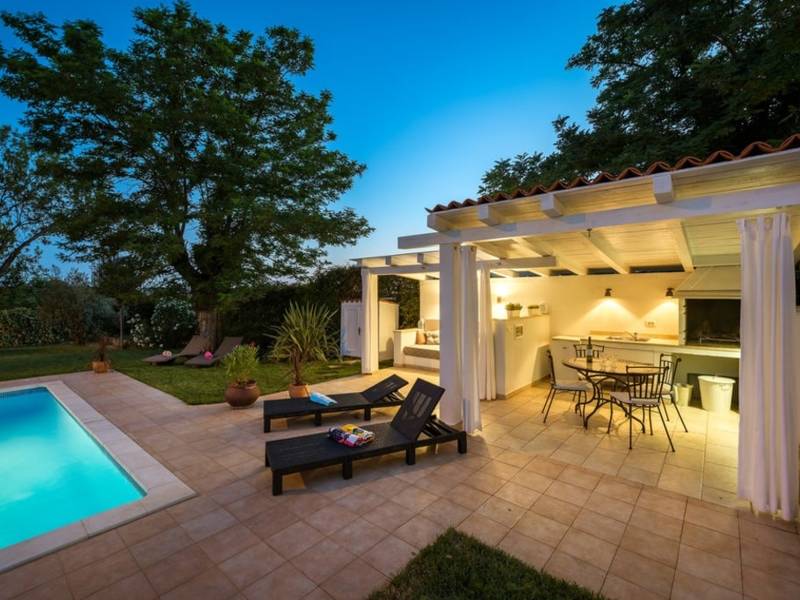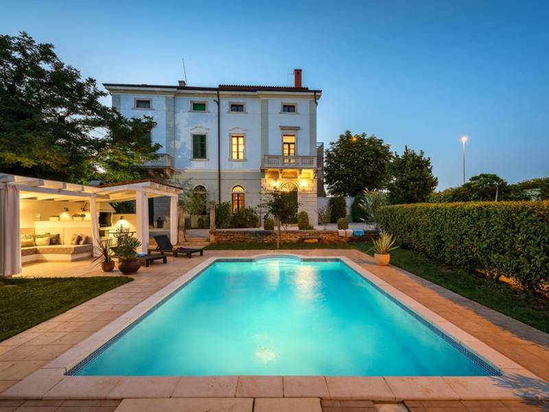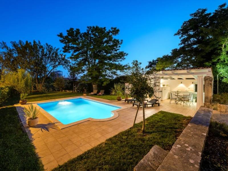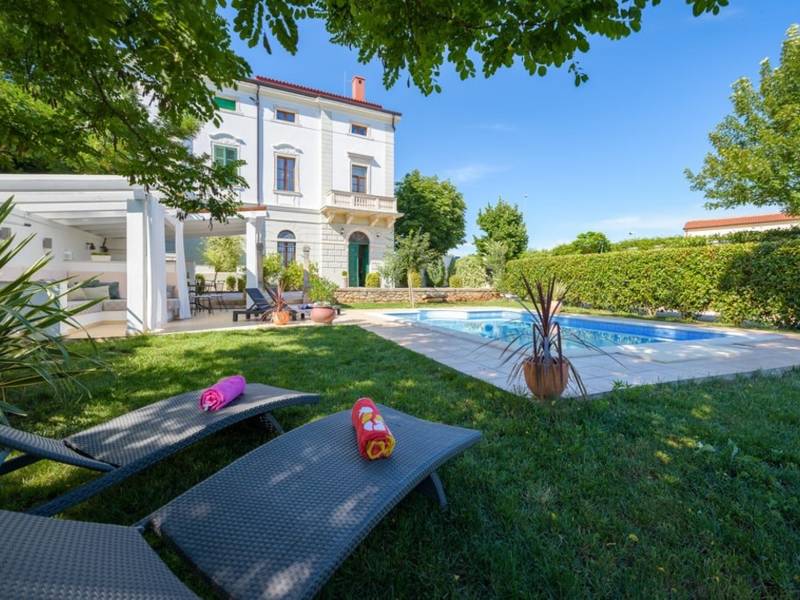 Feel like royalty on your holiday in the Villa Vigneri near Novigrad on the northwestern coast of Istria! The renovated villa was originally built in Austrian style two hundred years ago and has an aristocratic flair while providing an excellent place to relax for up to 6 people.Stepping into the air-conditioned villa, the first thing you notice is its classic-style interior, which meets modern-day living standards. The lovely master bedroom has a large ensuite bathroom with a shower and a bathtub, while the second bedroom has an adjoining bathroom with a hydromassage shower system. The villa also features a living room, dining room, and a fully equipped kitchen on the ground floor.The spacious private garden is one of the highlights of this property. The well-tended lawn and trees provide the perfect spot for pure enjoyment by the pool. There is also a gazebo with a garden sofa set, barbecue area, and a dining set, which promise good times outdoors. The authentic Villa Vigneri is set in a quiet area just outside the town of Novigrad in northwestern Istria. The center of the town and the nearest beach is just a couple of kilometers away, as is the Istralandia water park. The nearby places of interest include Poreč with the famous Basilica (UNESCO World Heritage Site), the town of Umag, and hilltop towns inland. The closest airports are in Pula (70 km) and Trieste, Italy (95 km), while the state border with Slovenia is less than 20 km away.