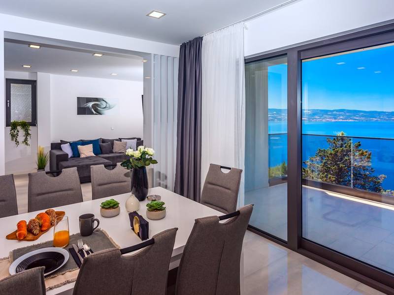 Villa Belvedere is a newly built villa located only 1.5km from the small Mediterranean town Omis, Cetina River, and sandy beach, offering open and panoramic sea views. Perfectly organized for a very comfortable stay for a family gathering for a total of 8+2 people. It is impeccably equipped in a modern and luxurious style containing simply everything needed for a comfortable holiday. In a very quiet and private environment and again so close to the center of Omis.With panoramic sea views, you are invited to relax whilst watching the sunrise or sunset over the Adriatic.*The outdoor area Villa Belvedere offers you a 36m2 swimming pool with a sun deck area and 8 sun deck chairs, a fully equipped summer kitchen with a grill, fridge, and covered outdoor dining area. There is also a separate toilet and an outdoor shower.*On the lower ground floor (next to the garage) is an air-conditioned room with a pool table and a sitting area, next to it is a playroom with TV, game console PS4, free WiFi, A/C a great place for children of all ages and also a sofa can open in bed if needed. Outdoor offers 4 parking places, next to one garage place, and a car is recommended for this location.*The ground floor level (the pool level) offers a Bedroom No1 with a king-size bed of 200x210cm (can separate into 2 single), A/C, en-suite bathroom with shower and sea views. There is a fully equipped and spacious kitchen with a dining area and a terrace with sea views, and free WiFi, next to it is a spacious living room with a TV that also has an exit to the terrace. A separate toilet and a washing machine next to it. An internal staircase takes you to the 1st floor.*The 1st floor offers 3 bedrooms, each with a bathroom and with sea views. Bedroom No2 with king-size 180x200cm and en-suite with shower, TV, and air conditioning. Bedroom No. 3 with king-size bed 200x210cm (can separate into 2 single), A/C, TV, and a balcony with sea views. Bedroom No.4 with king-size bed 200x210cm (can separate into 2 single), A/C, TV, and a terrace with sea views. A family Bathroom No. 3 with shower (for bedroom No. 3), and an ensuite Bathroom No. with shower (bedroom No. 4).Villa Belvedere is fully furnished with all a modern guest needs for a very comfortable stay, with 7 A/C units throughout the entire house, all 4 bedrooms, a gaming room, and a billiard room, there is a private swimming pool, a fully equipped kitchen, outdoor summer kitchen with barbecue next to the pool, TV, free Wi-Fi, and all you need to make this your home away from home.
