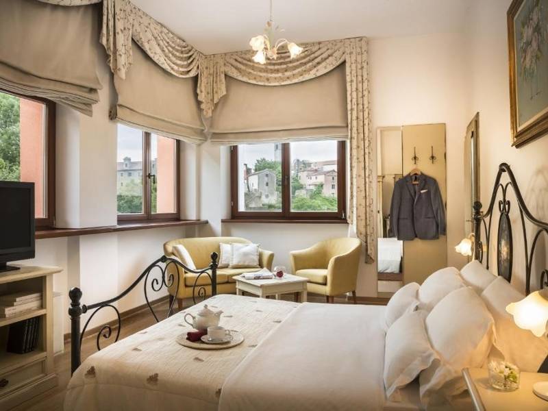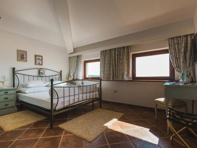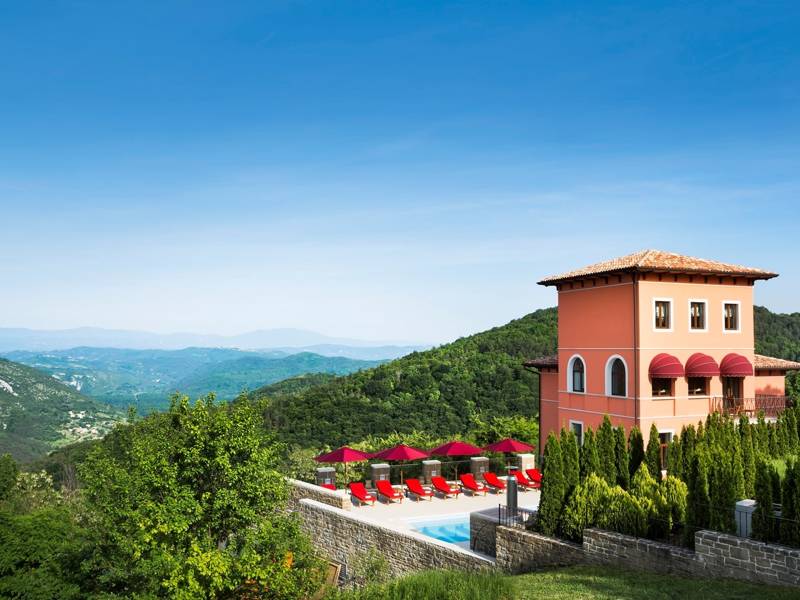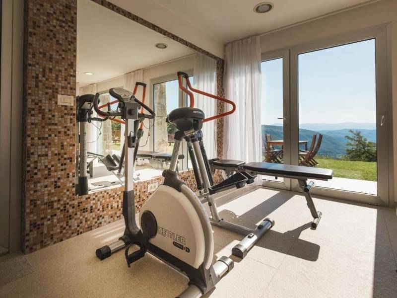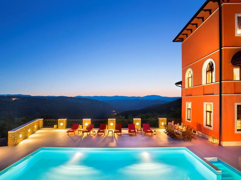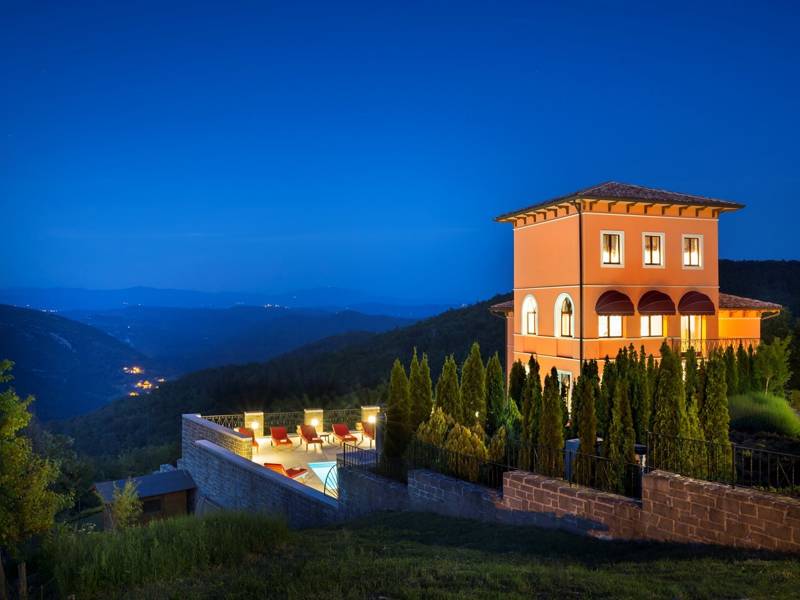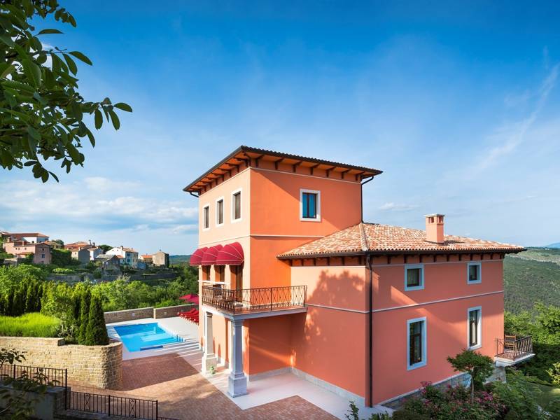 Located in the picturesque town of Oprtalj, Villa Palazzo Angelica is an ideal choice for guests seeking a blend of authentic Istrian atmosphere, comfort and complete privacy. Surrounded by greenery and perched on a hill with a beautiful view of the Istrian landscape, this elegant villa offers the perfect balance between traditional charm and modern amenities. The spacious interior includes a fully equipped kitchen, dining area and comfortable living room, creating a pleasant and functional space for larger families or friends. The entire property is dominated by a feeling of warmth and sophistication, thanks to the carefully selected decoration. The villa offers guests complete relaxation by the outdoor pool and views of nature, while the spa area with a shared Finnish sauna, Turkish bath and jacuzzi provides additional comfort. Wi-Fi, satellite TV, air conditioning, heating and all basic amenities including towels, bed linen, hairdryer and safe are available, and free private parking is also provided. The house accepts pets for an additional fee, and thanks to the fully equipped kitchen, guests have the freedom to prepare meals according to their own wishes, or explore the rich local gastronomic offer. The villa is in an excellent location for discovering Istria - whether you are attracted by charming towns such as Motovun and Grožnjan, untouched nature or cycling along the route of the former Parenzana railway. Pula Airport is 54 kilometers away, which allows for easy arrival and a carefree start to your vacation.