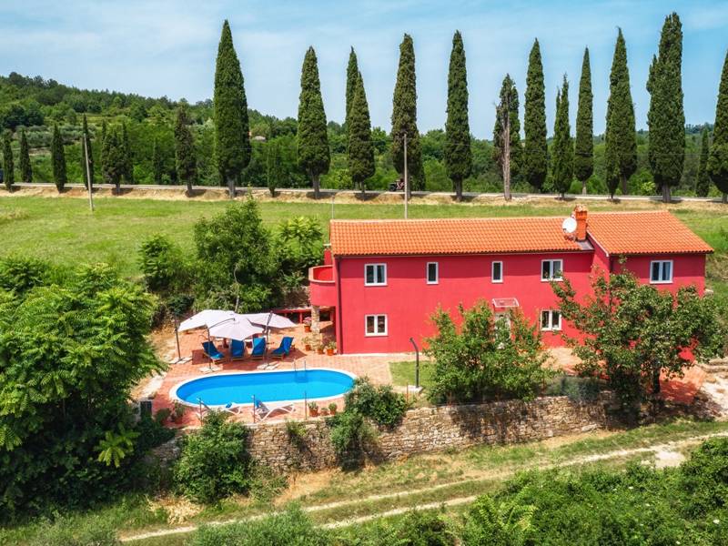 Discover the enchanting Villa Mamma Mia, a real heaven for those seeking peace and privacy. Set on a large, 1200 m2 plot with no neighbors in sight, this beautifully restored stone house offers a tranquil haven in a sunny, secluded location with stunning views of the romantic town of Oprtalj.Surrounded by lush gardens filled with trees, fruit trees (figs, cherries, sour cherries), a 55-year-old vineyard, and an olive grove, Villa Mamma Mia can accommodate up to 6 guests. The villa features three en-suite bedrooms, each with a king-size bed and a private pool for your exclusive use.Step into a world of comfort on the ground floor, where you'll find a cozy living room equipped with a flat-screen satellite TV, and a fully equipped kitchen with a dining area. From here, you can access the terrace overlooking the pool, offering breathtaking views of Oprtalj. A separate toilet is also conveniently located on this level.Upstairs, the three spacious bedrooms each feature a TV and a private bathroom, ensuring a restful and comfortable stay.During your stay, unwind on the sun loungers by the private pool and soak in the serene surroundings. For the more adventurous, rent a bike and explore the historic Parenzana trail, just 10 meters from the villa. This former railway line provides a unique and scenic experience through the Istrian landscape.The region is renowned for its numerous hiking and biking trails, as well as its rich gastronomic offerings. Savor local specialties such as Teran and Malvasia wines, olive oil, homemade cheese, prosciutto, grilled meats, and truffles at the many nearby restaurants.Experience the perfect blend of tranquility, luxury, and local charm at Villa Mamma Mia. Book your stay today and create unforgettable memories in this idyllic Istrian retreat.NOTE: Max 2 wellbehaved pets are allowed, but an additional fee aplies. Only small breeds of dogs are allowed, with a maximum weight of 7 kg or a height of 30 cm. Please contact us for more detail.Please note this property does not accept stag/hen parties. Youth groups are not allowed. A youth group is one comprised of individuals aged 26 or under. If you are a youth group please contact us before placing your reservation, as the reservation might be rejected post-booking, which may include on arrival at the property or during your stay and you might not be refunded